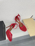 ALAIA HIGH FISHNET 9 CM PUMPS IN CHERRY RED MESH