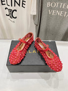 ALAIA PEARL MARY JANE SHOES IN CHERRY RED MESH AND CALFSKIN