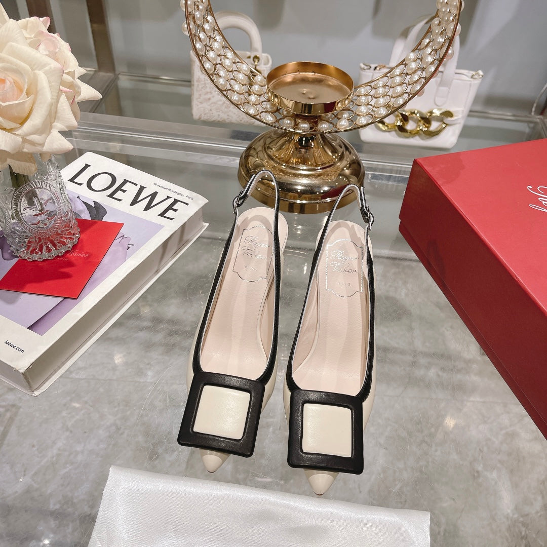 Belle Viv Metal Buckle Slingback Pumps 85 White Black Patent Leather