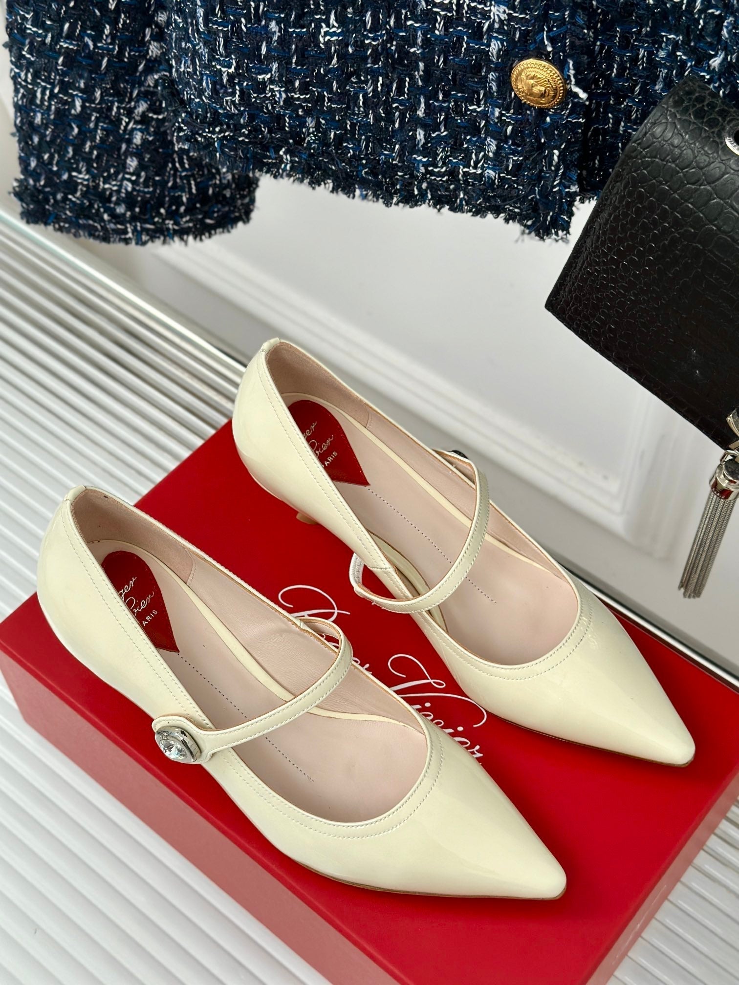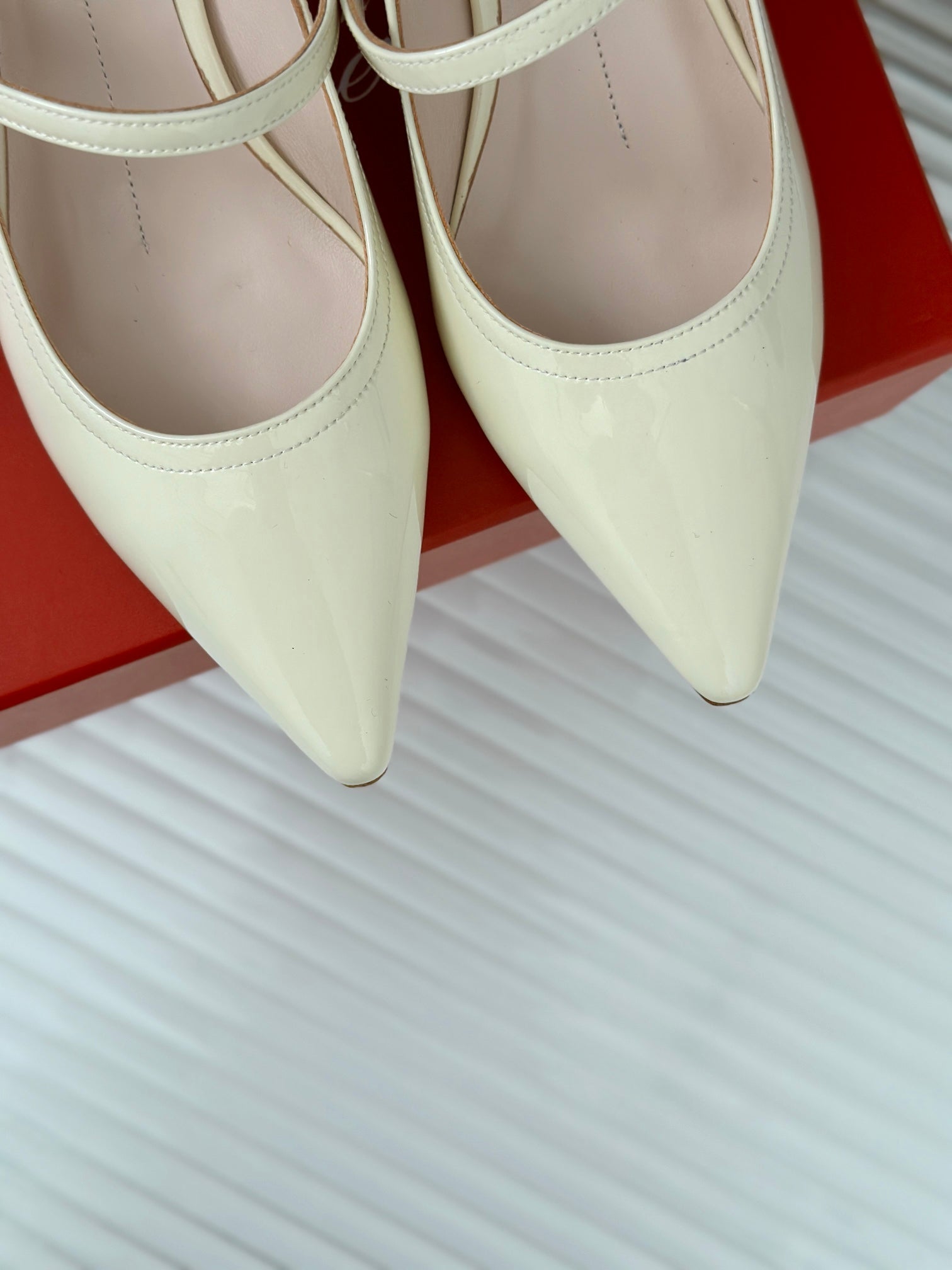Mary Jane Virgule Pumps 55 White Patent Leather