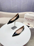 ROCKSTUD FLAT PUMP IN BLACK CALFSKIN