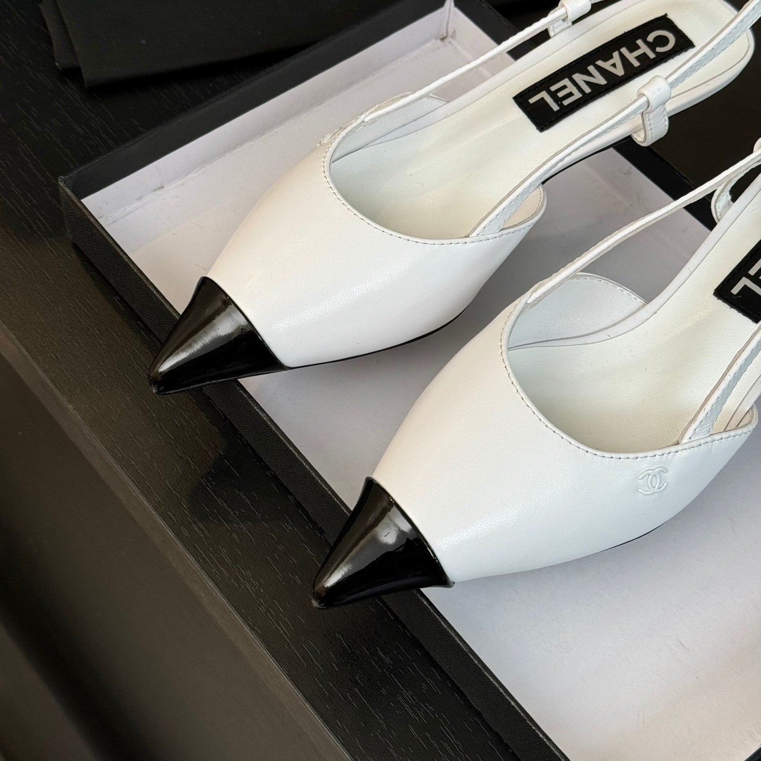 slingbacks 35 pointed patent toe white lambskin