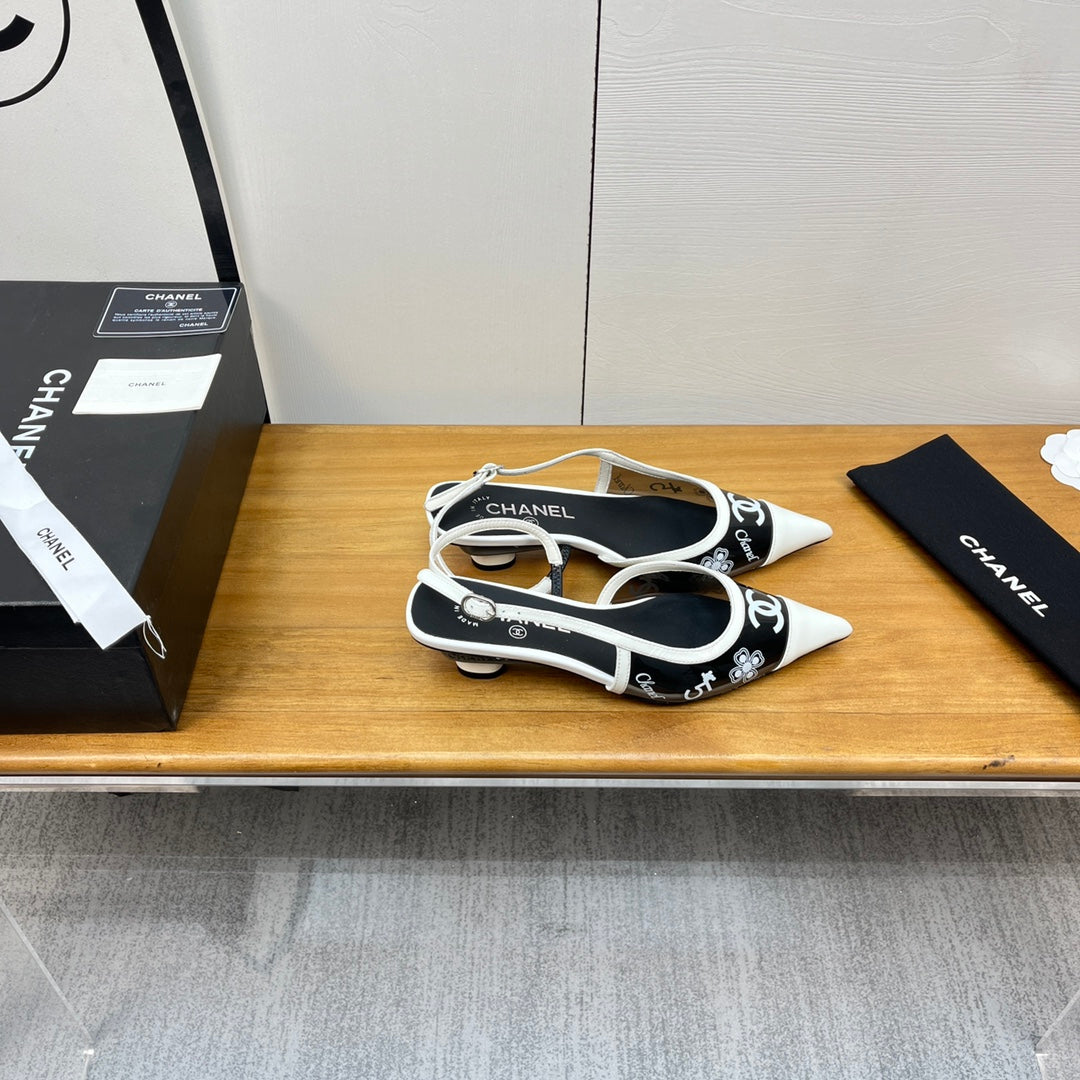 slingbacks 45 black white pcv and calfskin