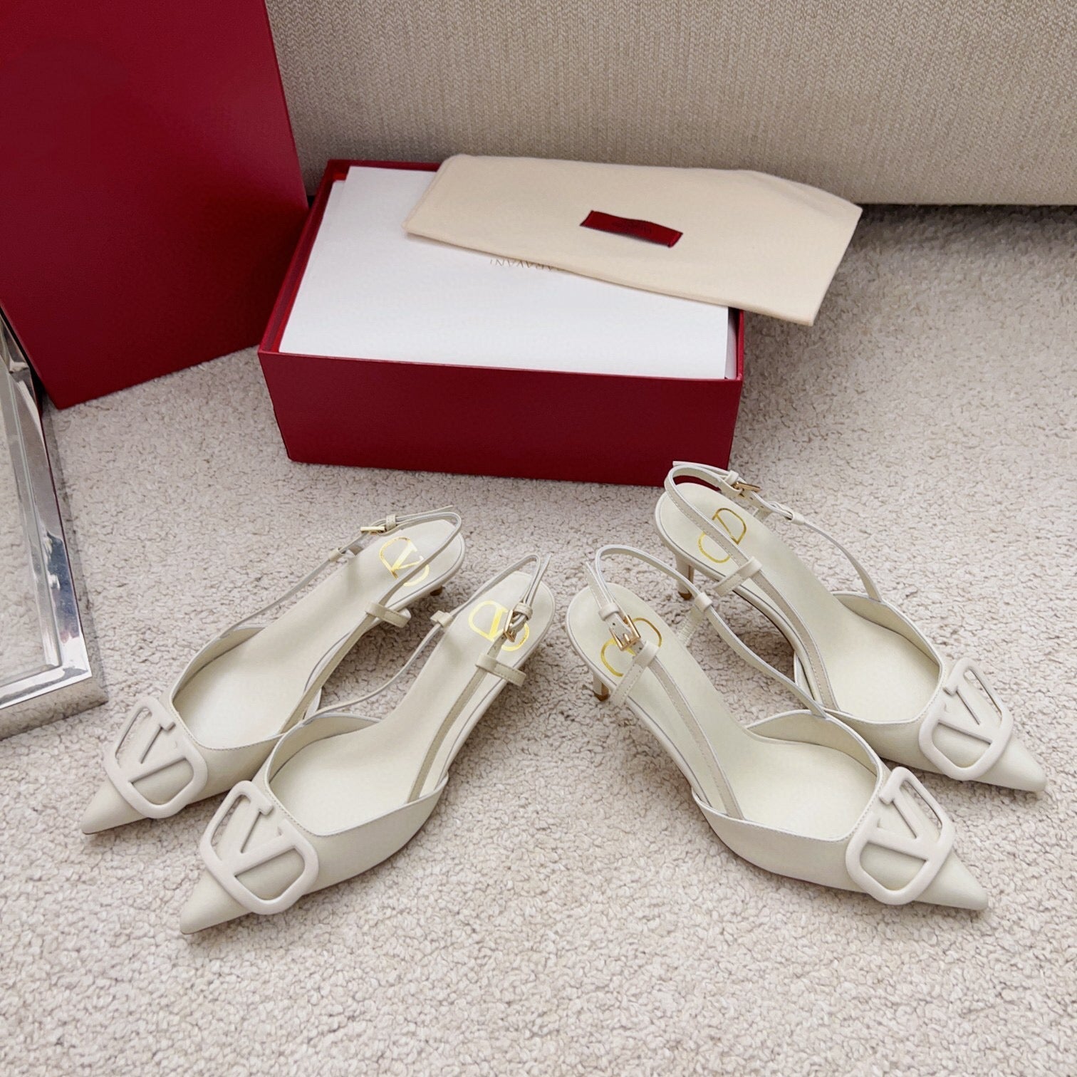 Valentin Vlogo Signature Slingback Ivory Calfskin