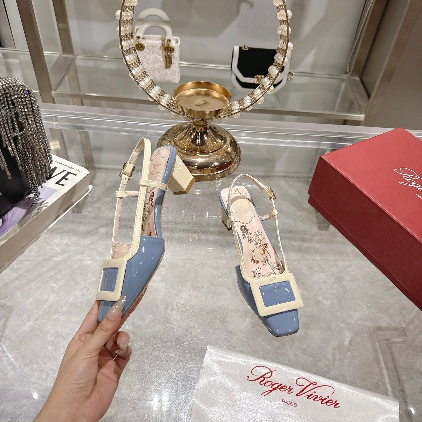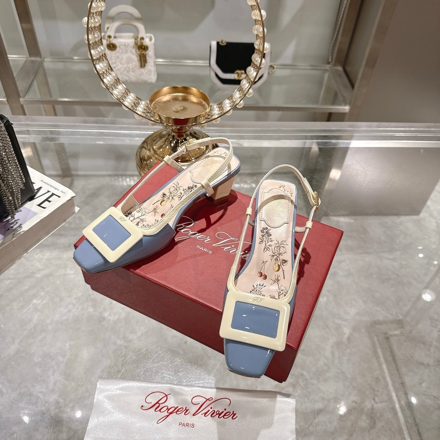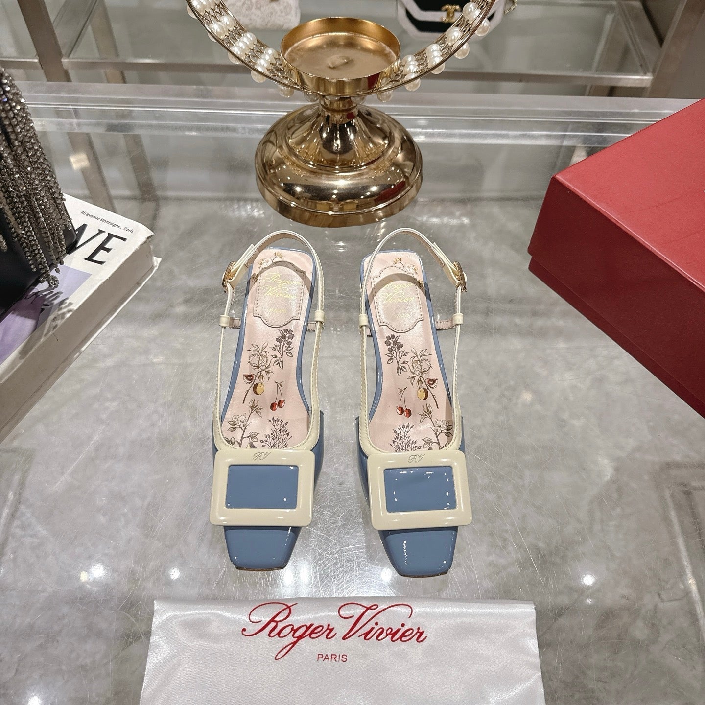 Viv 25 Flower Slingback Blue Italian Leather 300787