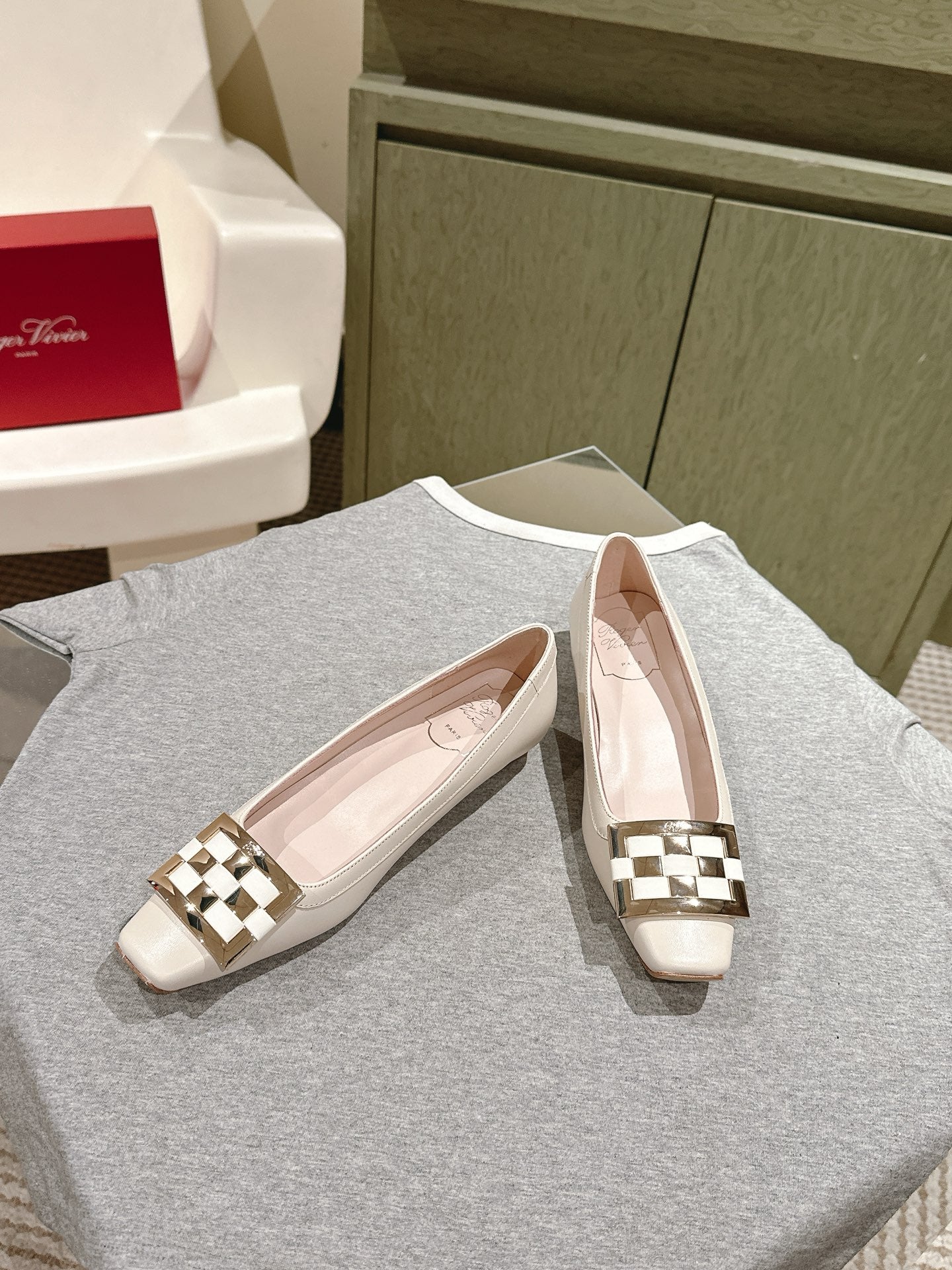 Viv 25 Jewel Flats Beige Imported Cowhide 241906