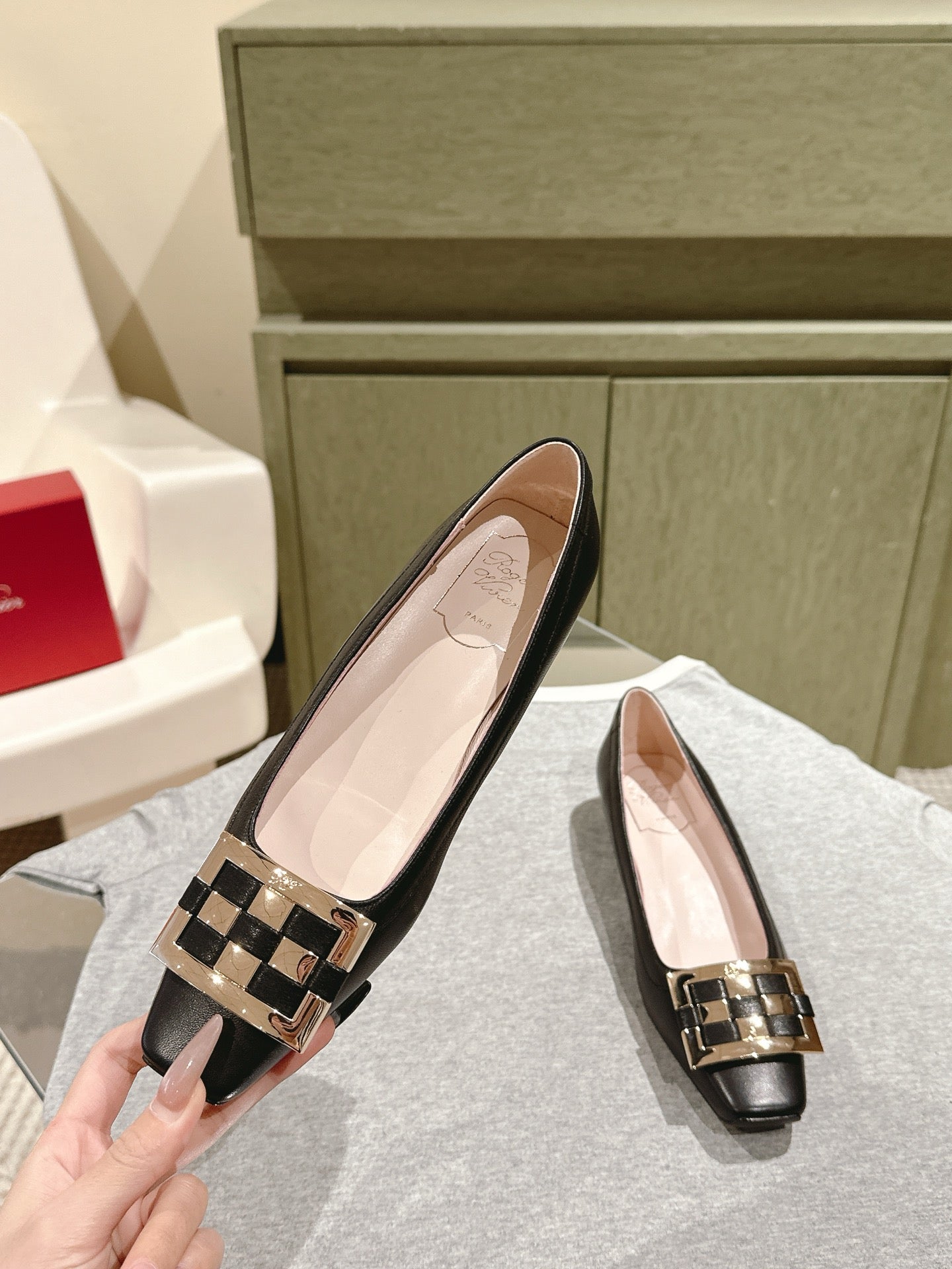 Viv 25 Jewel Flats Black Imported Cowhide 241905