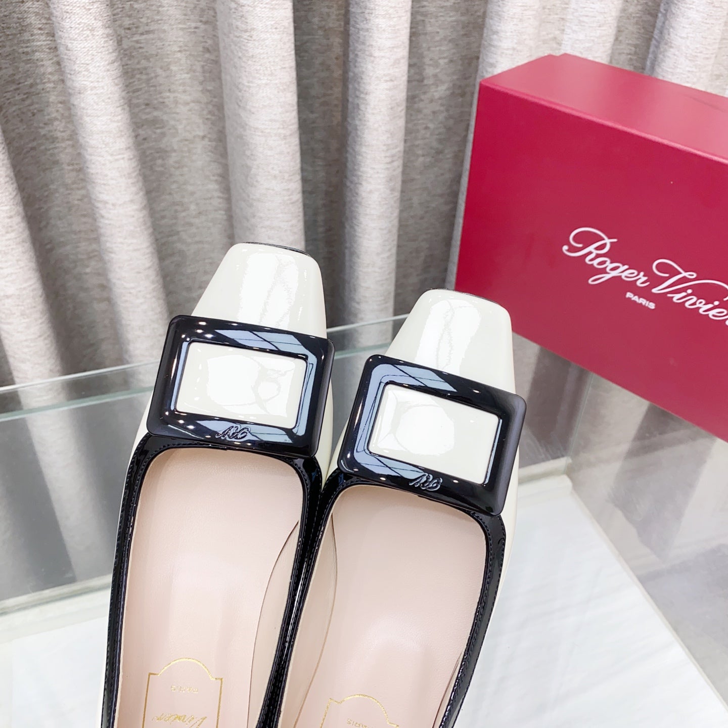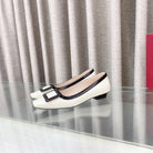 Viv Trompette Thick Heel Pumps White Cowhide Leather 283048