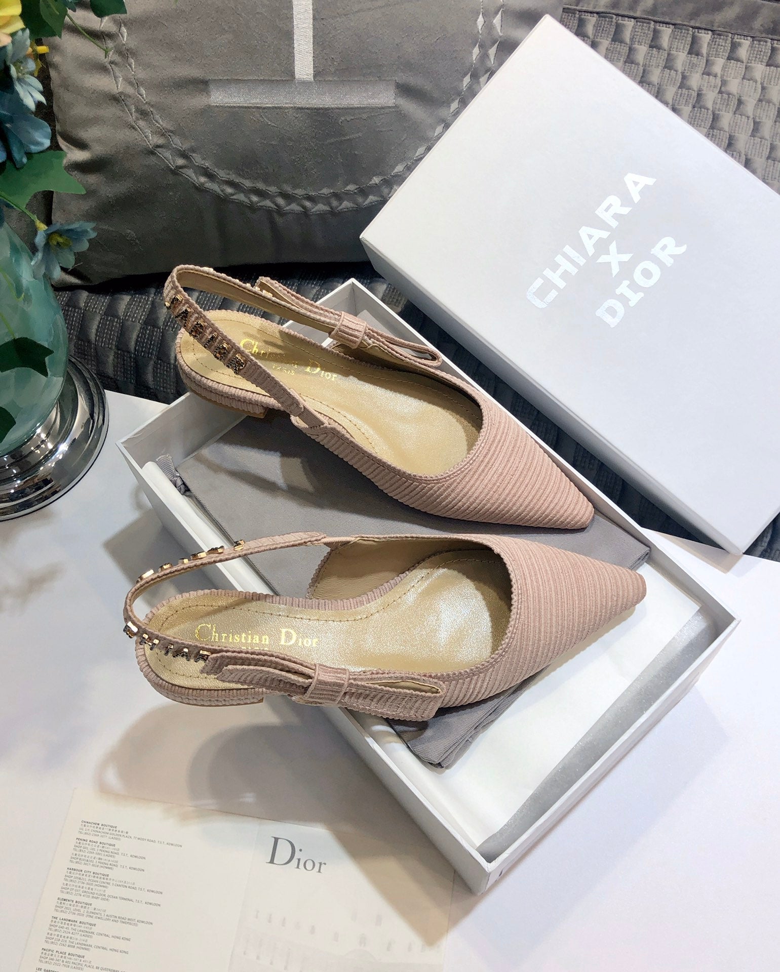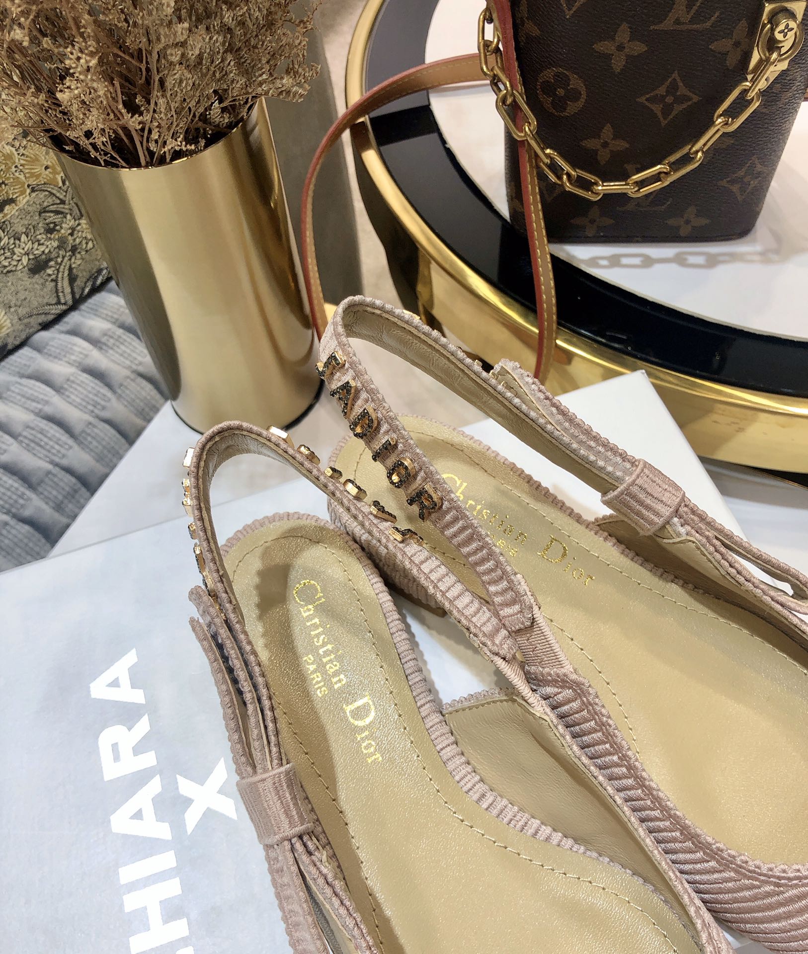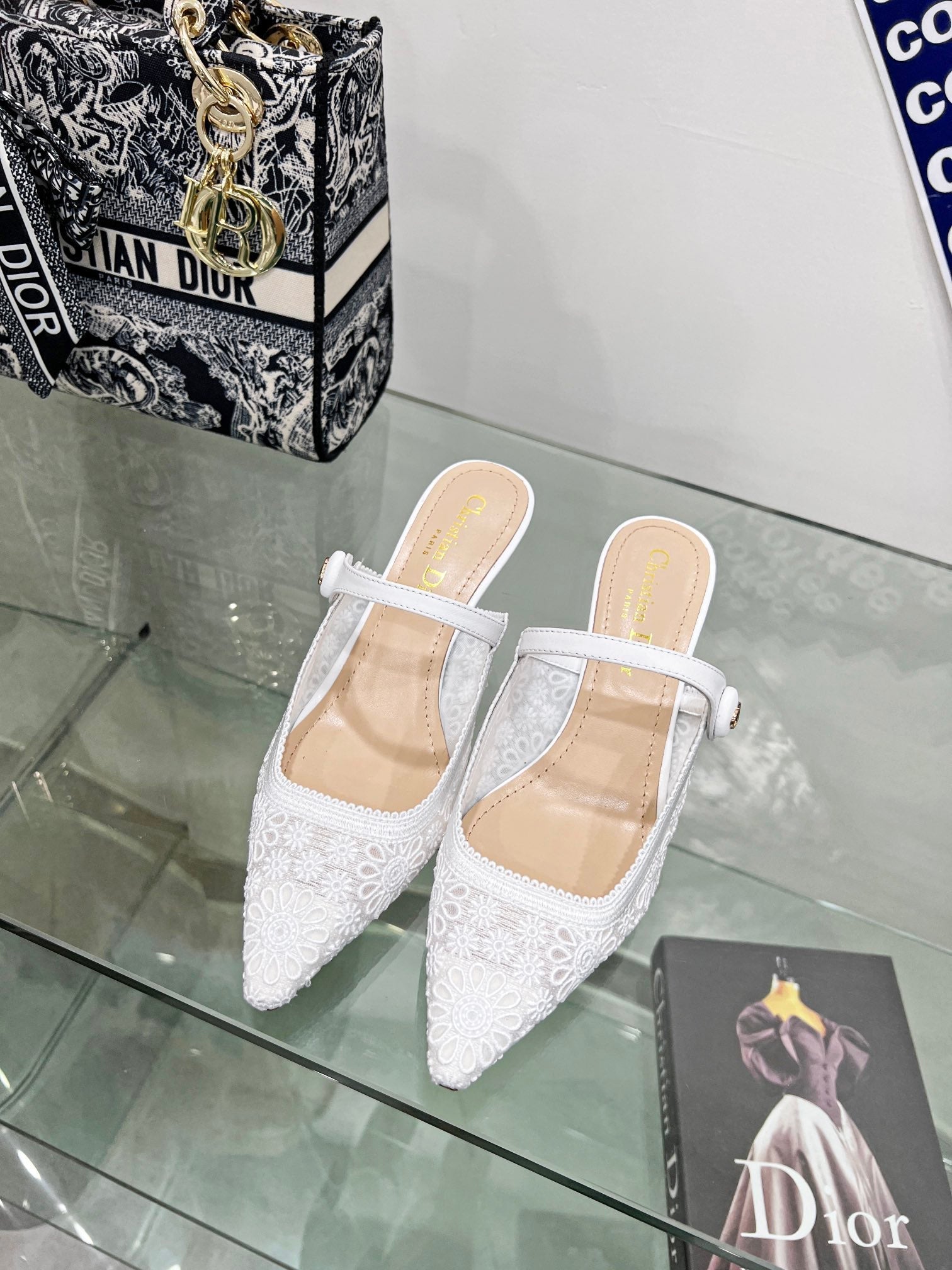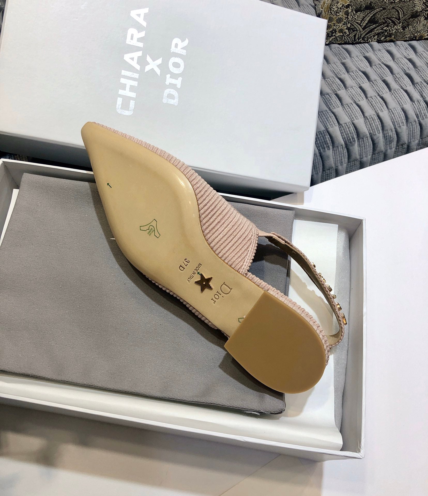 cd slingback flat embroidered cotton white calfskin resin pearl