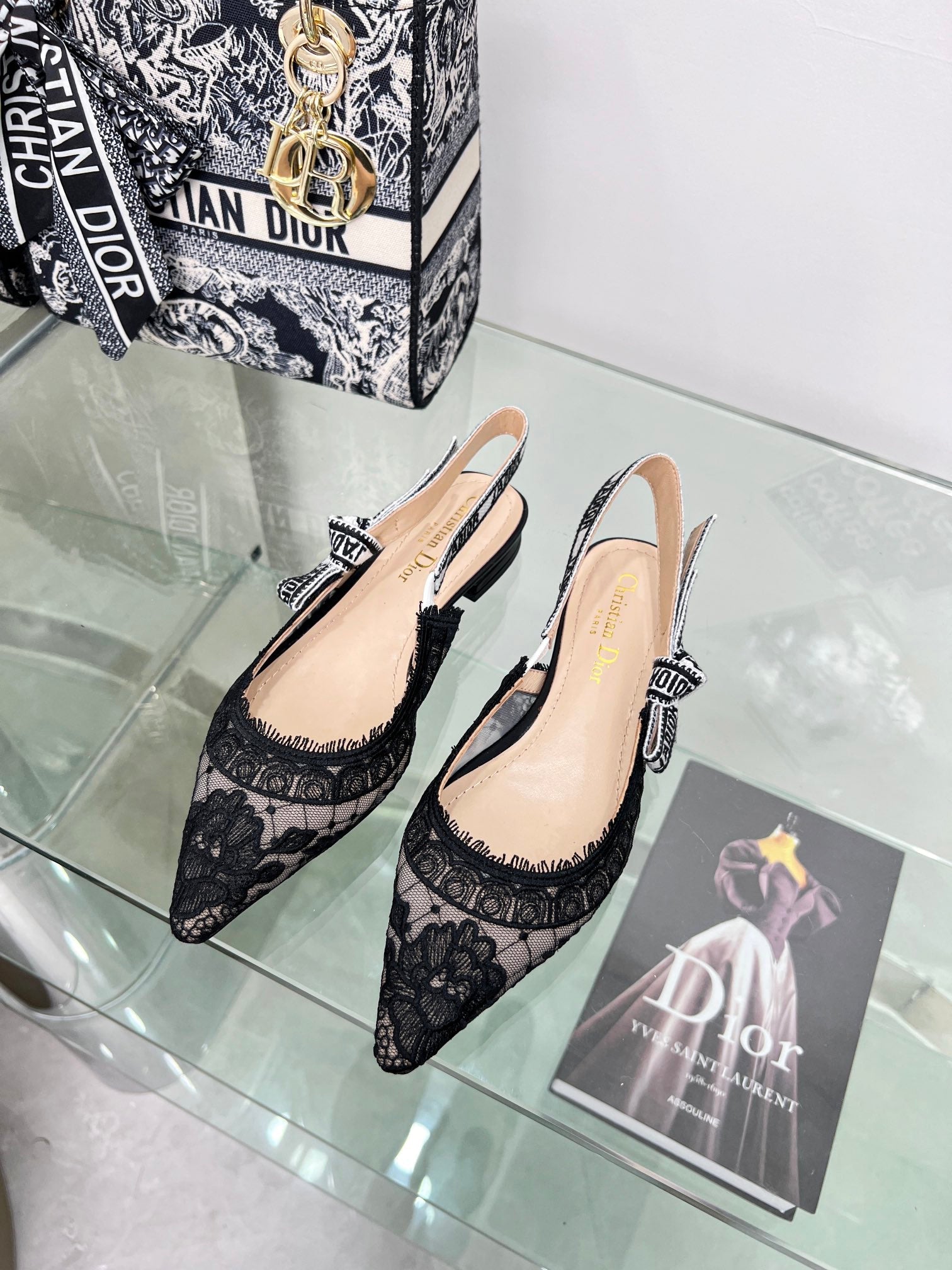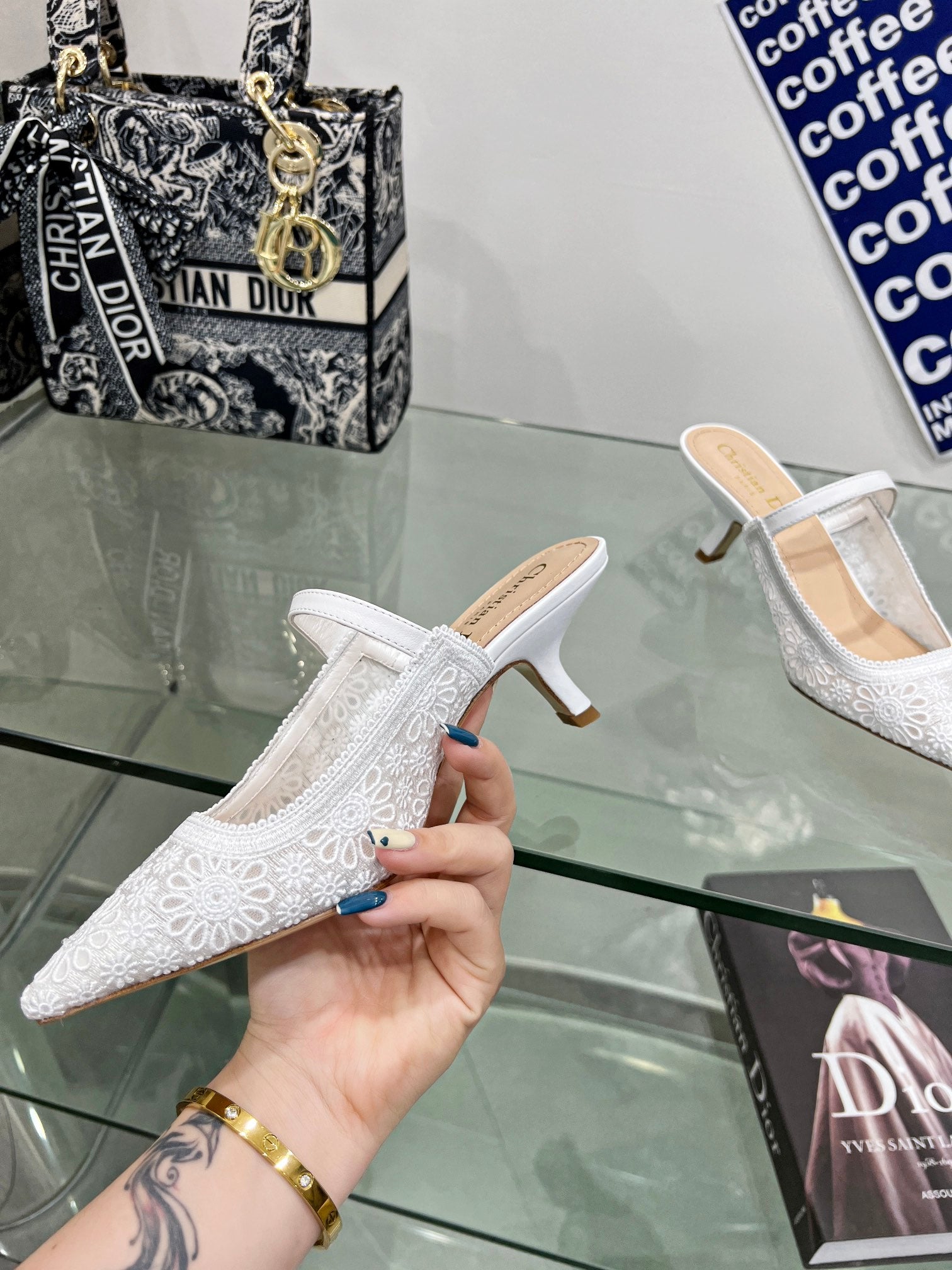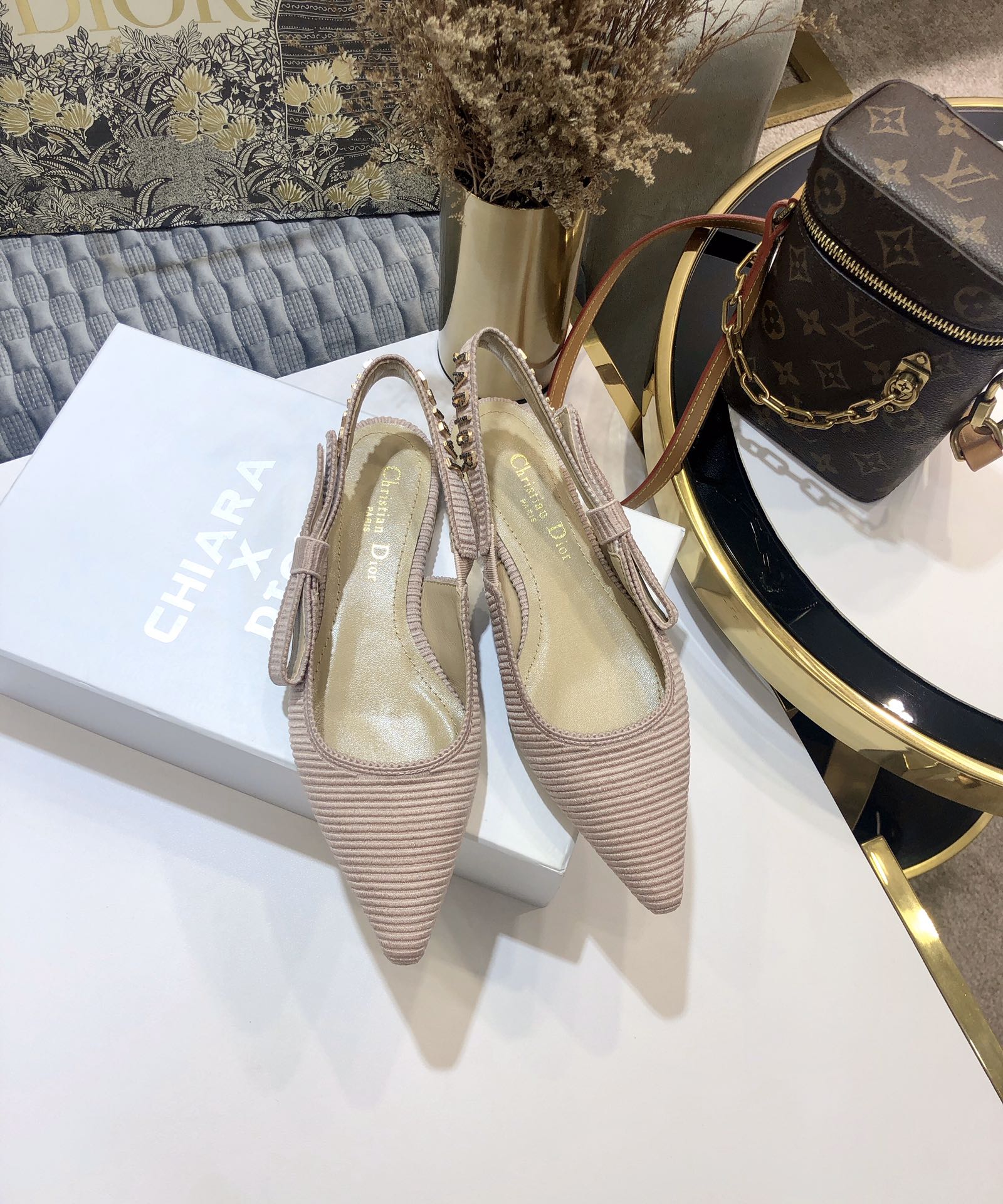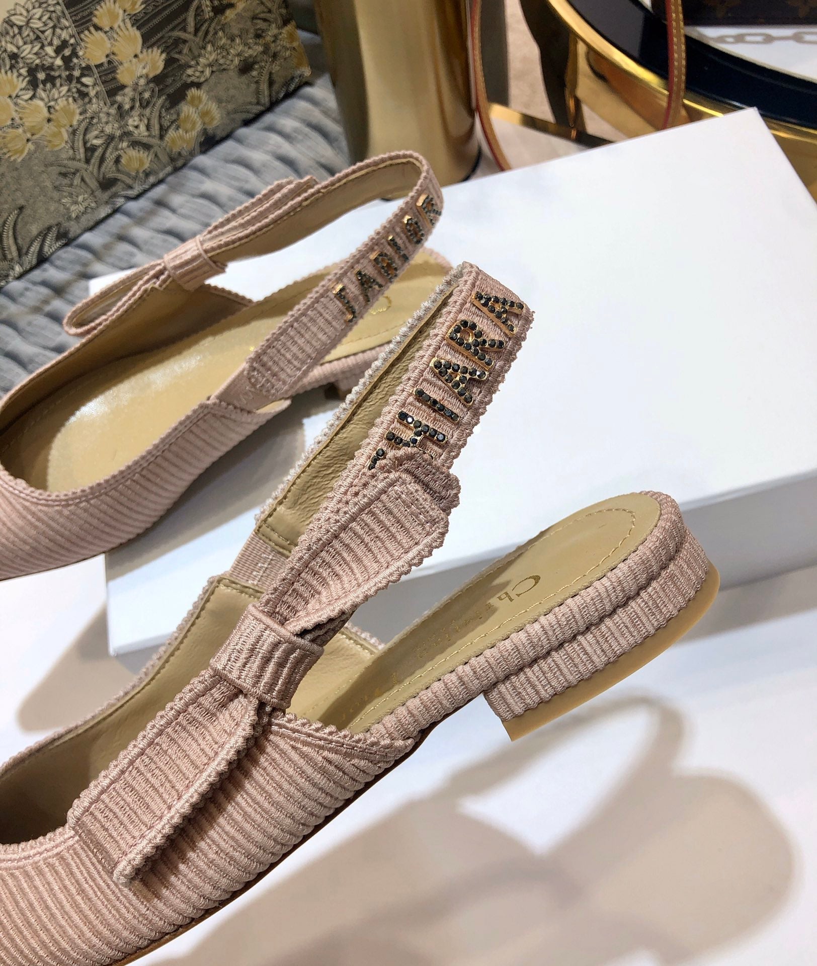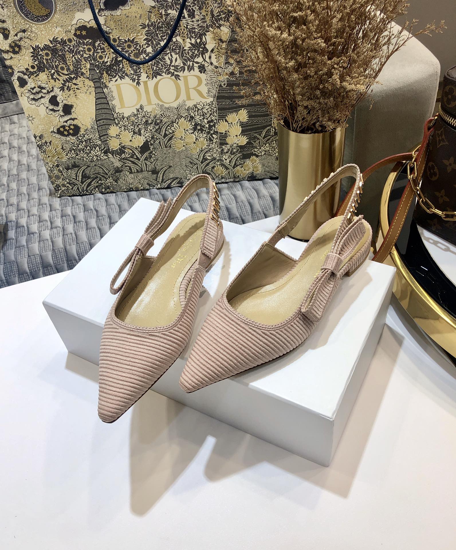cd slingback flat embroidered cotton white calfskin resin pearl