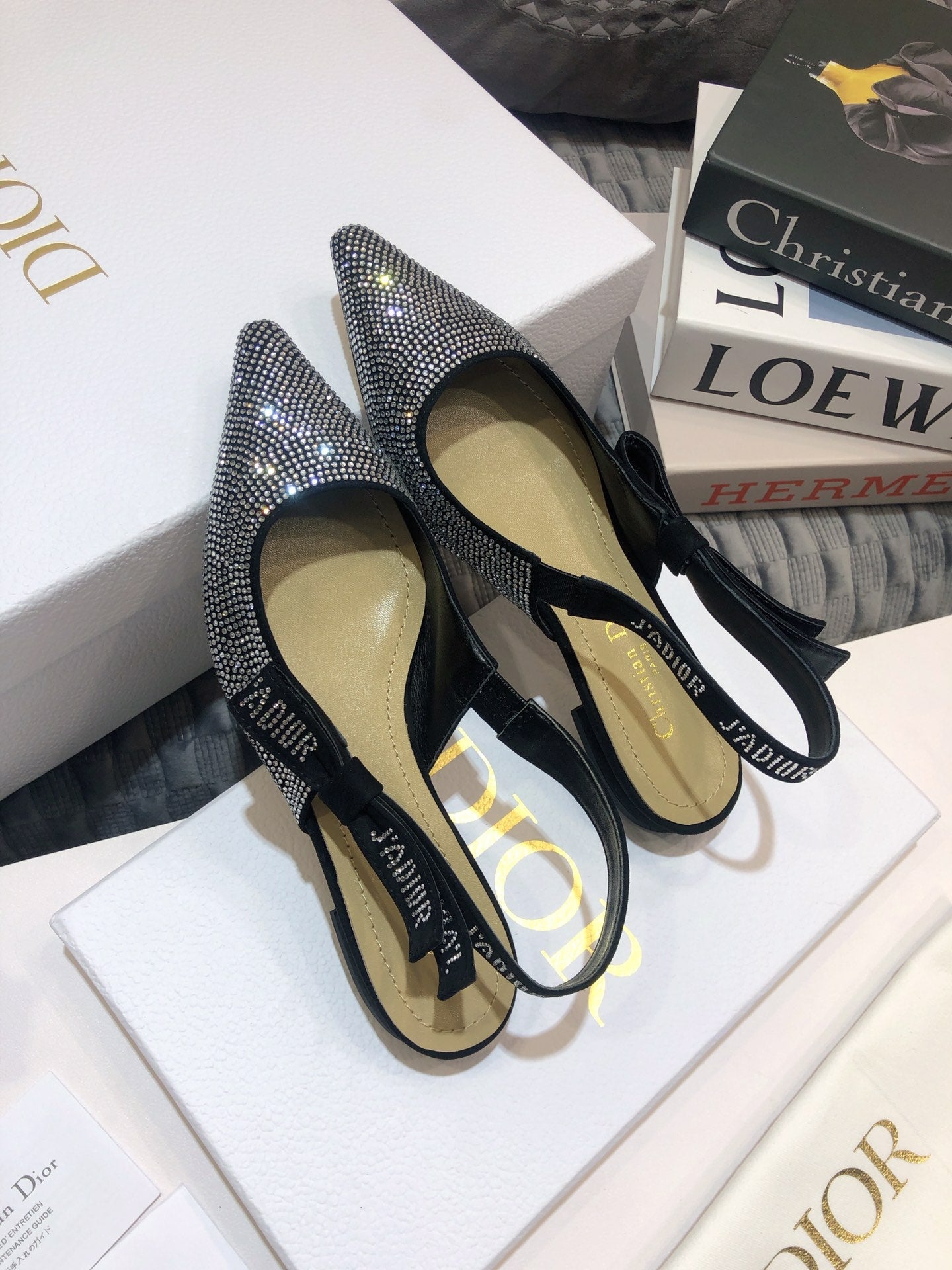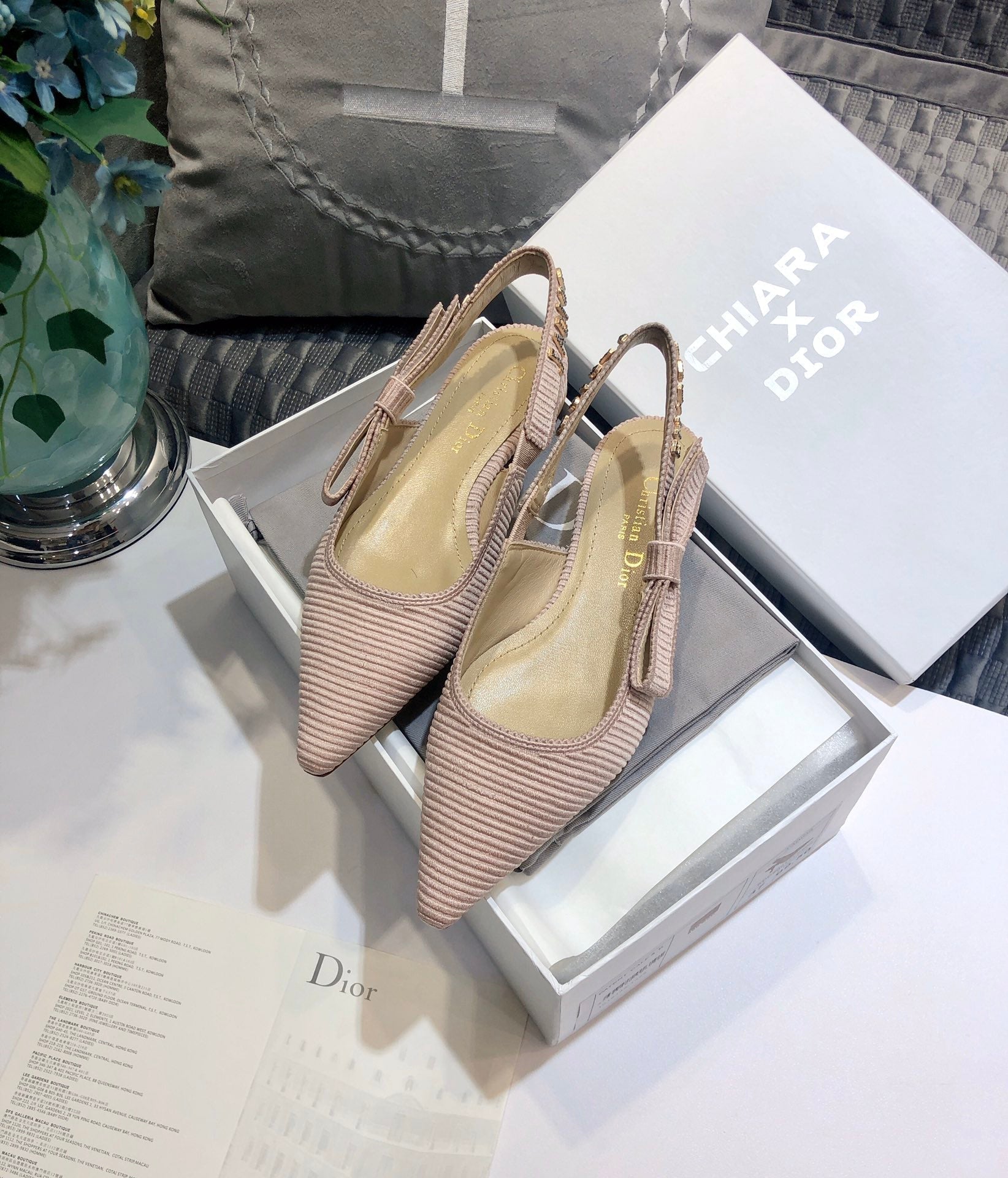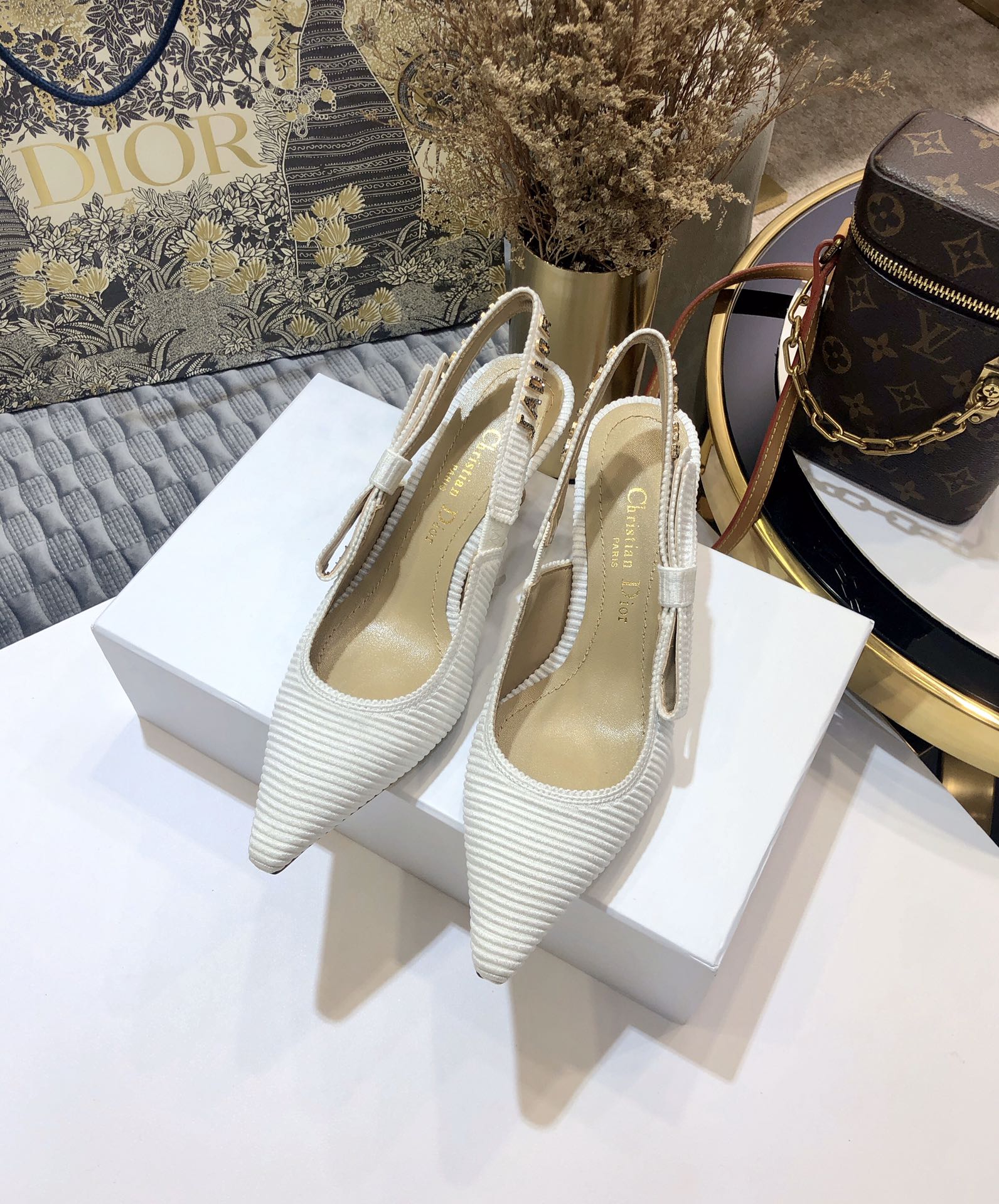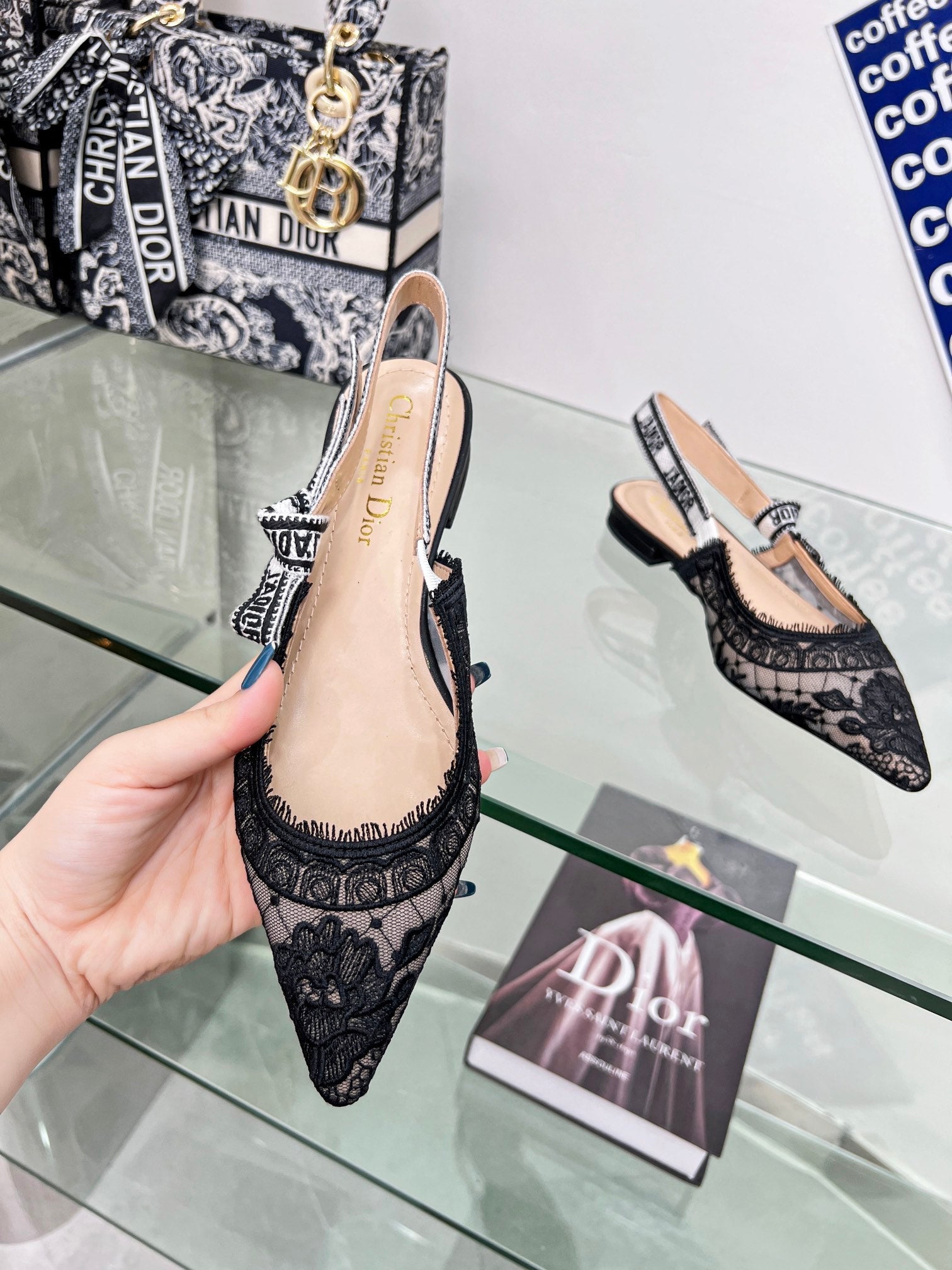 cd slingback flat embroidered cotton white calfskin resin pearl