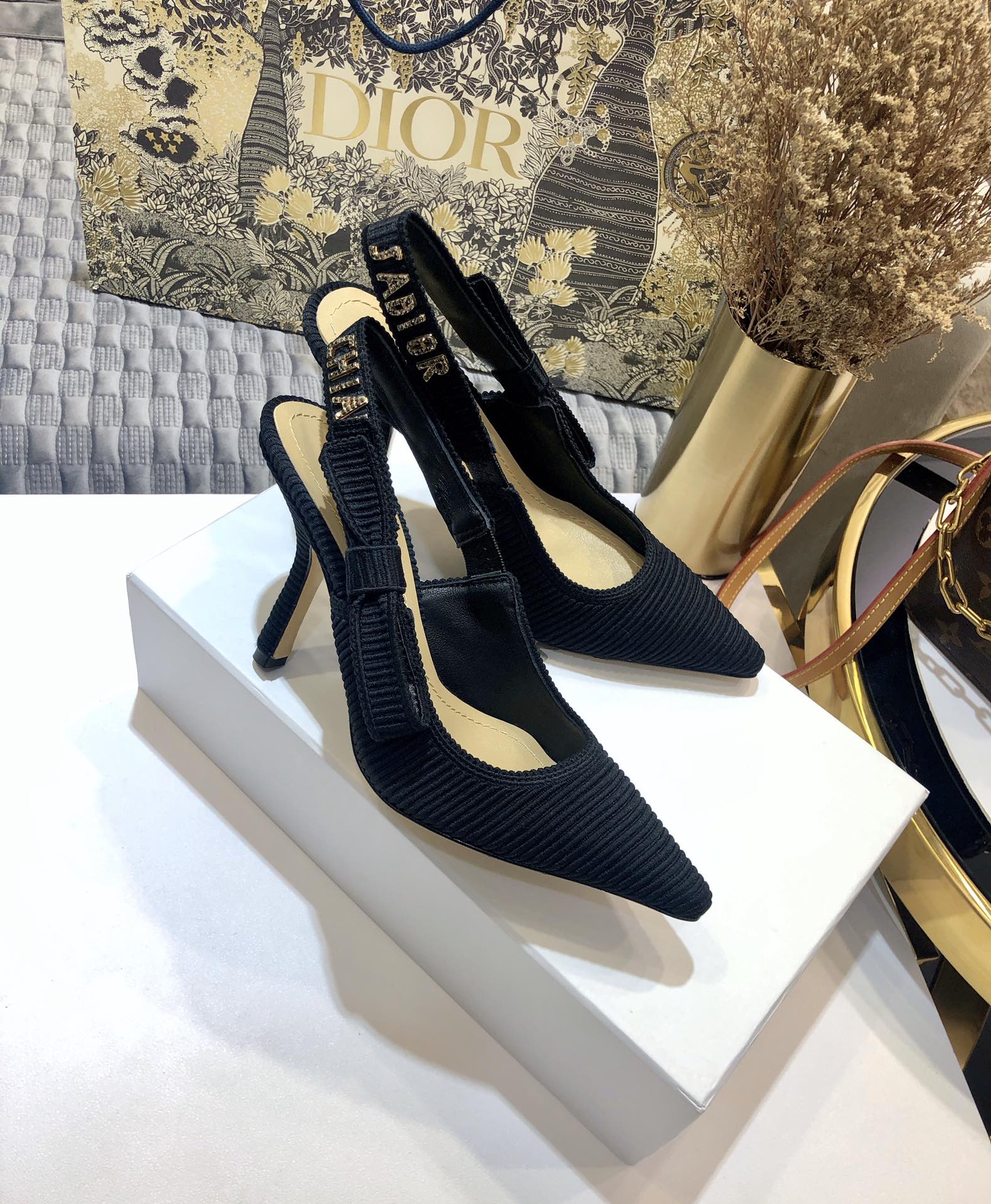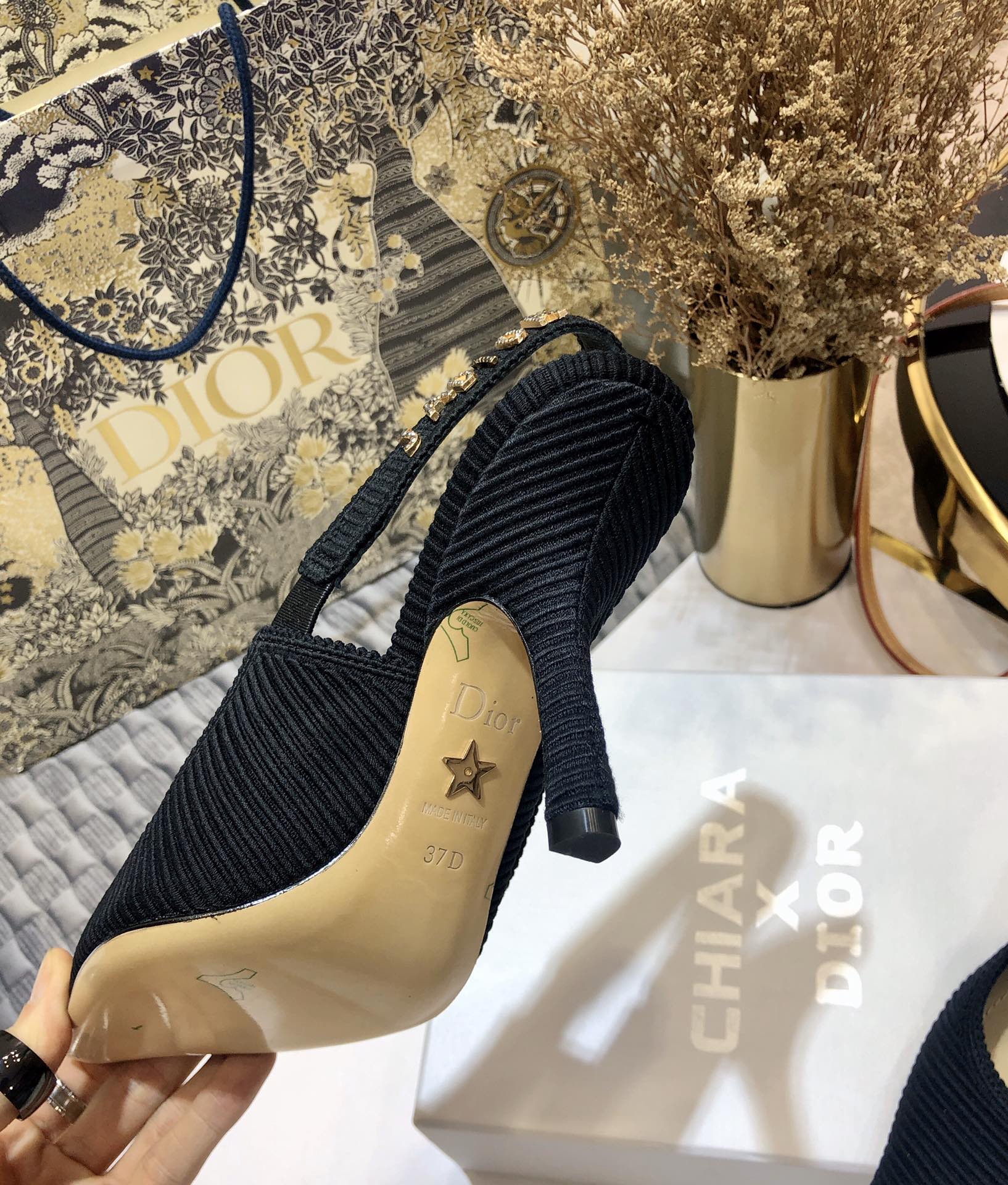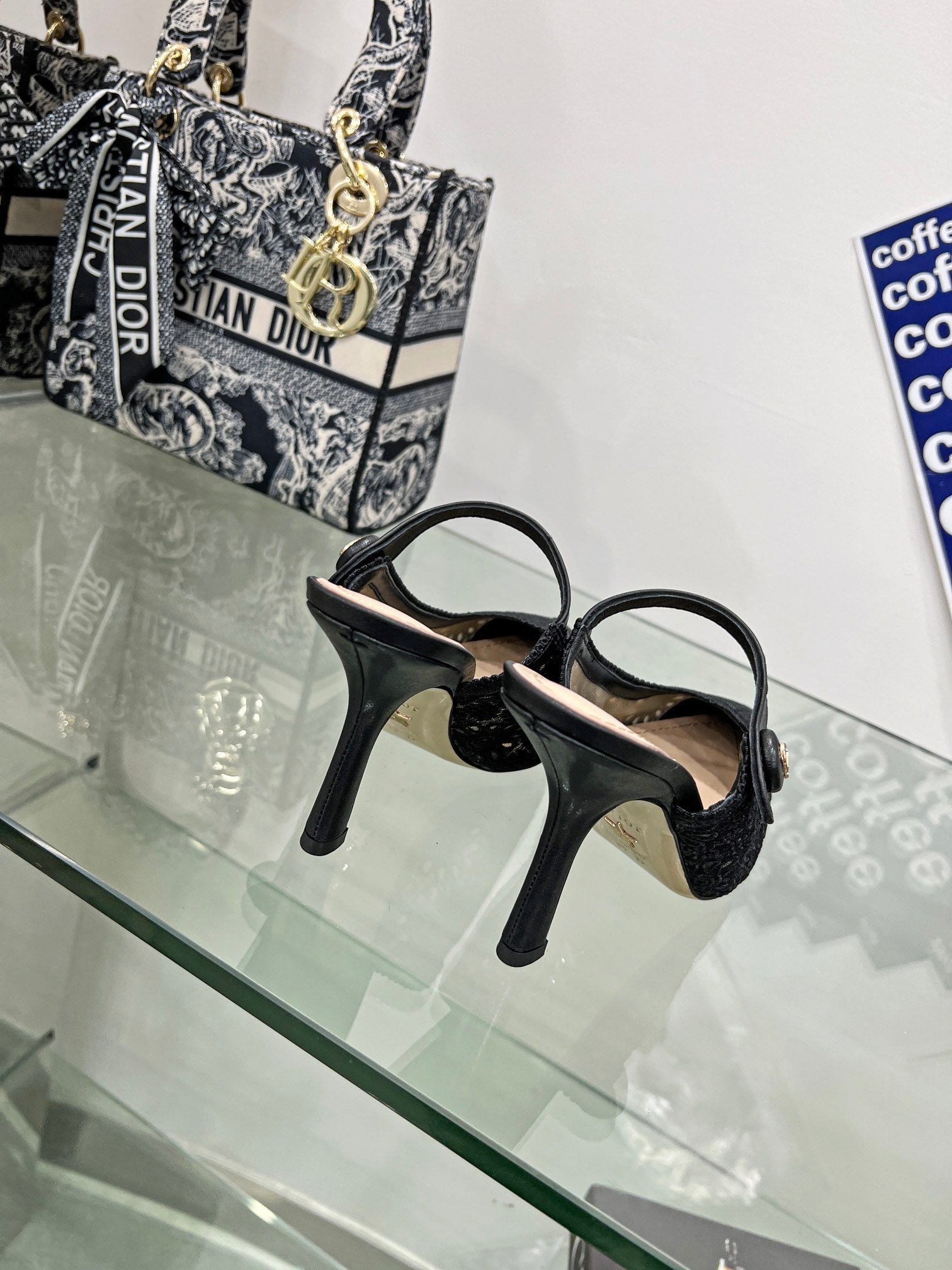 JAdior slingback pumps 95 transparent mesh black embroidered cotton