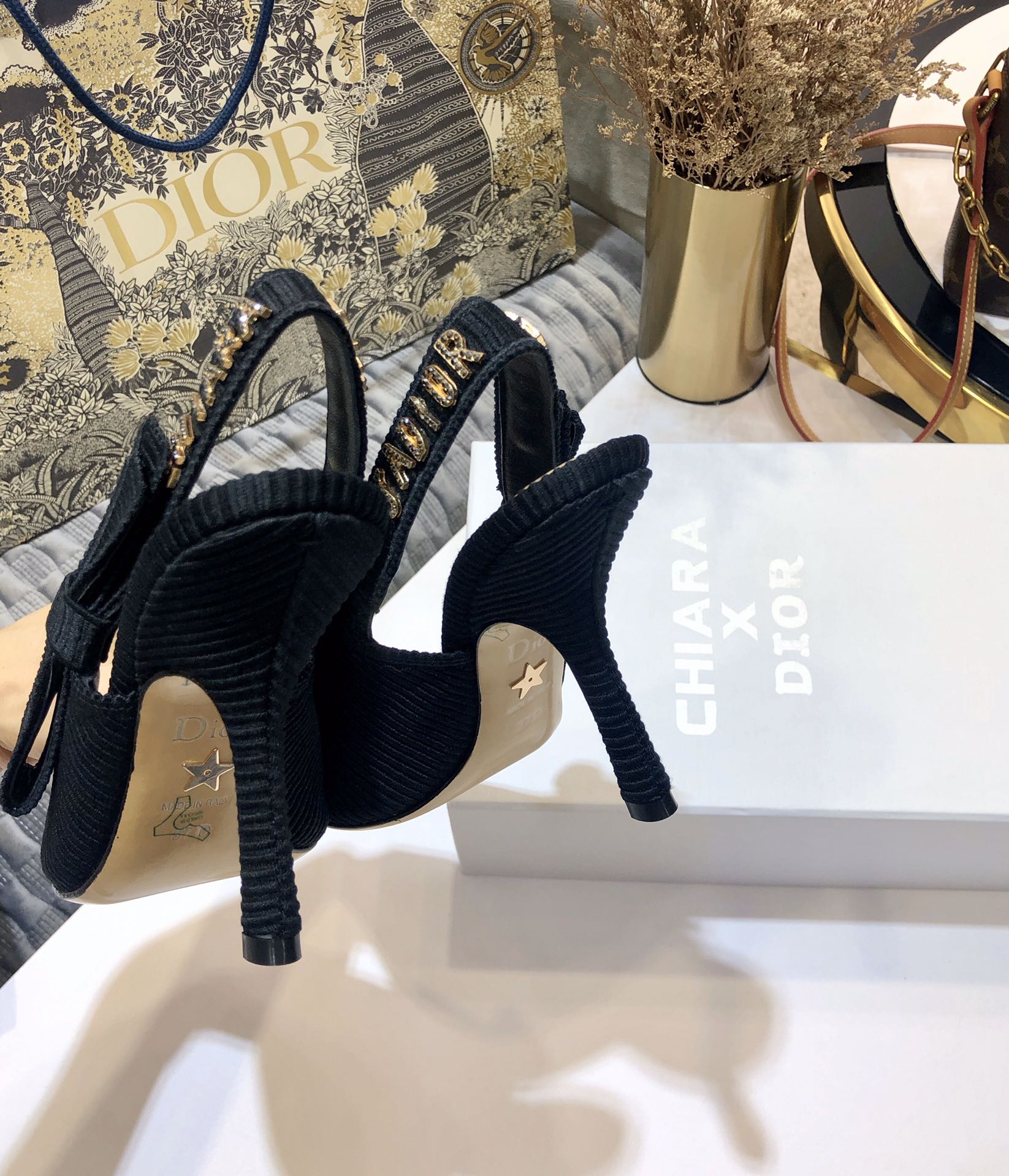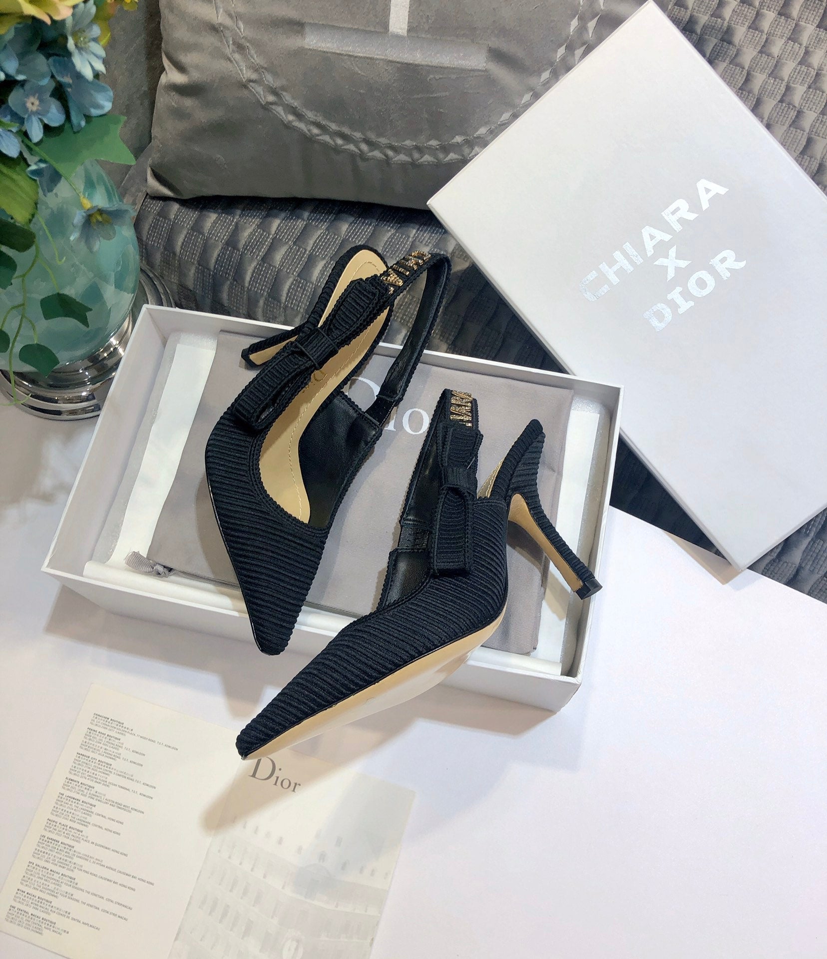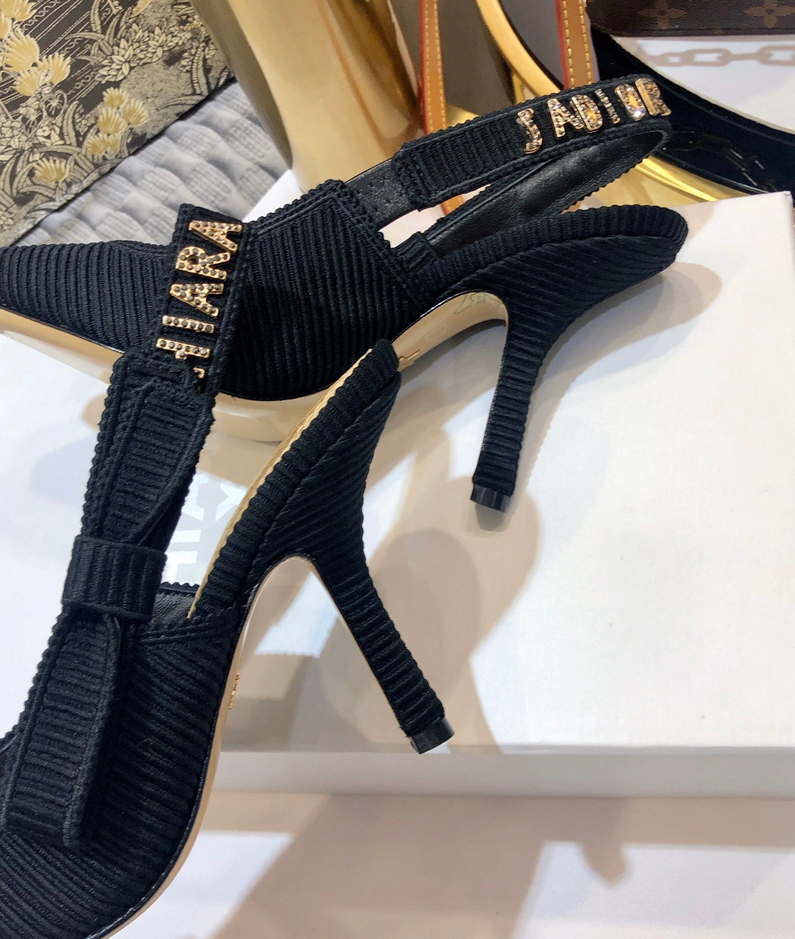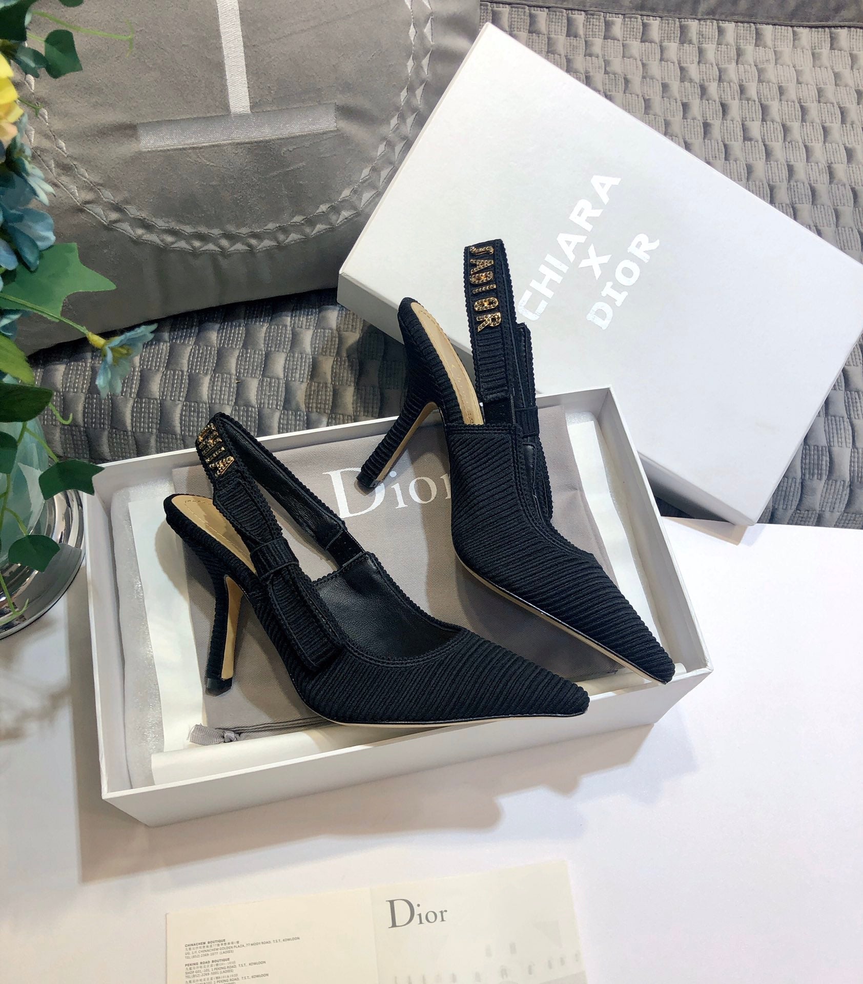 JAdior slingback pumps 95 transparent mesh black embroidered cotton