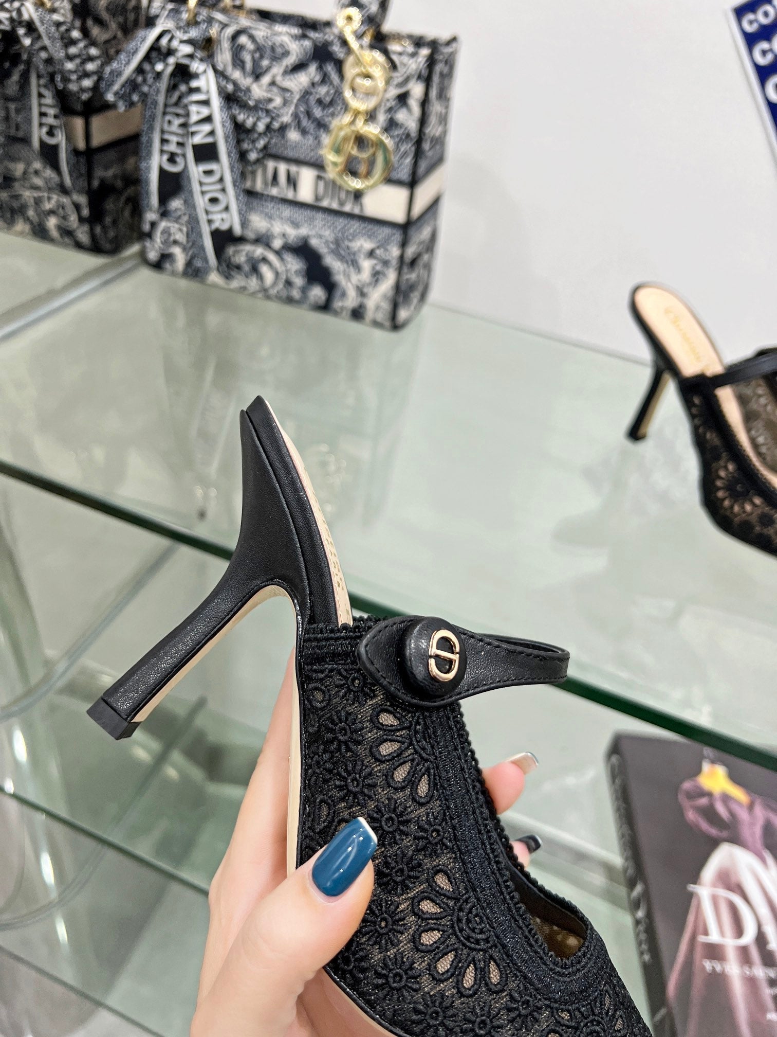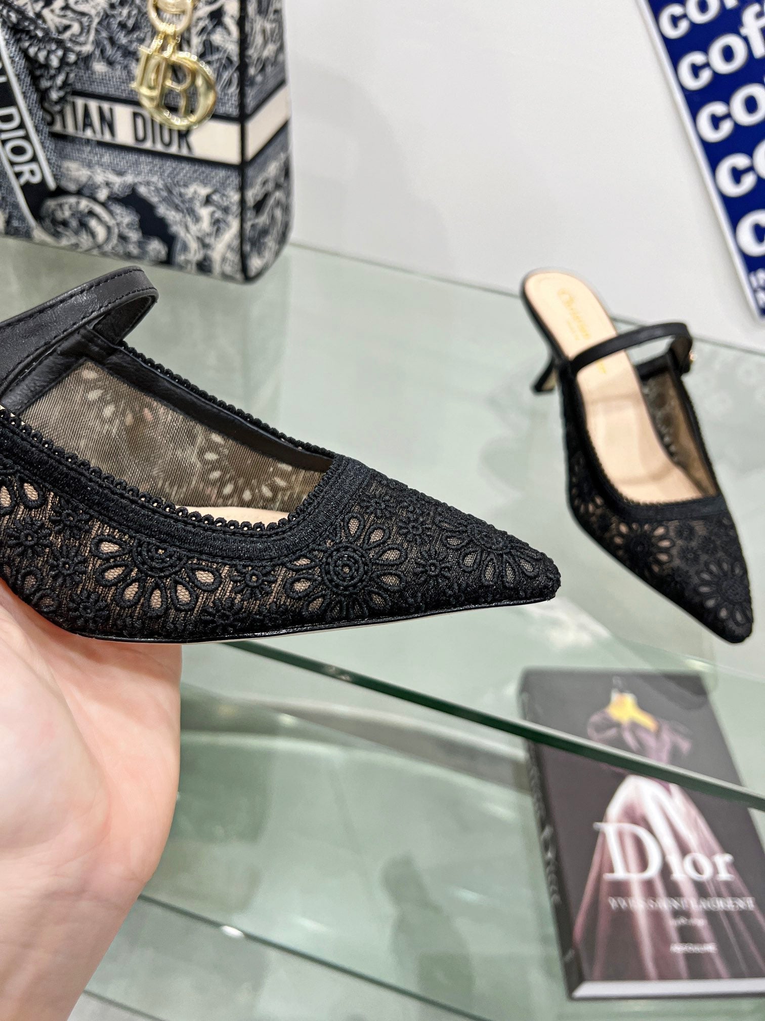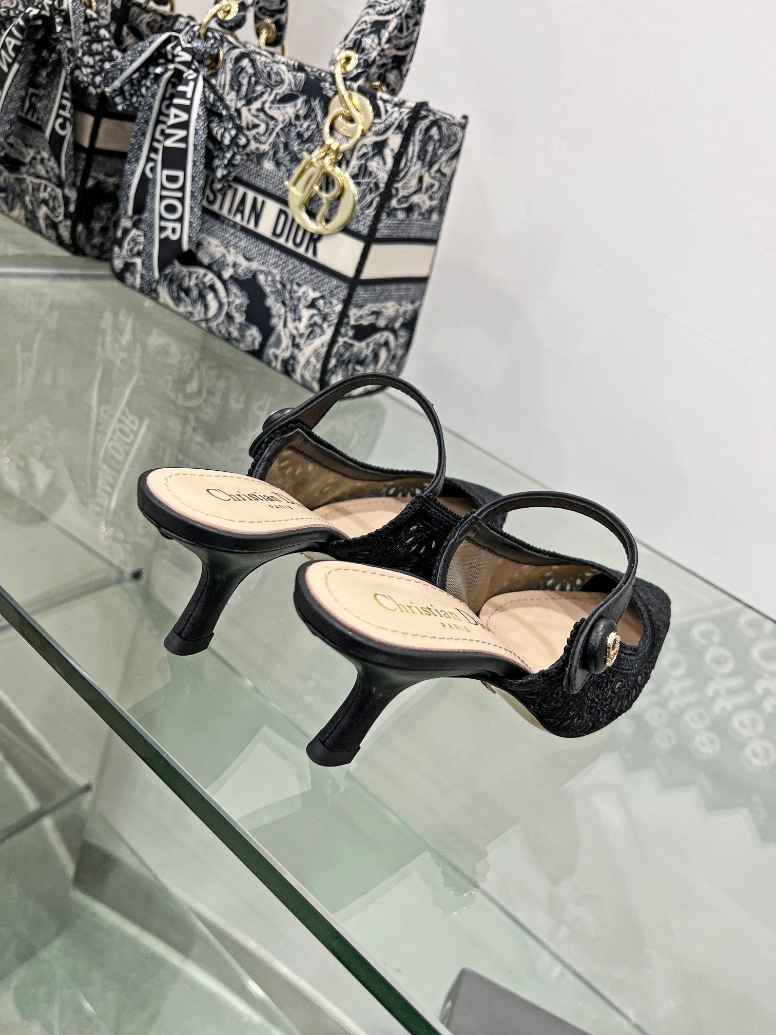 JAdior slingback pumps 65 full transparent mesh black embroidered cotton