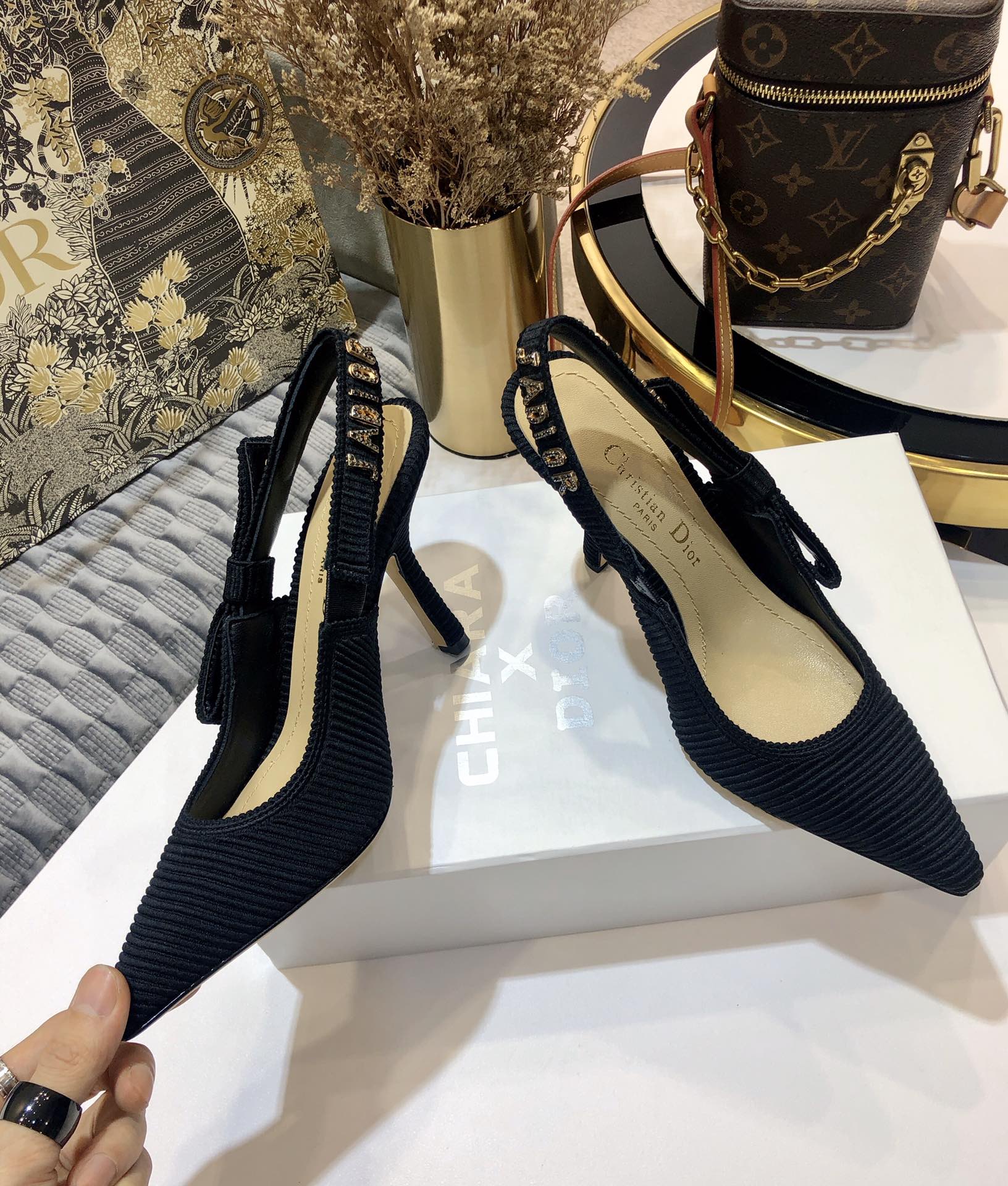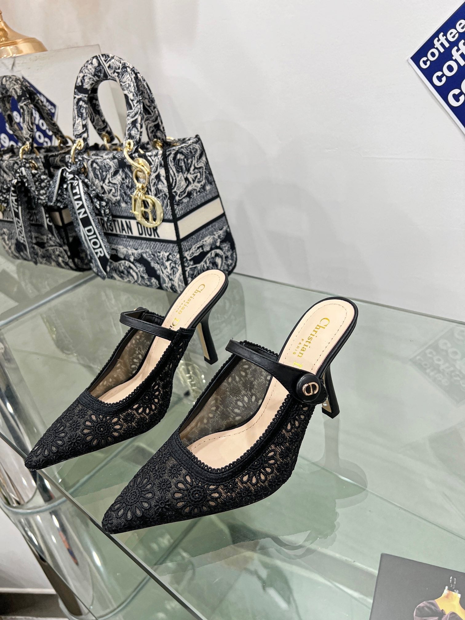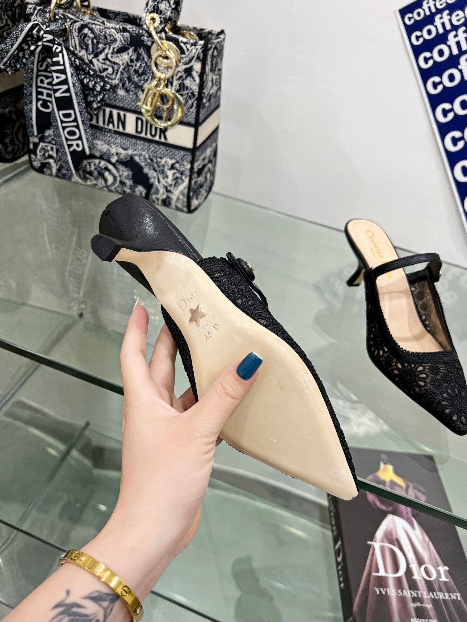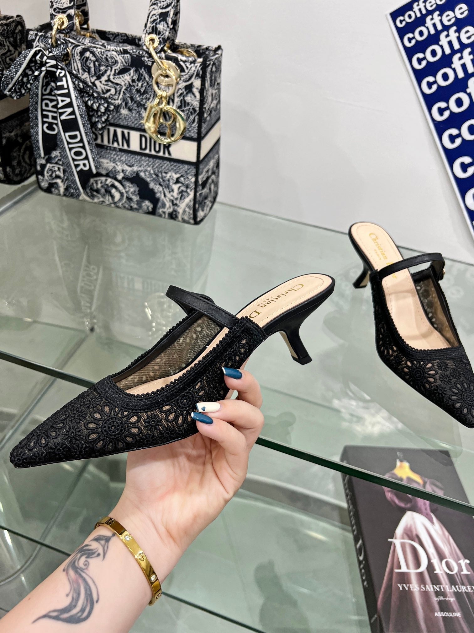 JAdior slingback pumps 65 full transparent mesh black embroidered cotton