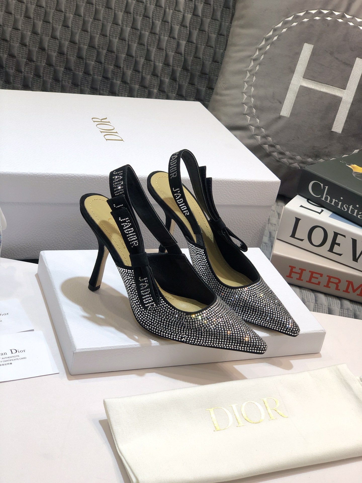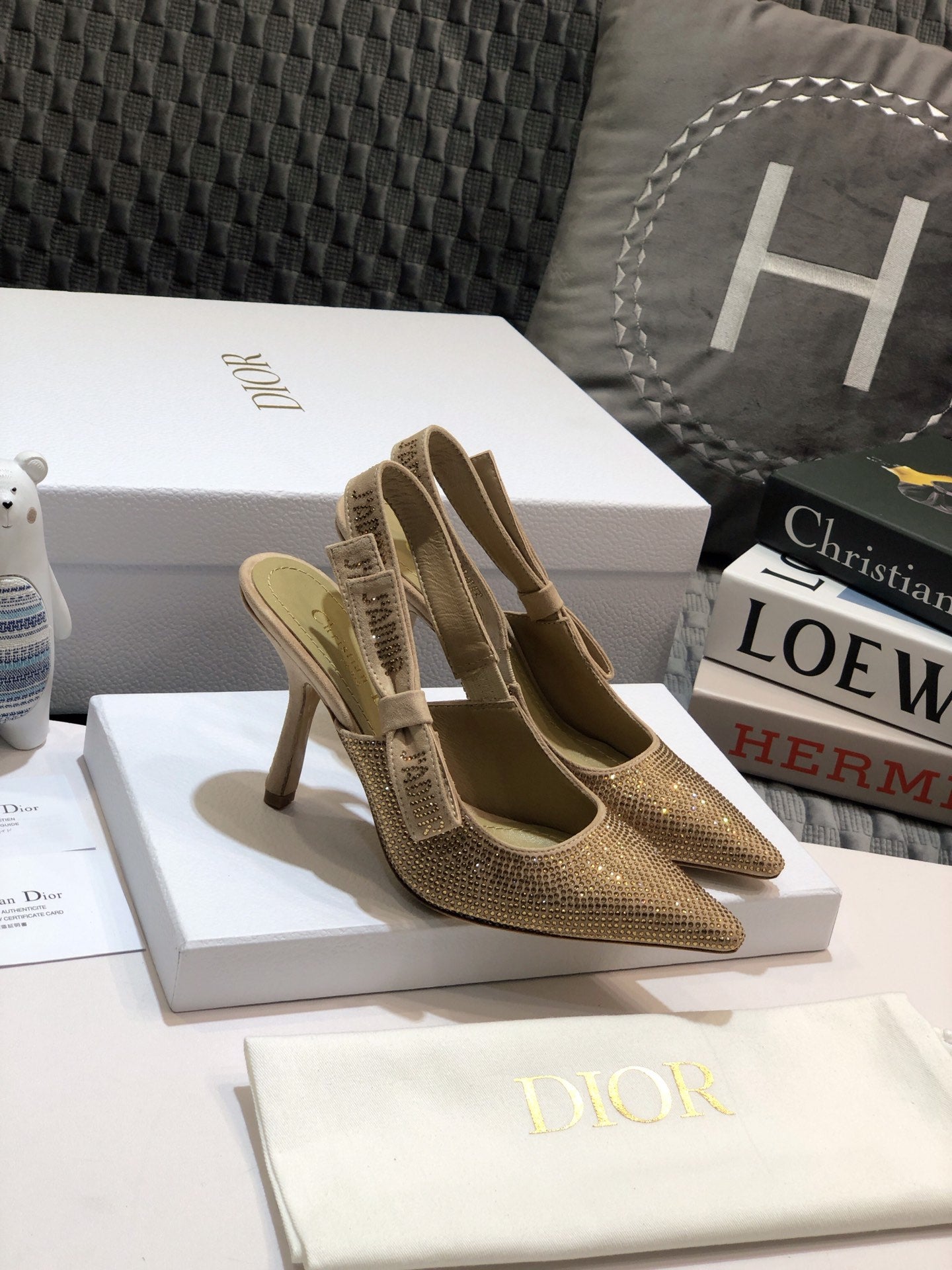 JAdior slingback pump 95 beige full diamond crystal and seude