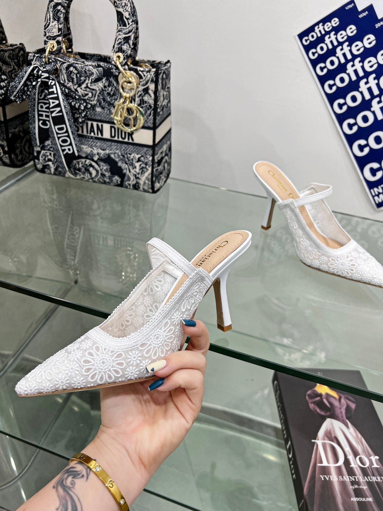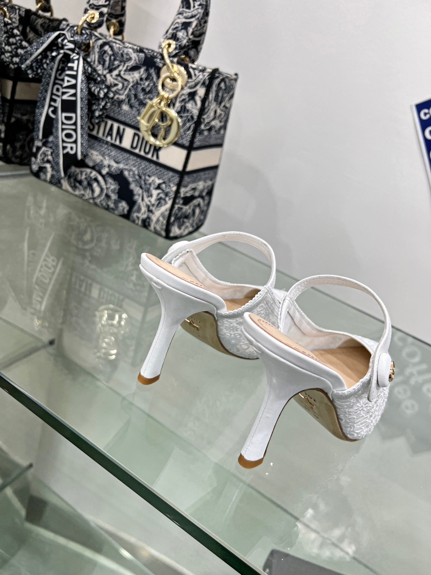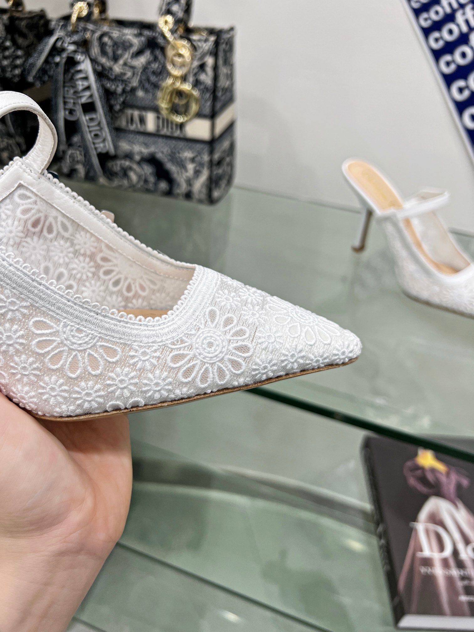 JAdior slingback pumps 95 transparent mesh beige embroidered cotton
