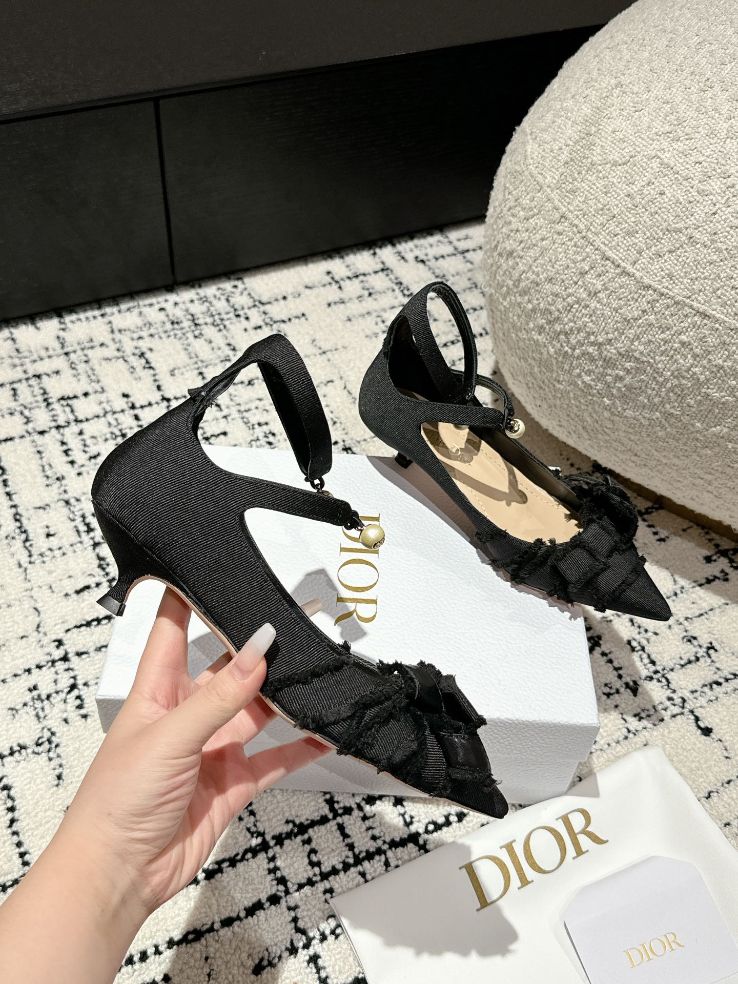 CD Adiorable pump 45 Black Fringed Grosgrain