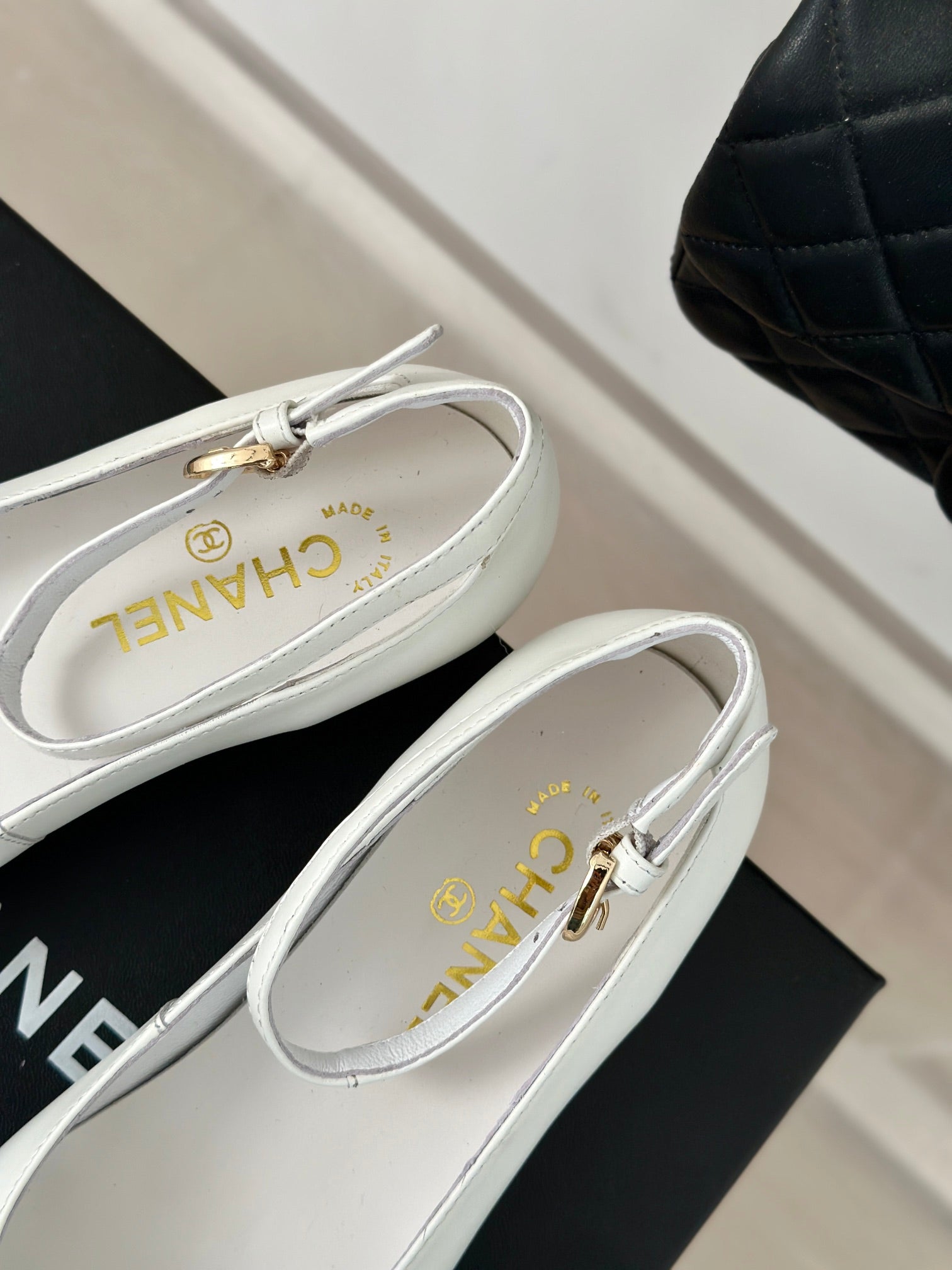 CC Mary Jane Beige Yellow Round Nose Lambskin