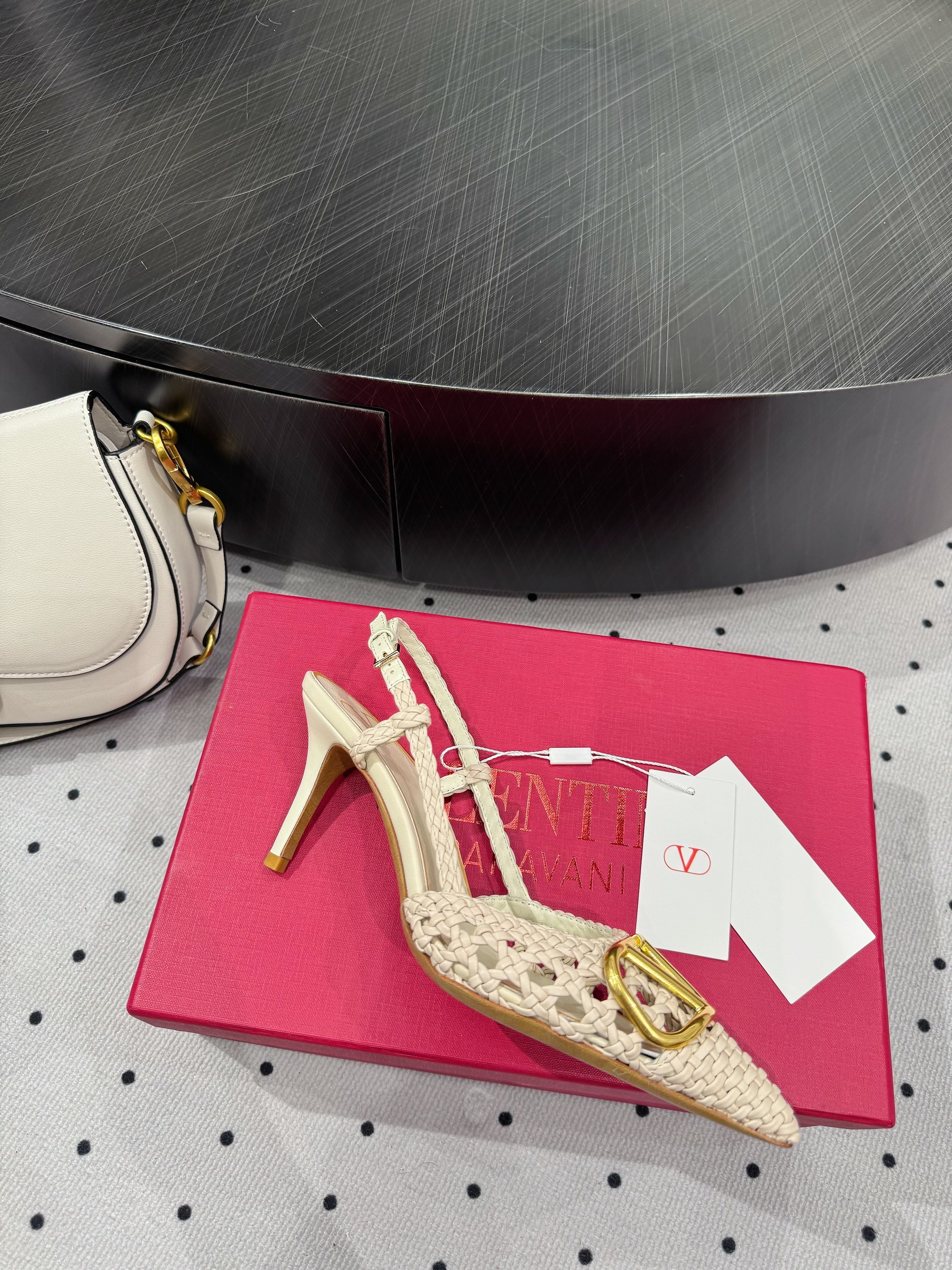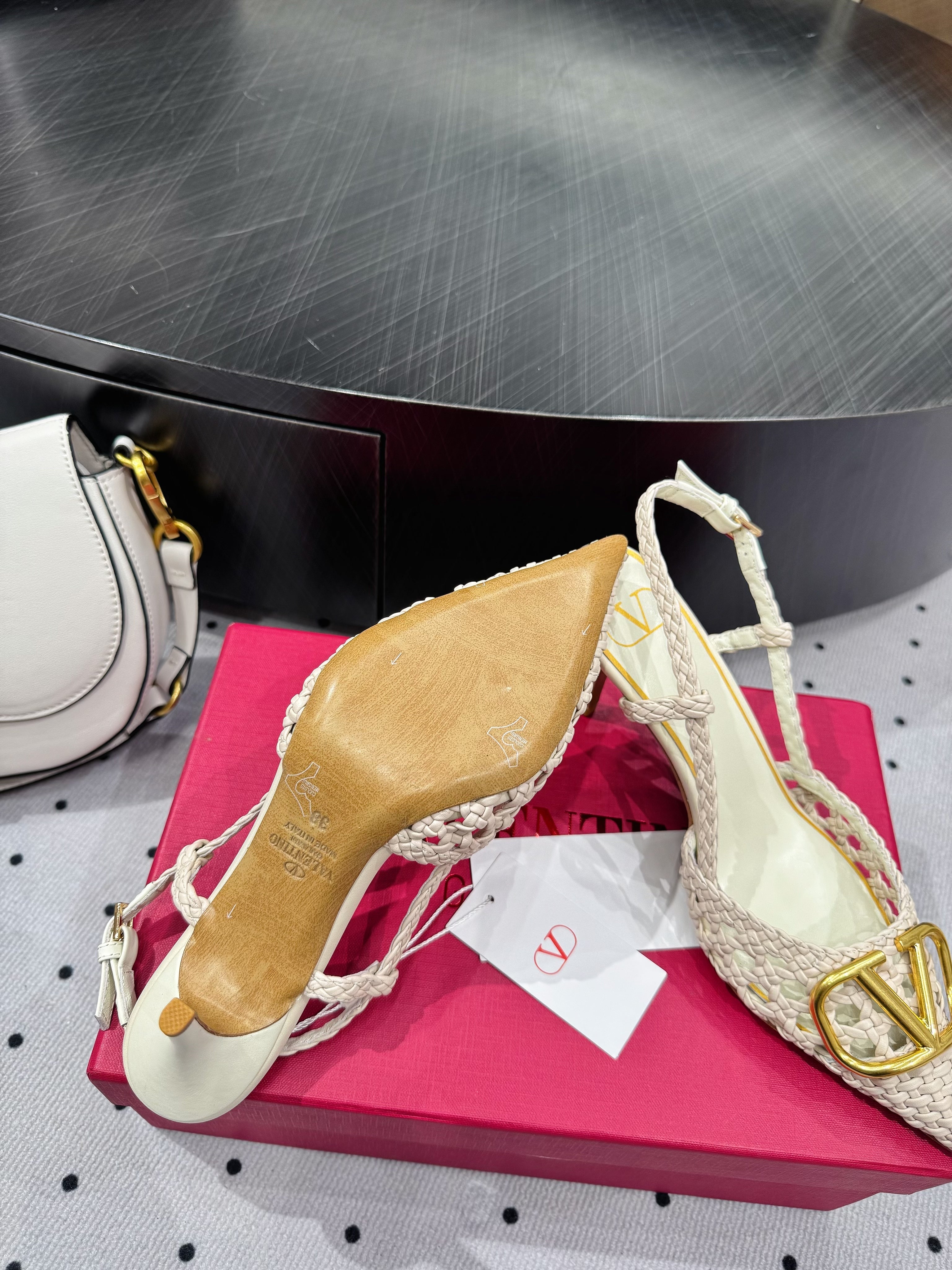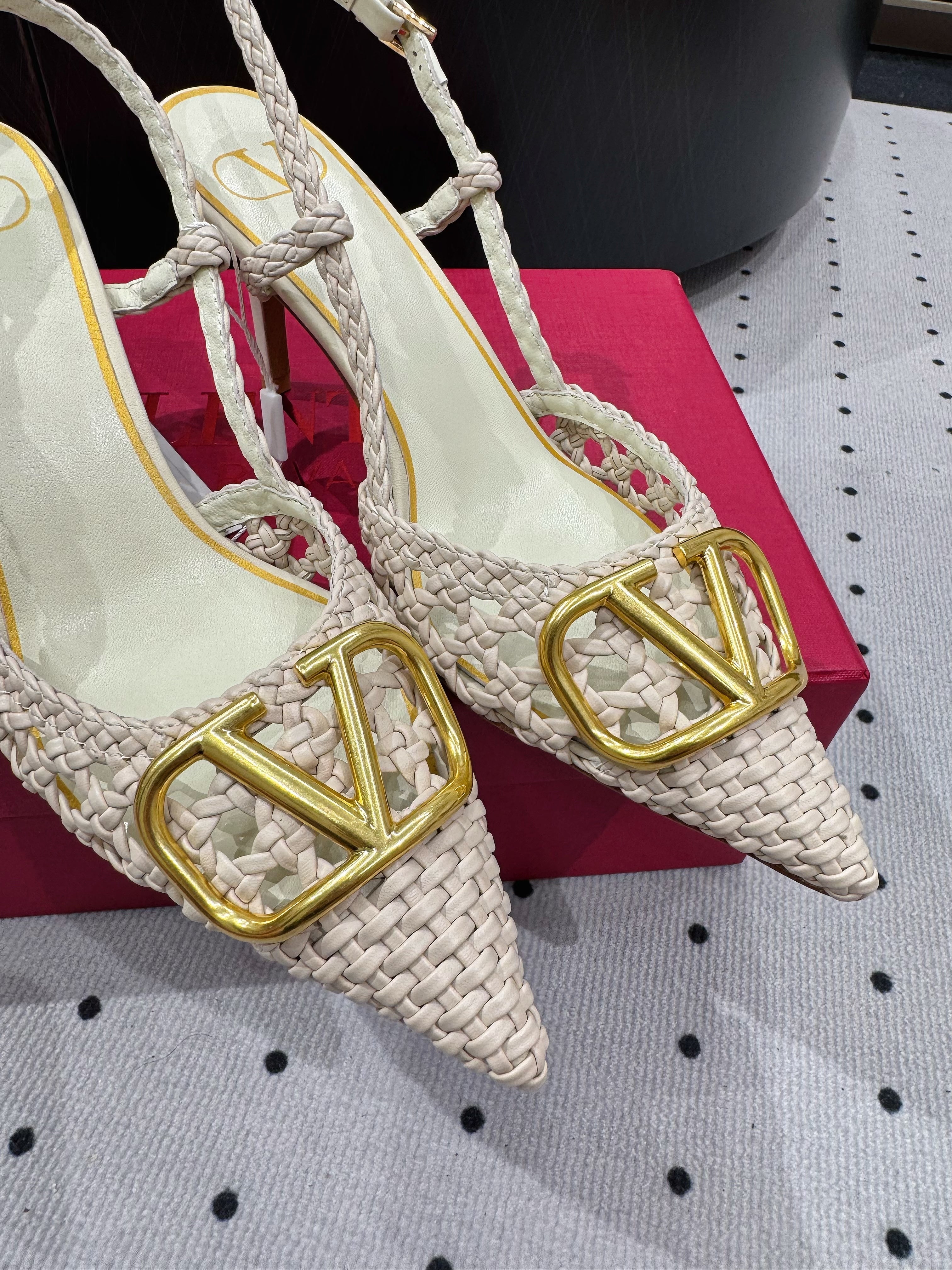 VT Vlogo Signature 75mm Pink White Slingback Sheepskin