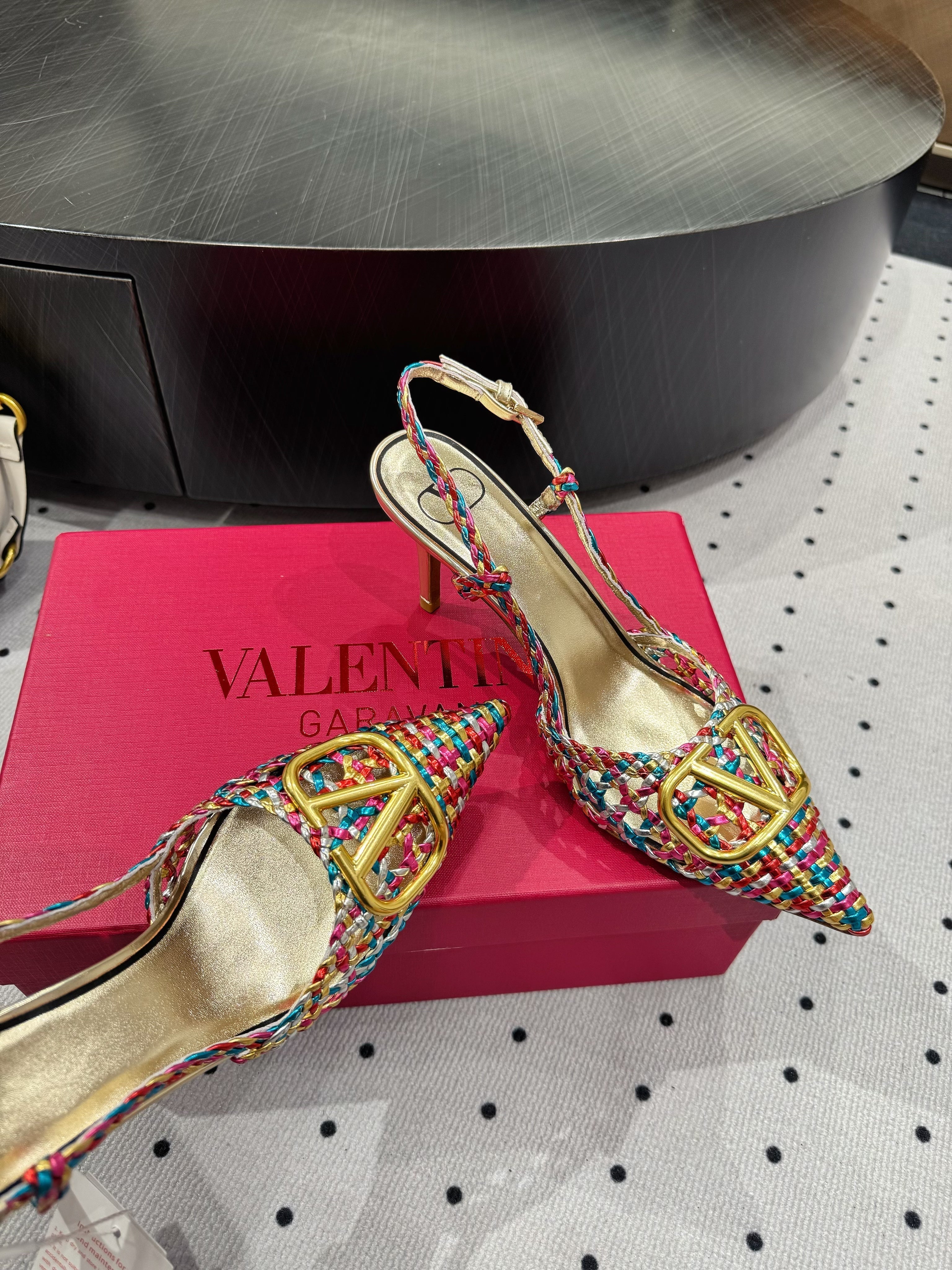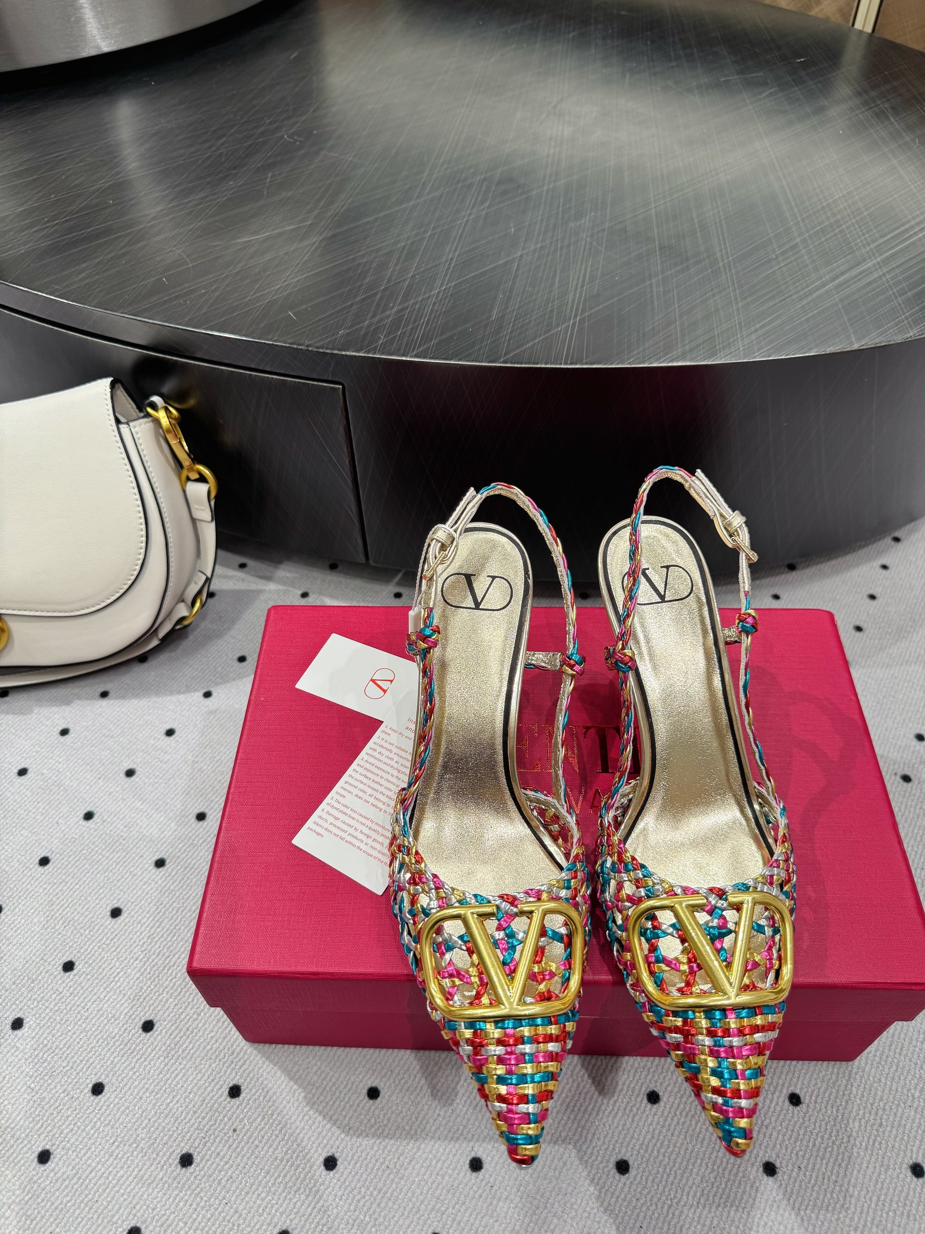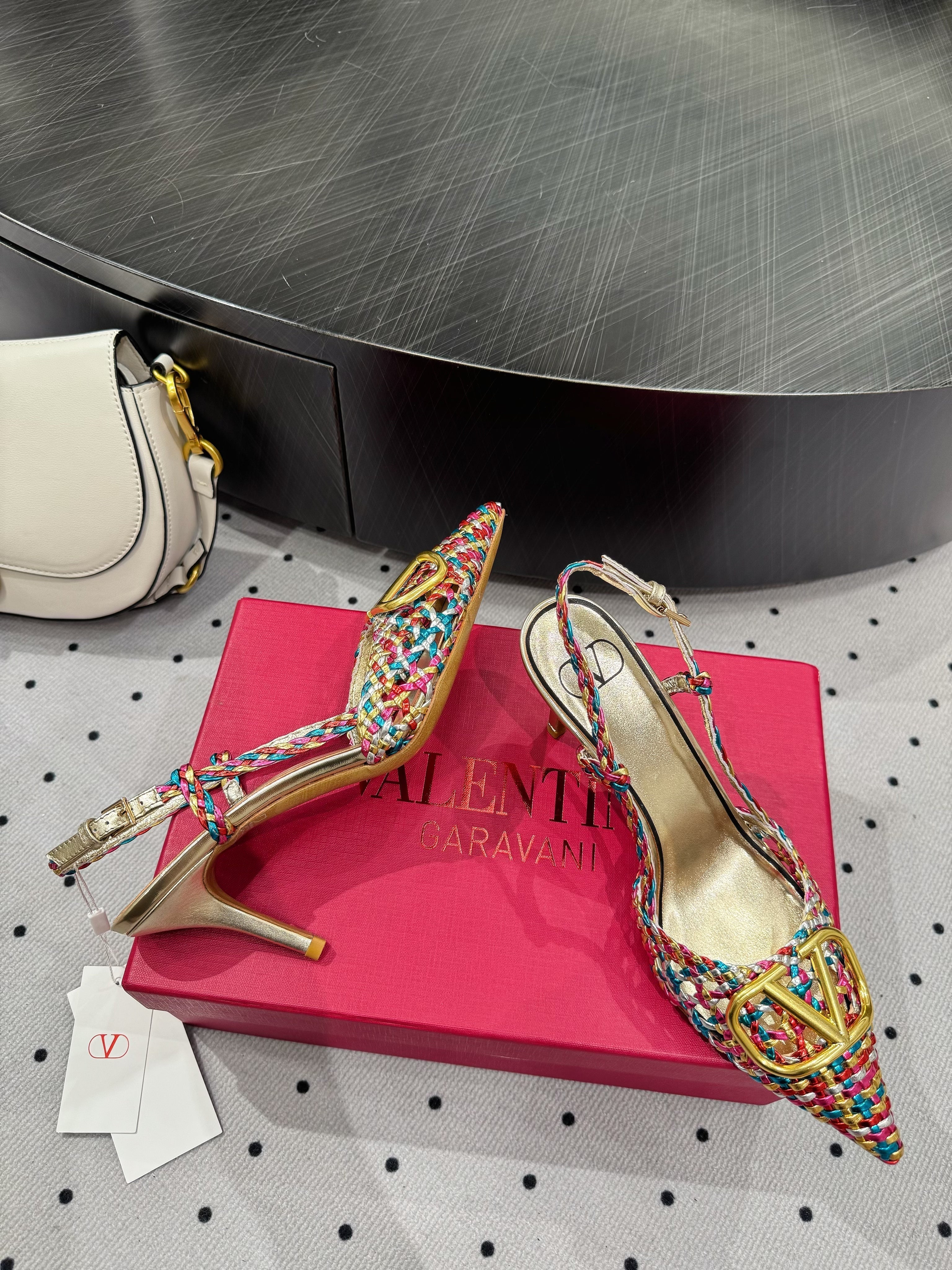 VT Vlogo Signature 75mm Pink White Slingback Sheepskin