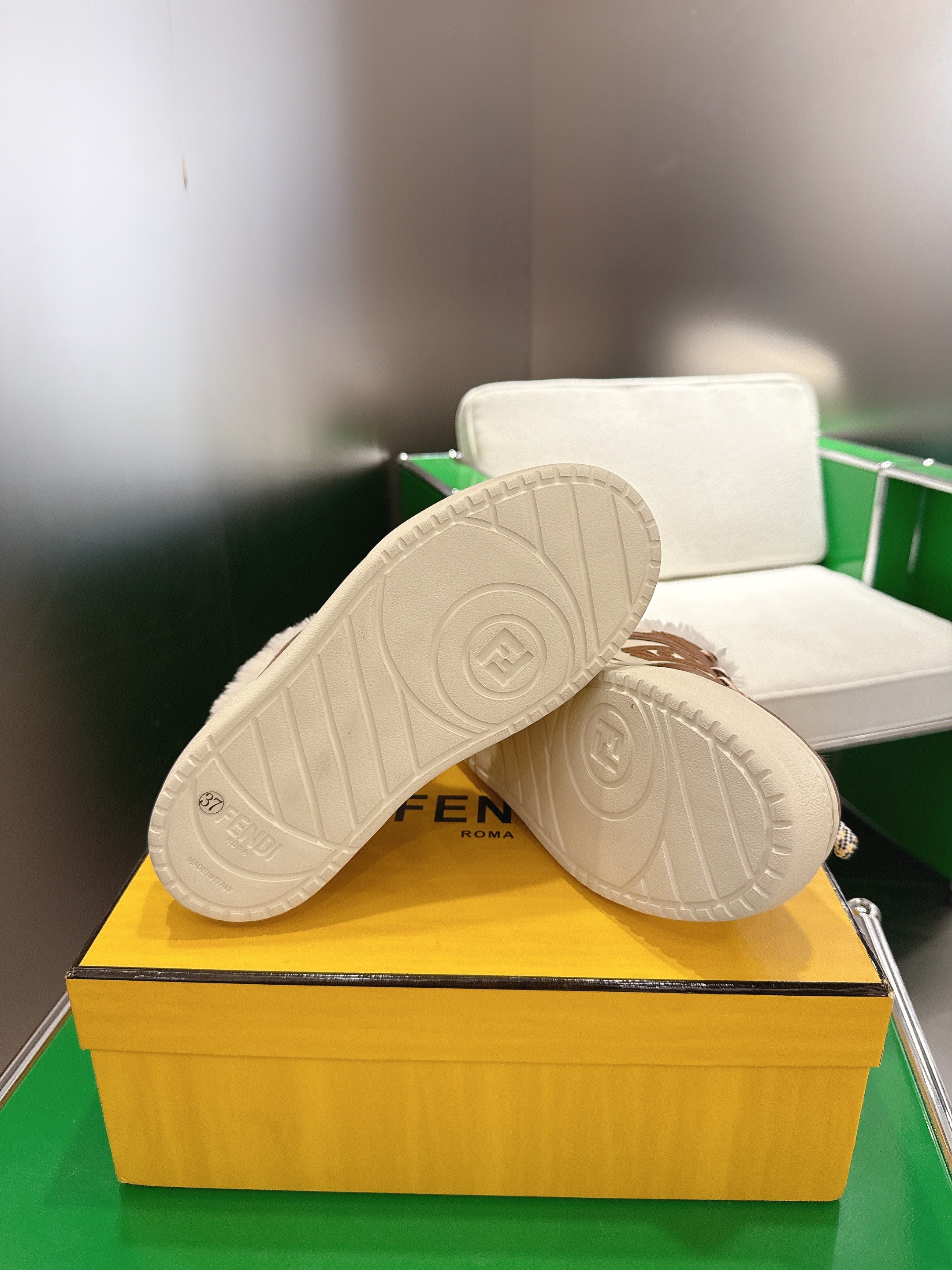 Fendi 2025 Match Platform Sneakers White mix Brown Leather Wool 562579