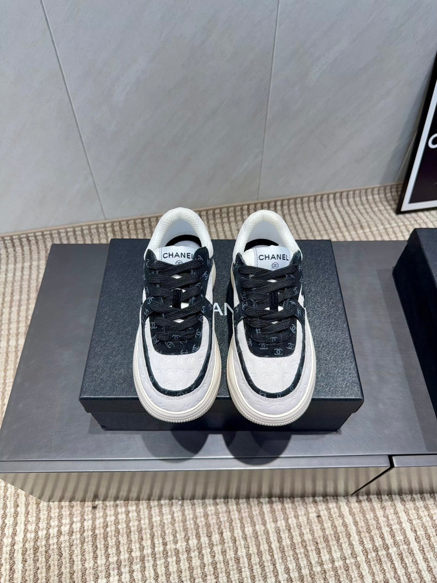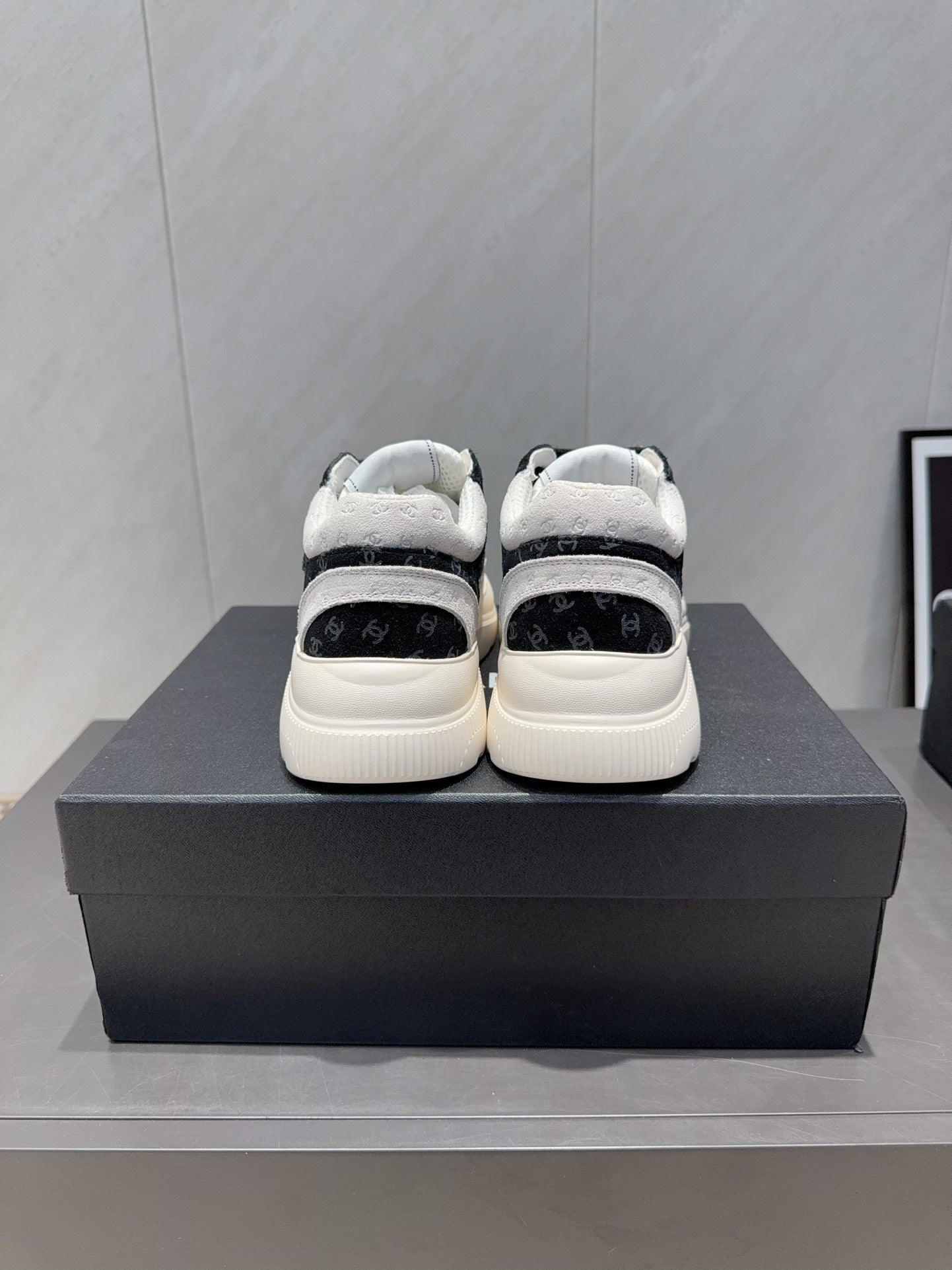 Chanel 25 Sneaker Ivory Black White Suede Fabric 540333