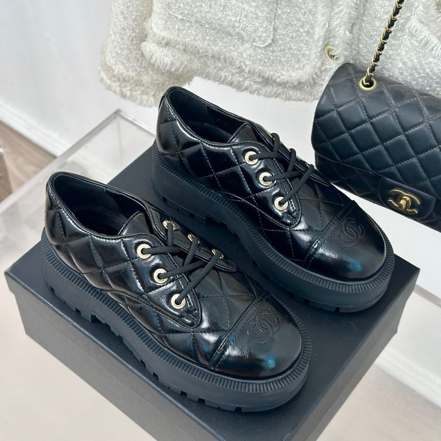 CC Classic Sneaker 50mm Glossy Black Quilted Calfskin