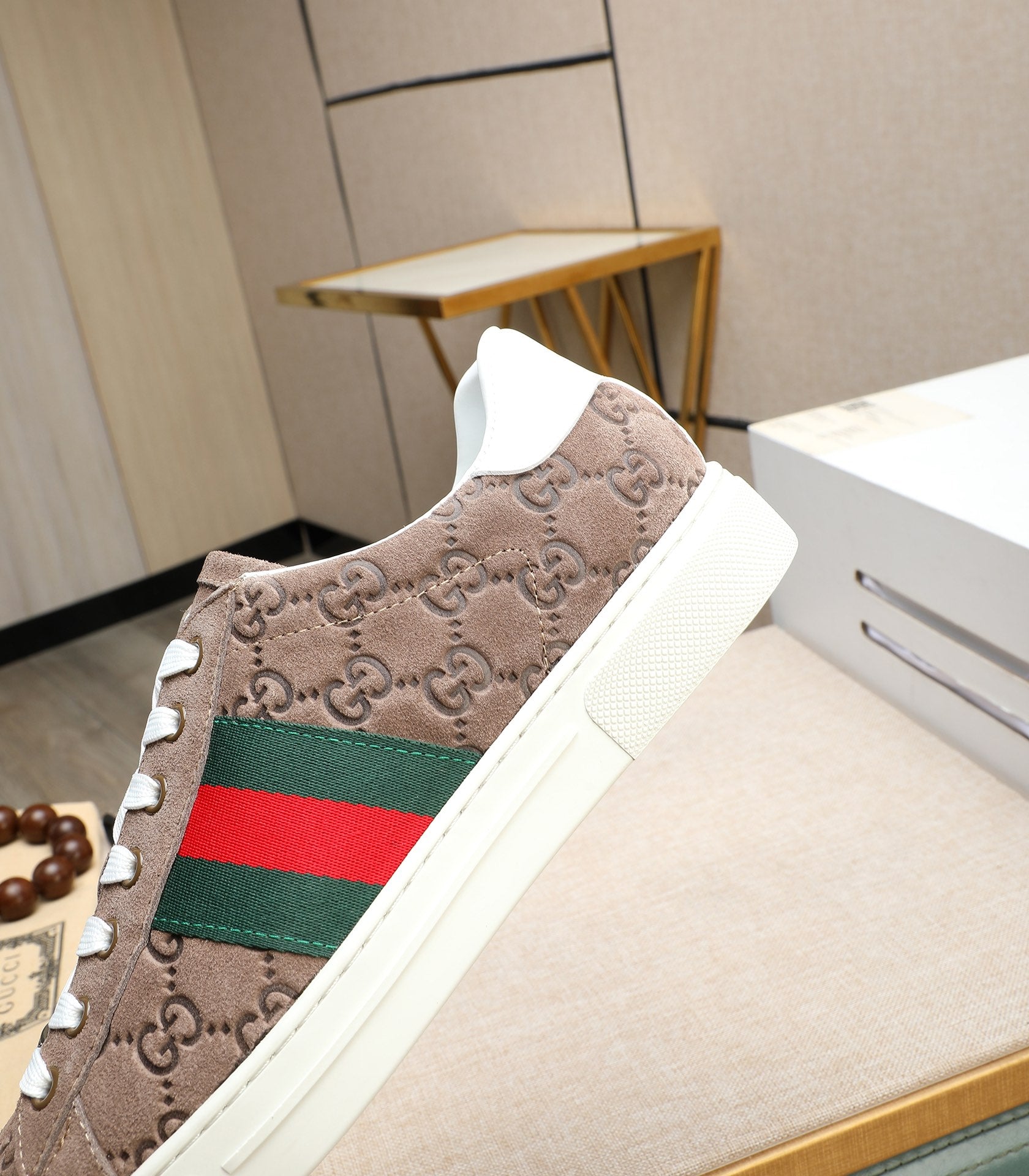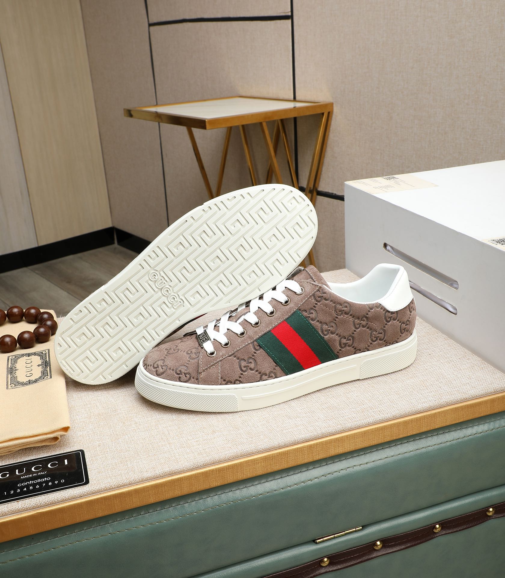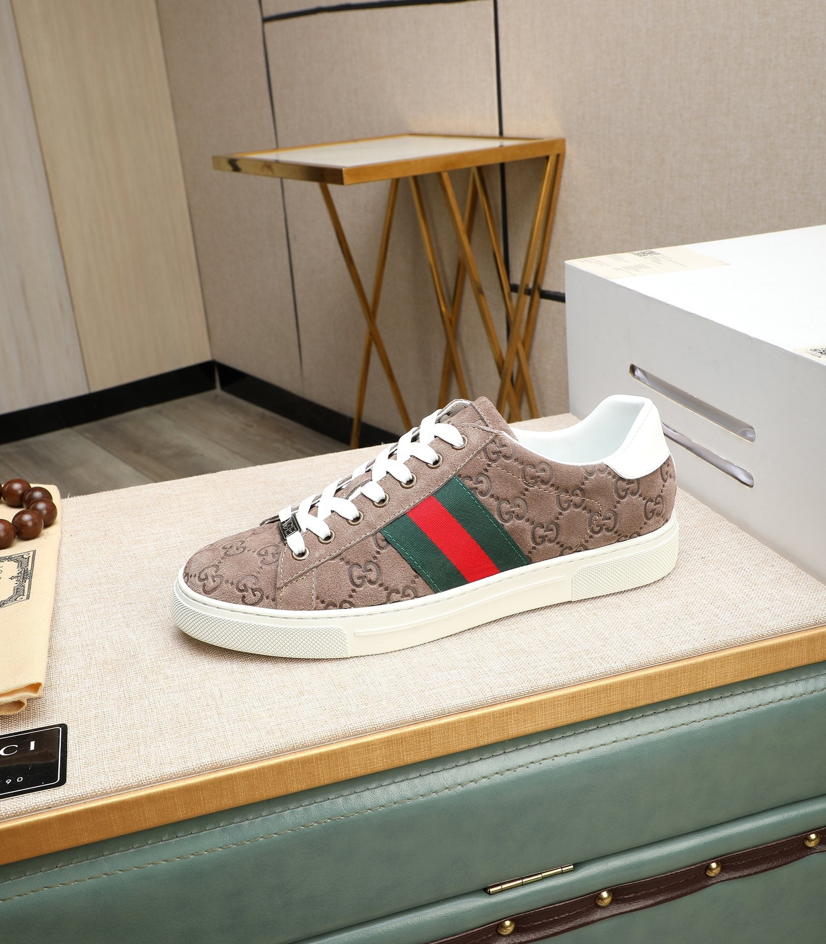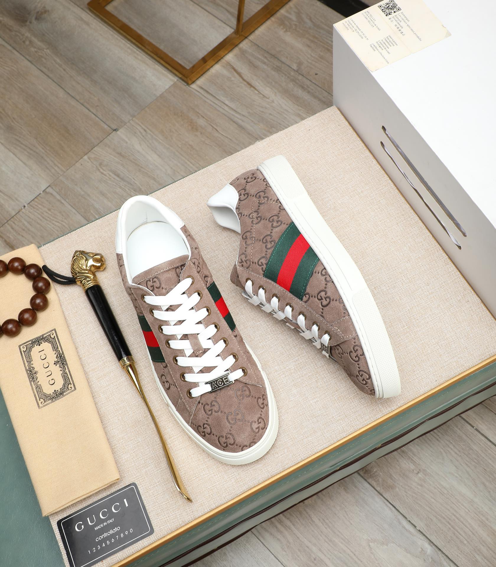 GG Men's ACE Sneaker Brown Embossed Suede 516599