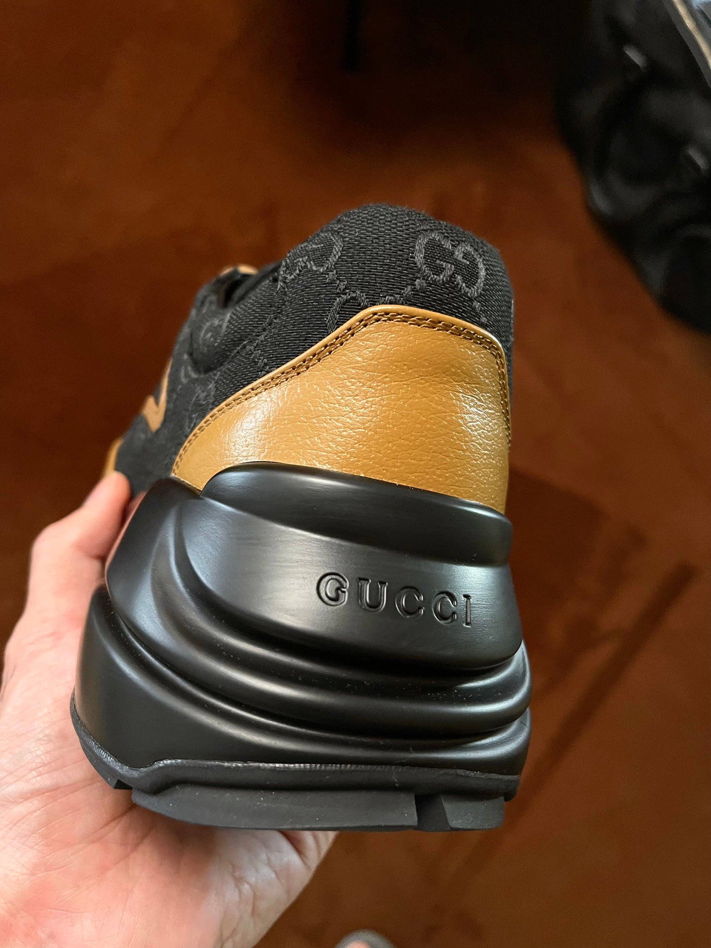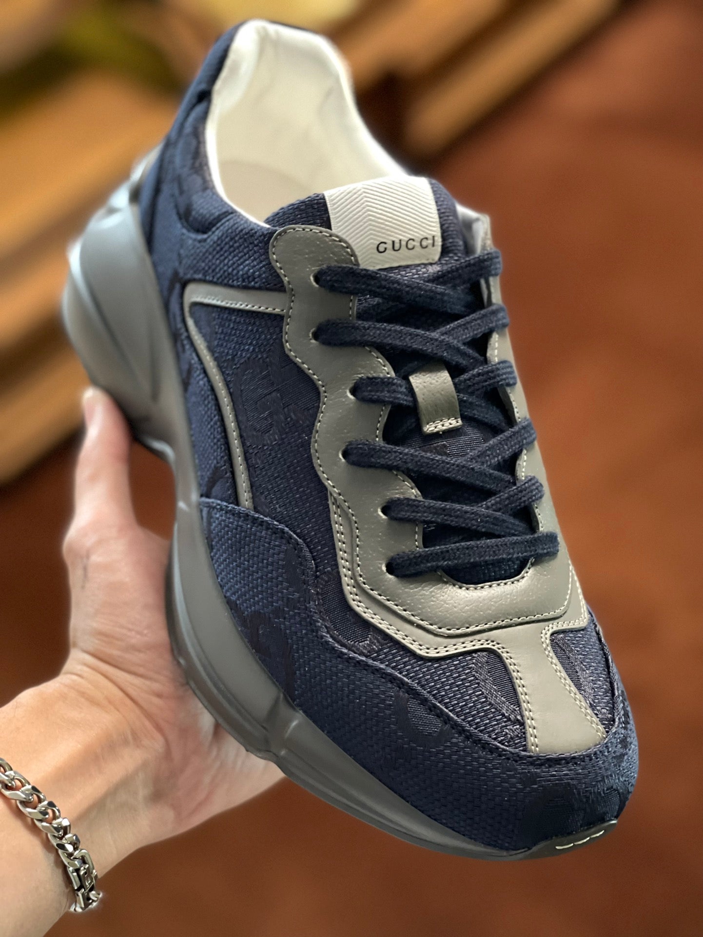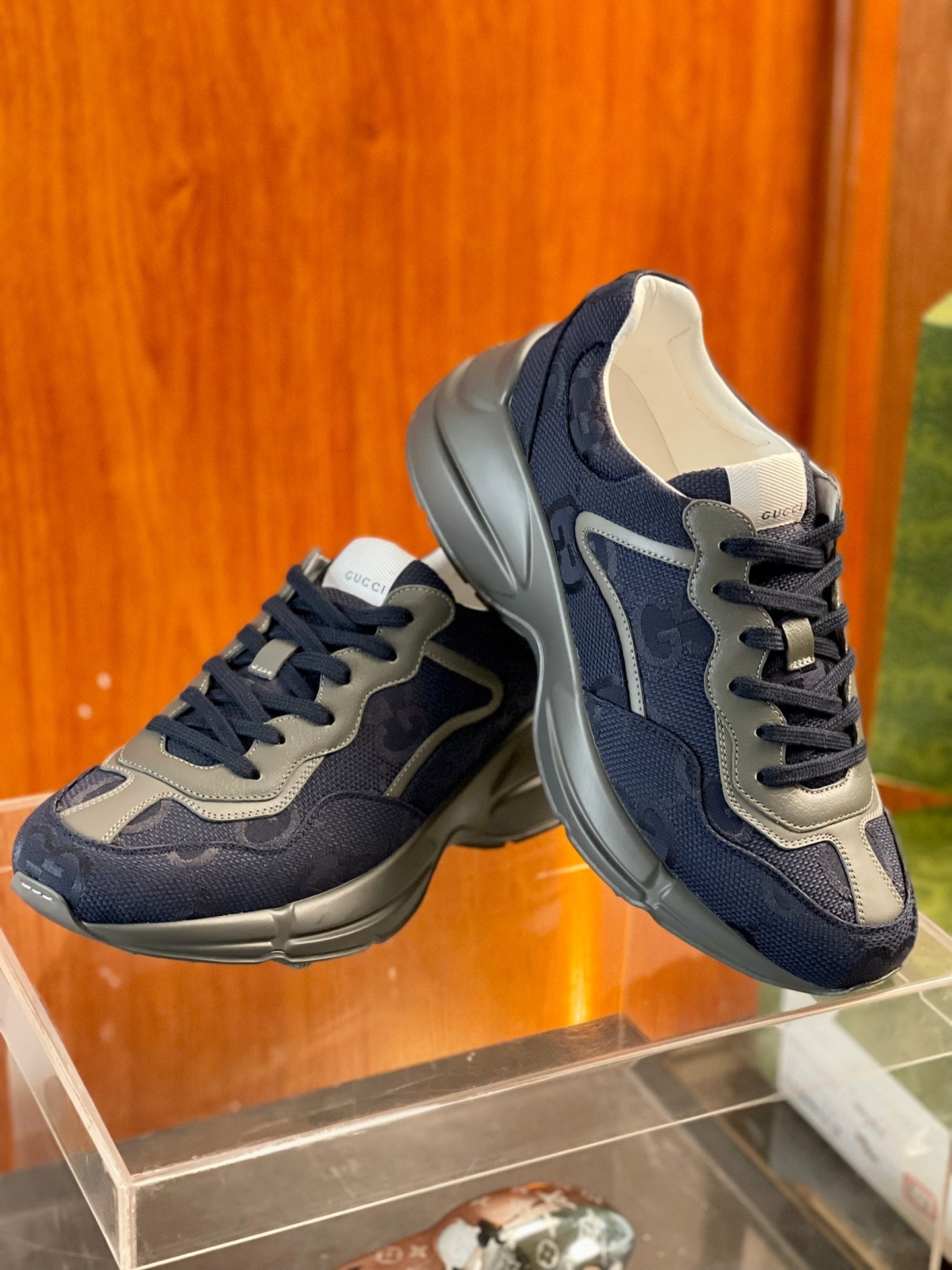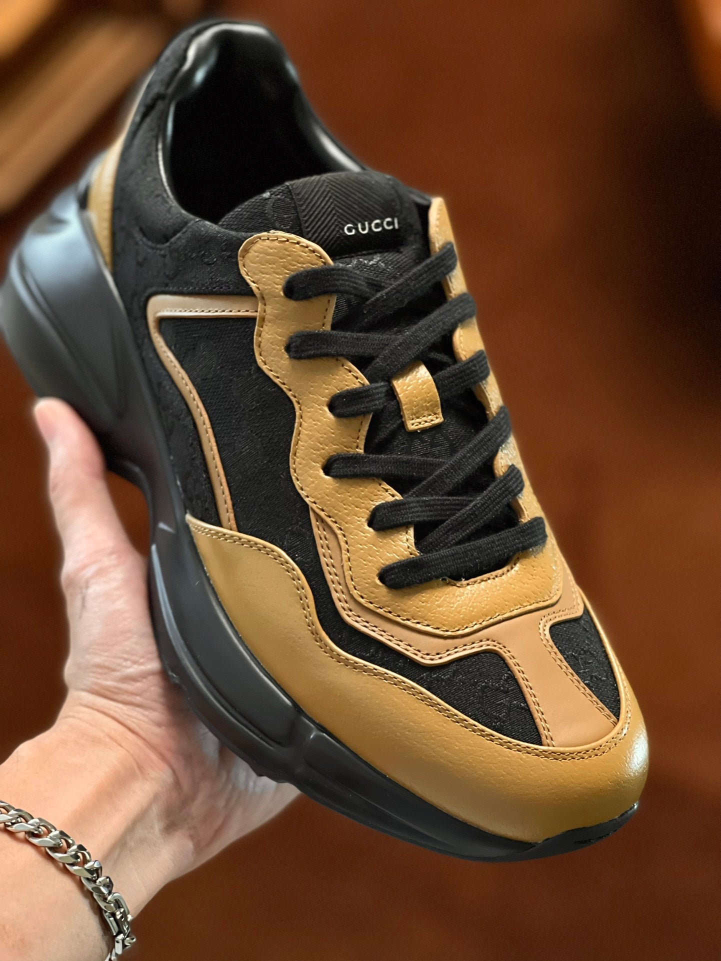 GG Men's Rhyton Sneaker Technical Knit Cowhide 524507