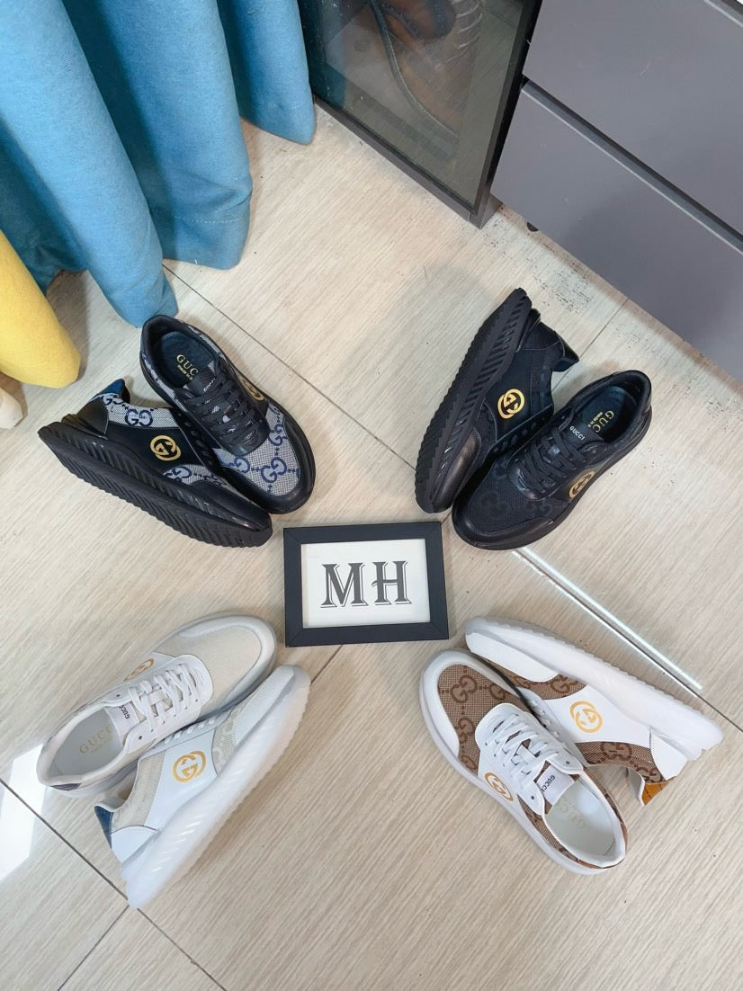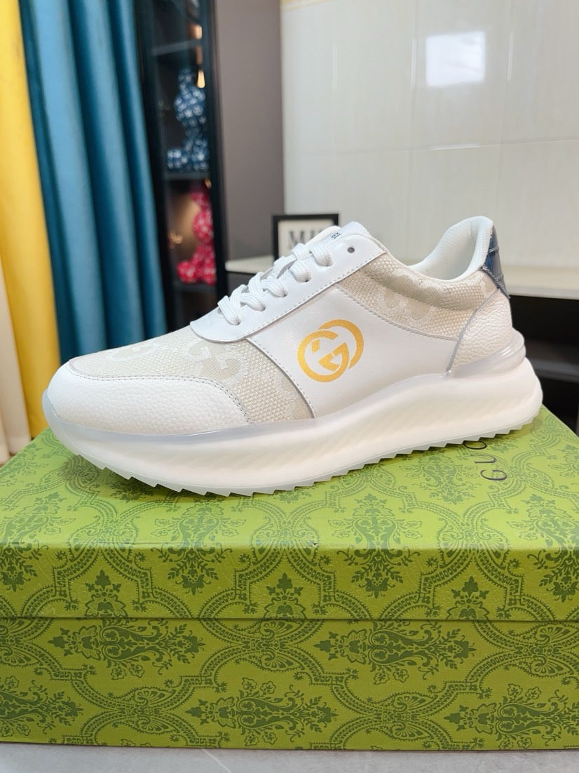 GG Men's Sneaker Beige White Canvas Calfskin 523339