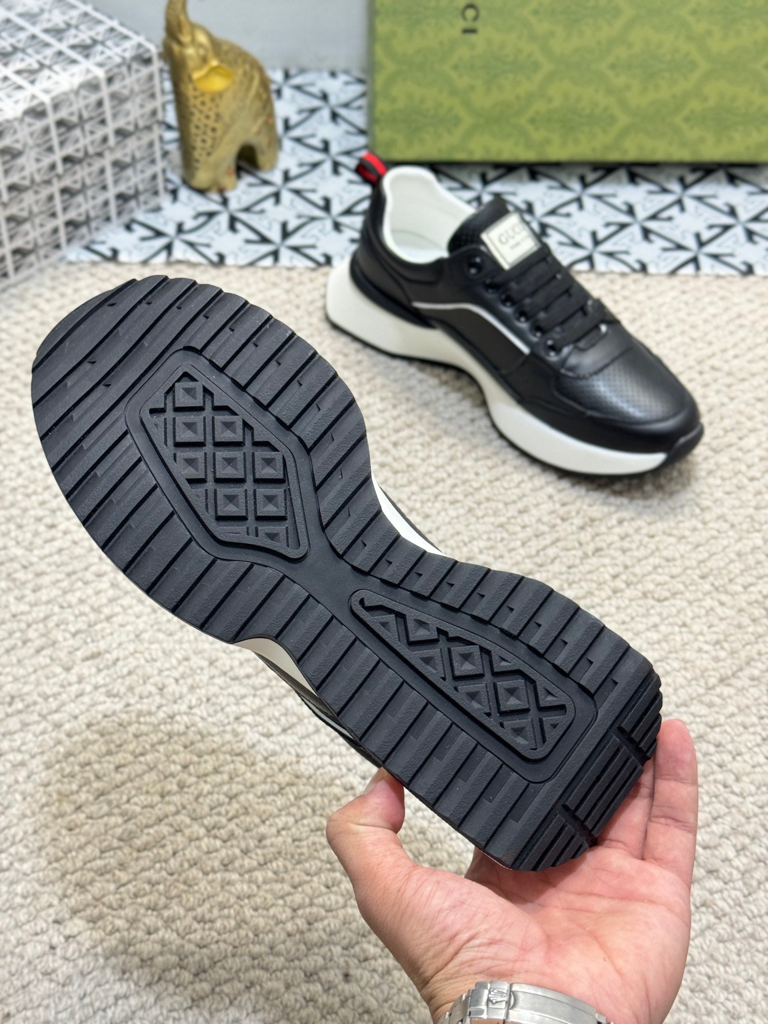 GG Men's Sneaker Black Sheepskin 524703