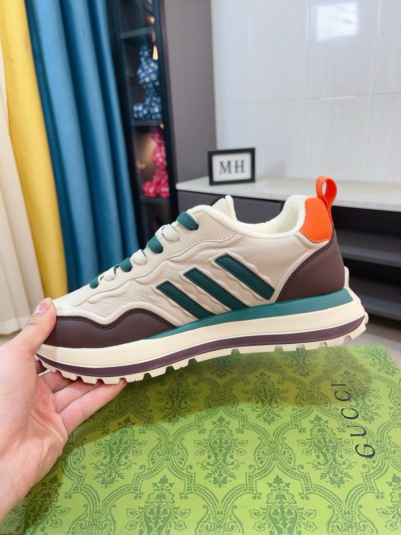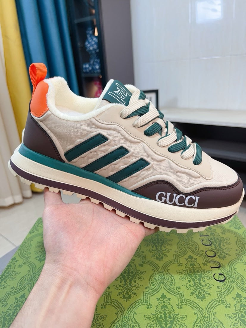 GG Men's Sneaker Brown Beige Cowhide 523395