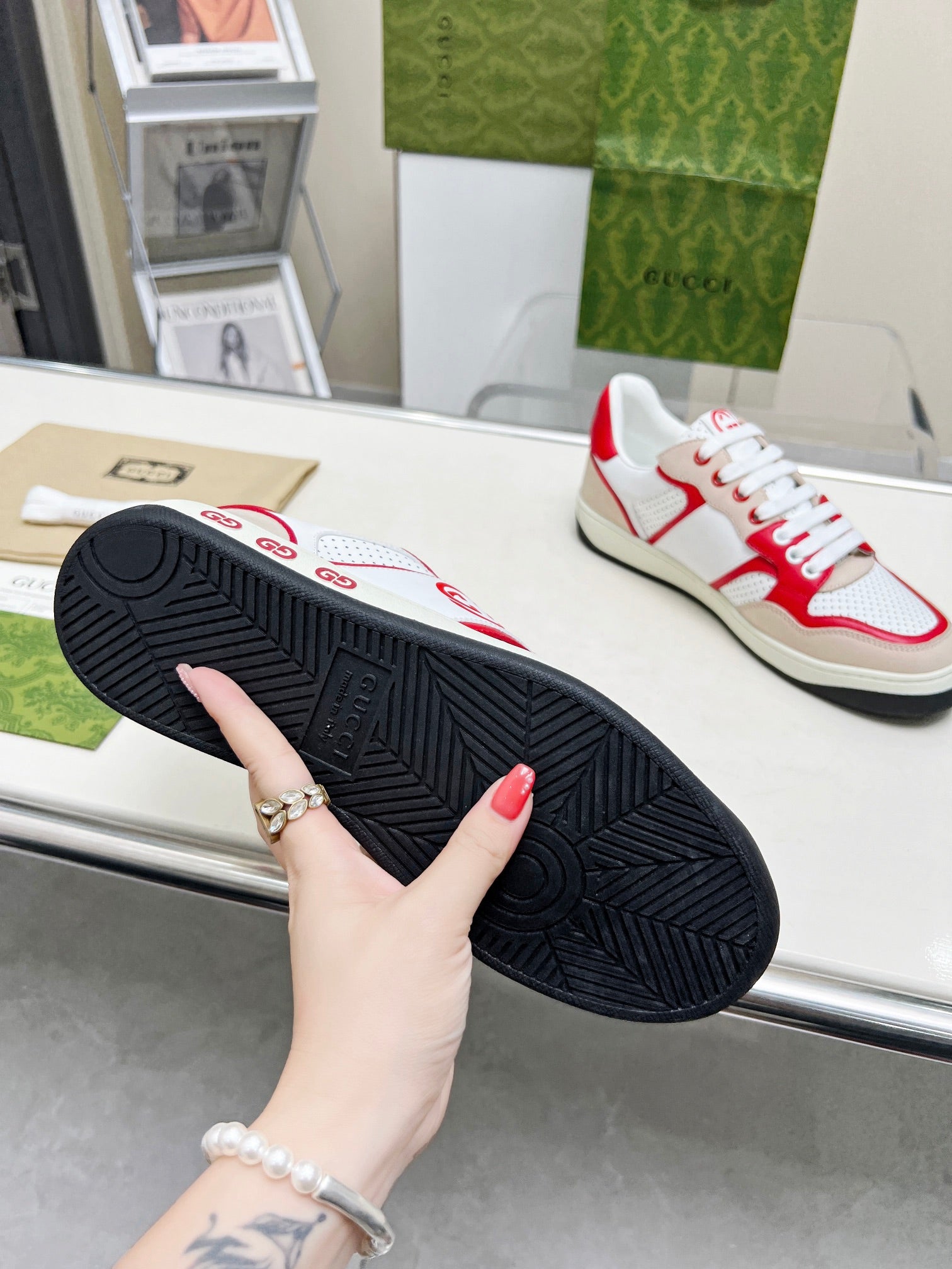 GG Men's Mac80 Sneaker White Red Cowhide 539525