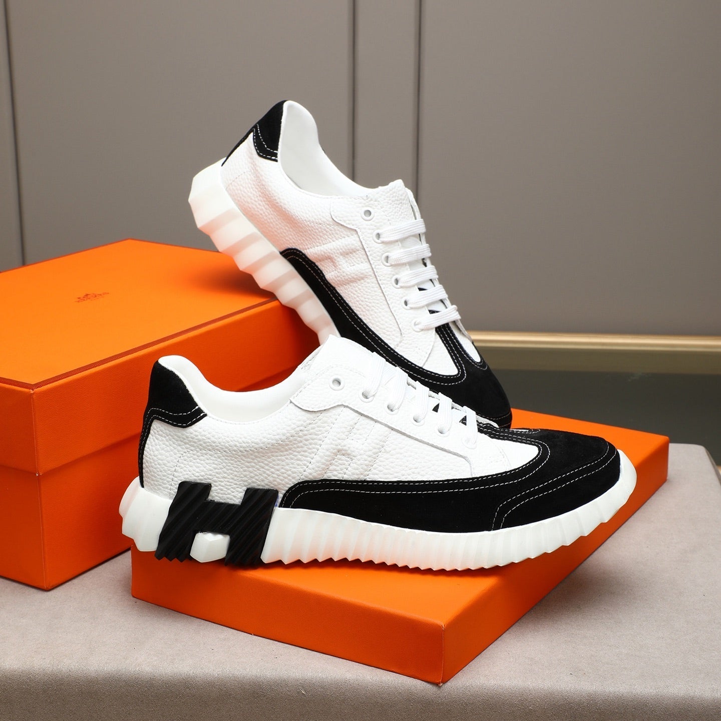 HM Men's Bouncing Sneakers White Black Sheepskin Suede 664381