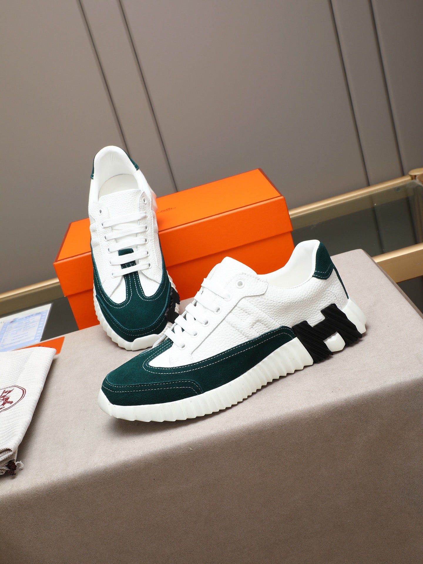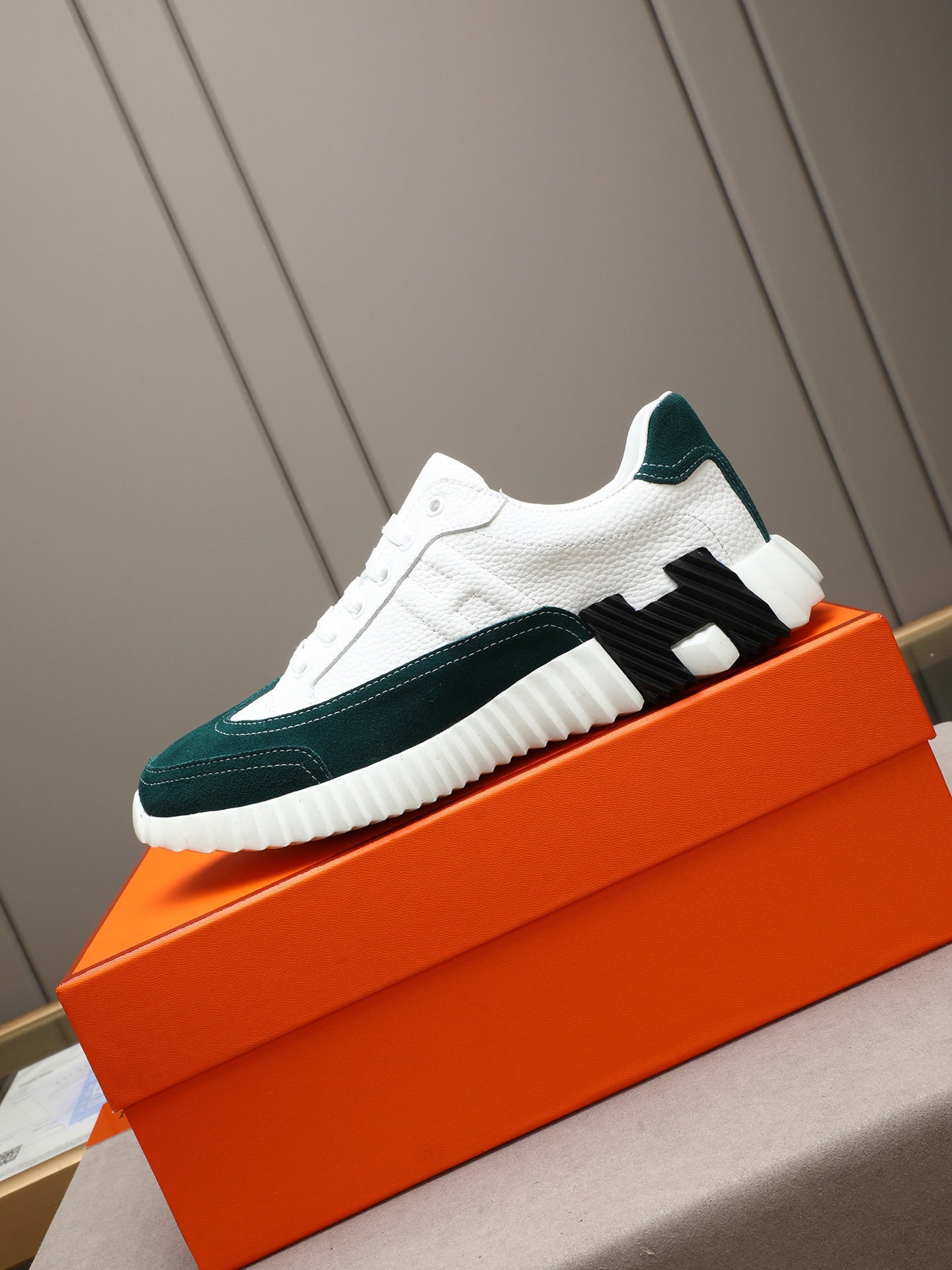 HM Men's Bouncing Sneakers White Green Sheepskin Suede 664382