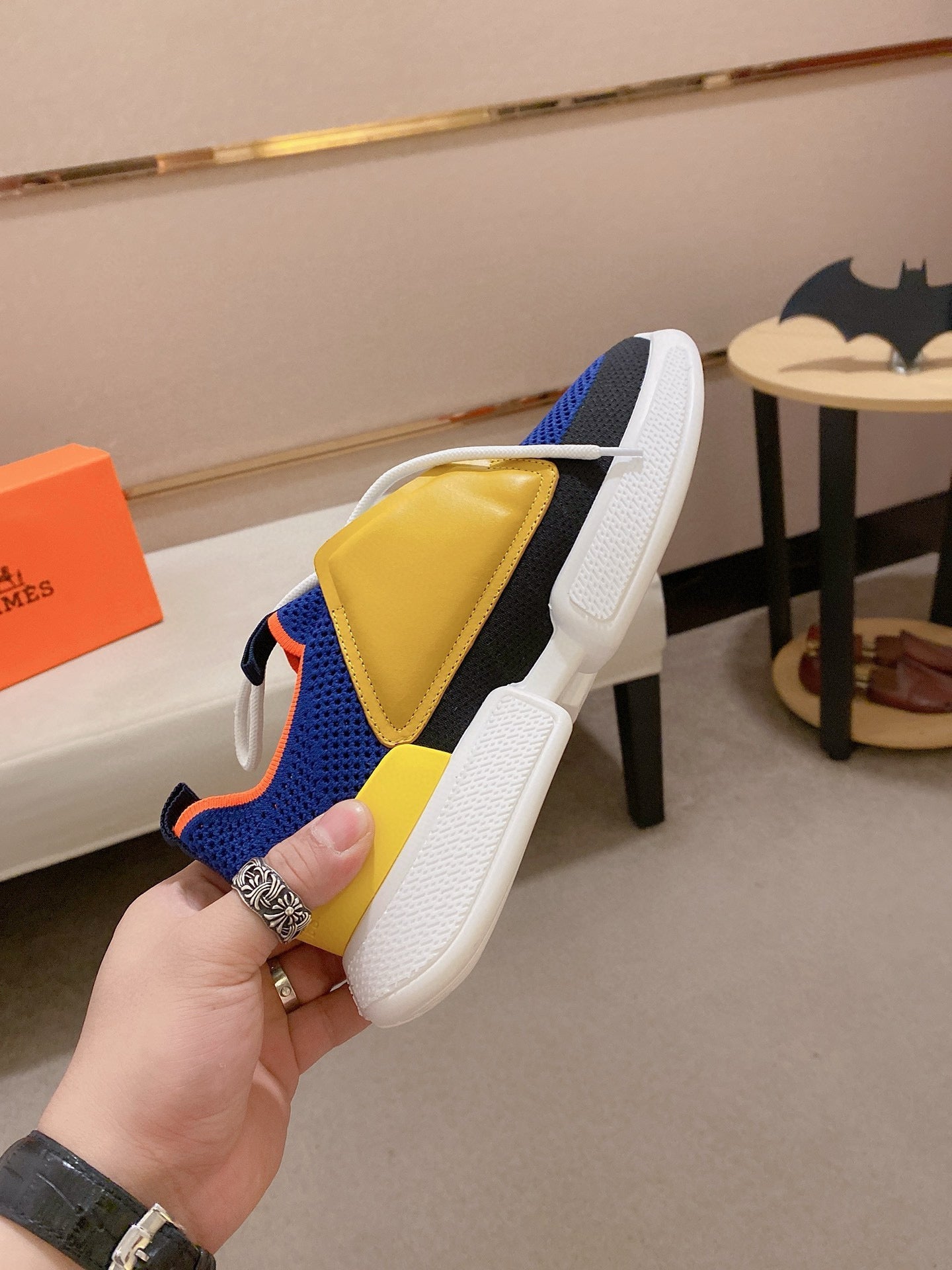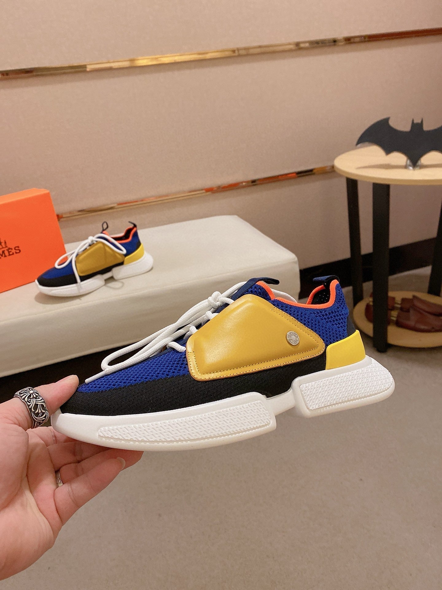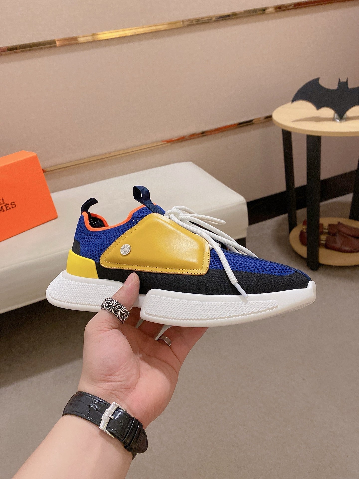 HM Men's Expert Sneaker Blue Yellow Flyknit With Leather