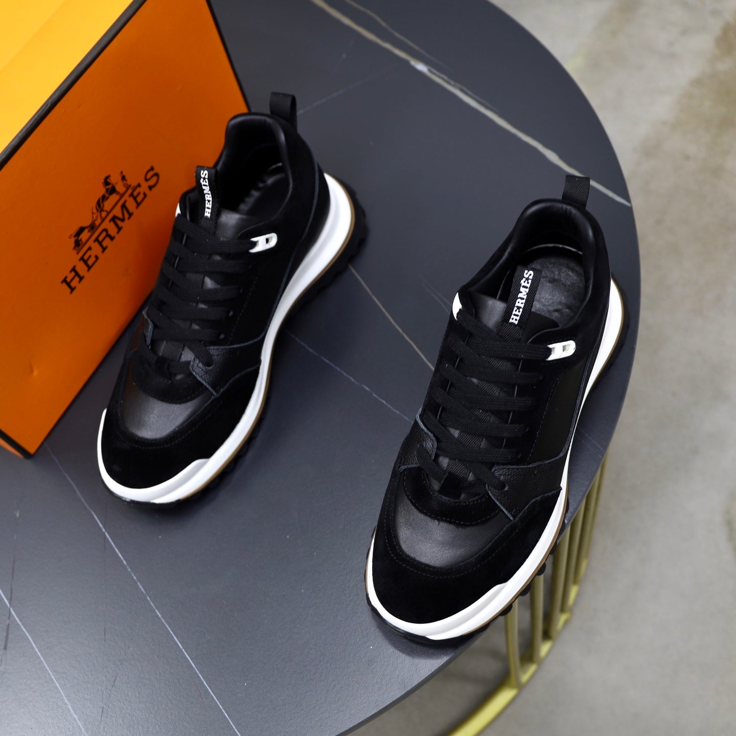 HM Men's Leader Sneaker Black Suede Calfskin 747919