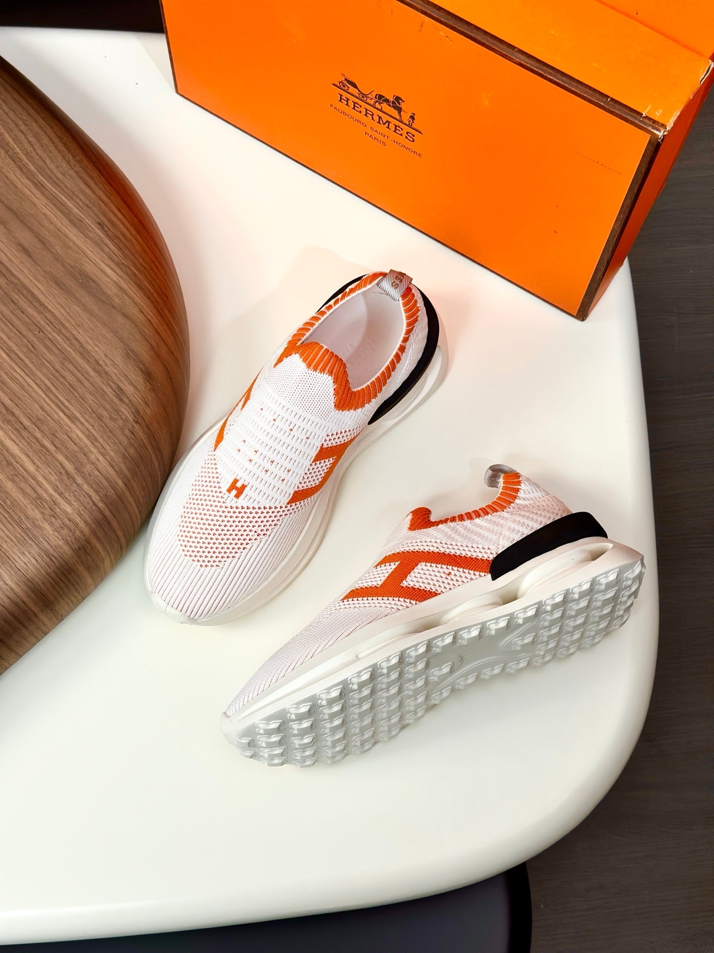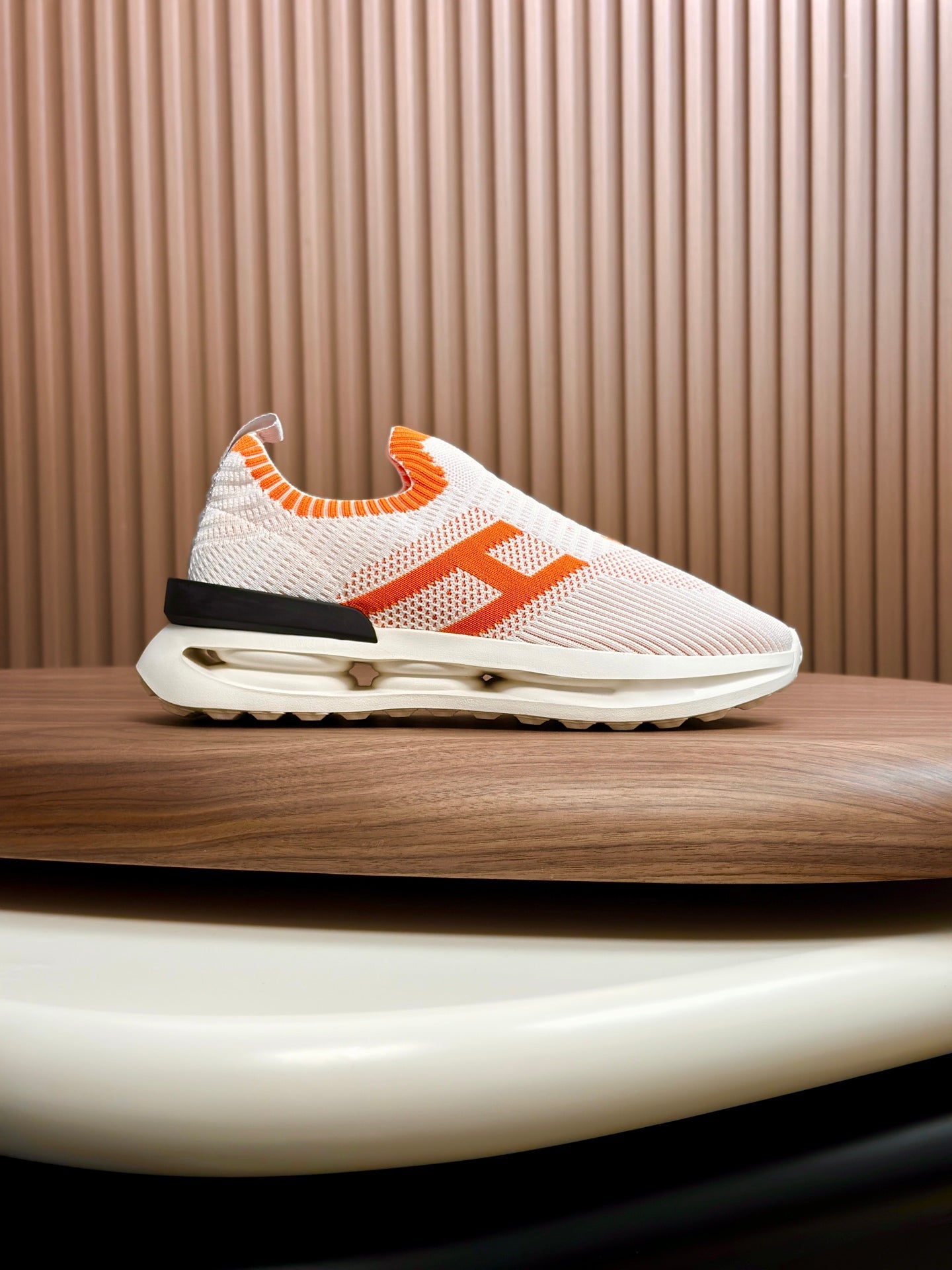 HM Men's Slip on Sneaker White Orange Flyknit Fabric 690061