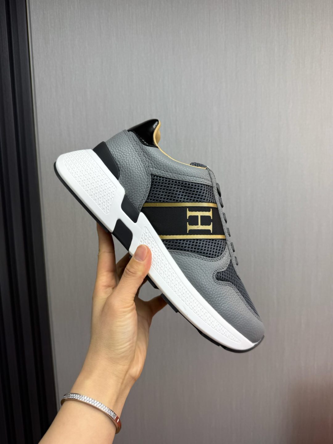 HM Men's Sneaker Grey Mesh Cowhide 519227