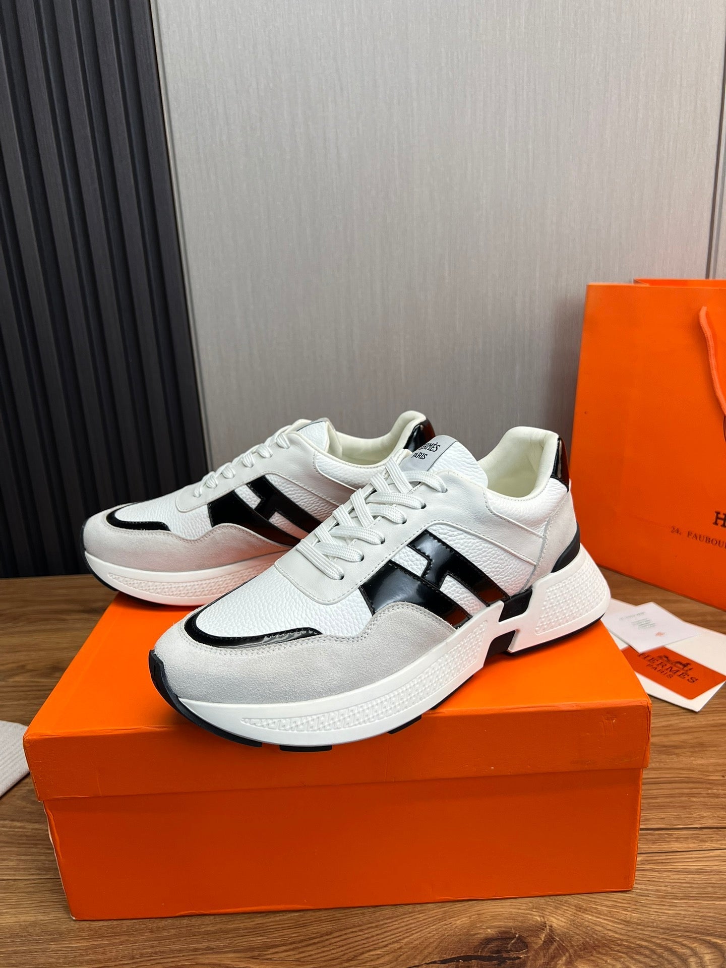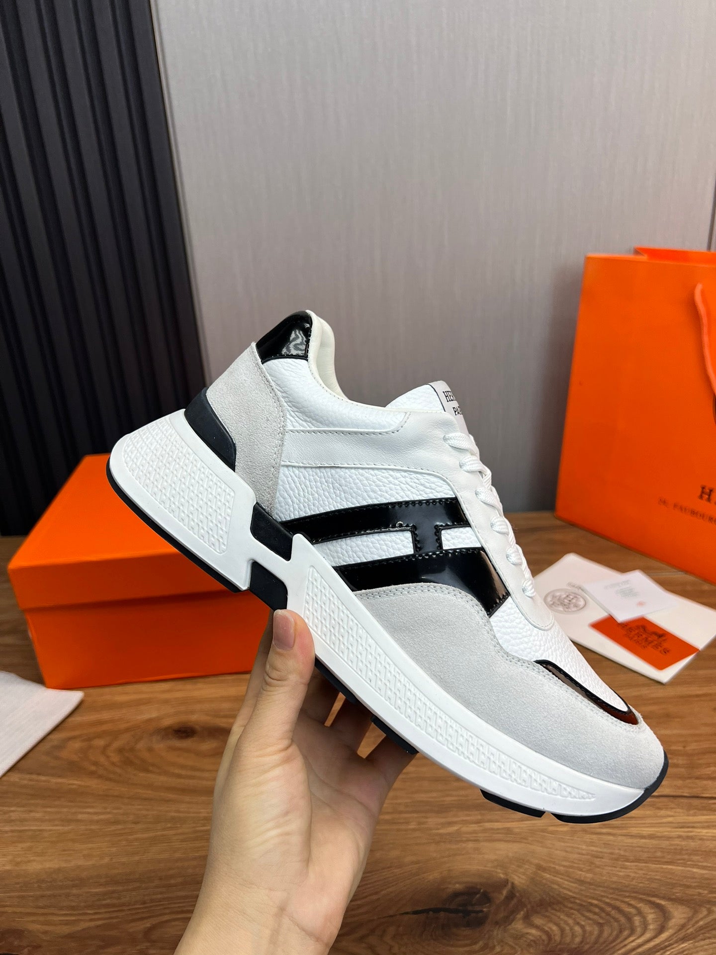 HM Men's Sneaker White Black Cowhide Suede 936373
