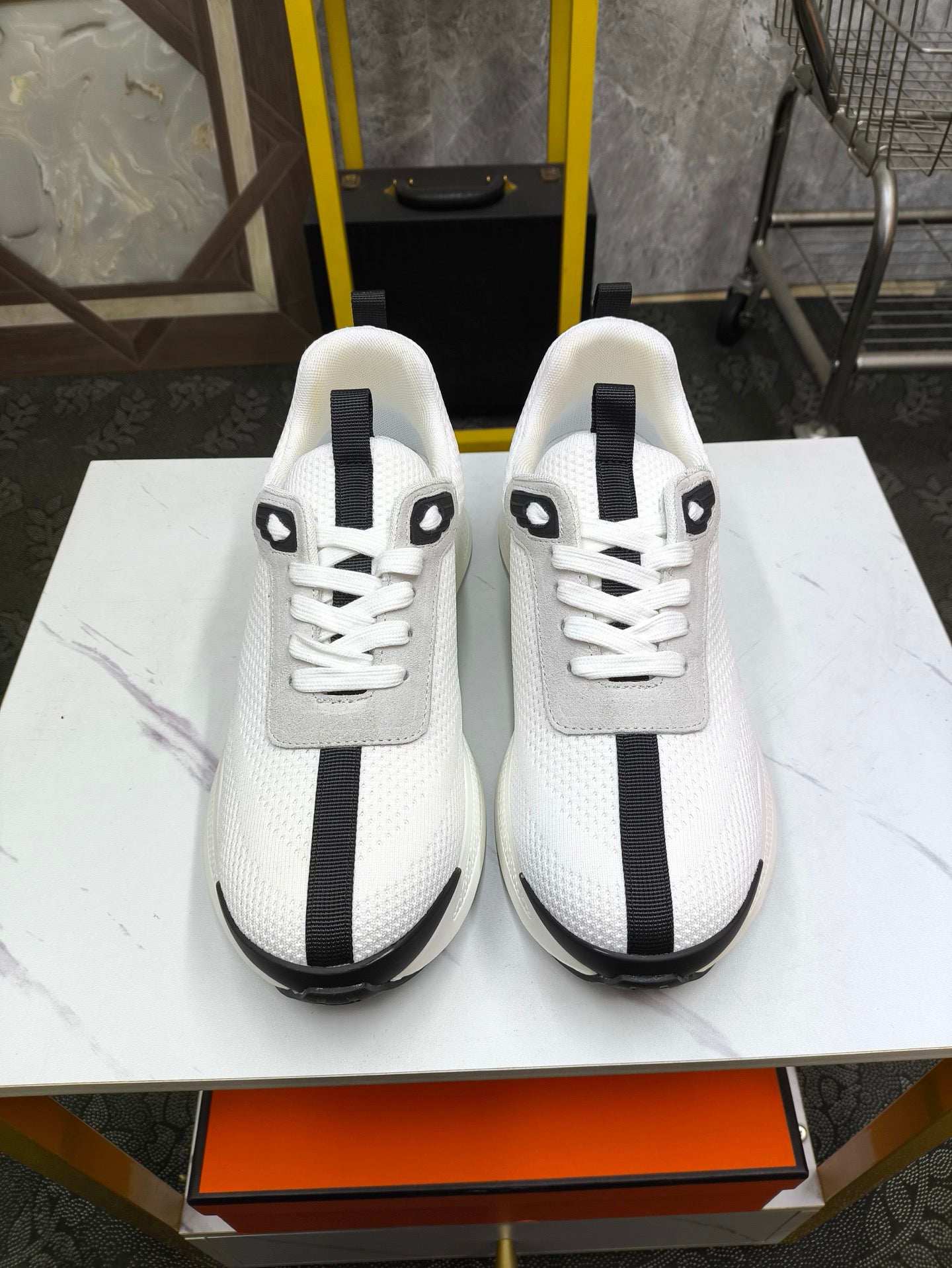 HM Men's Sneaker White Black Mesh Lambskin 543944