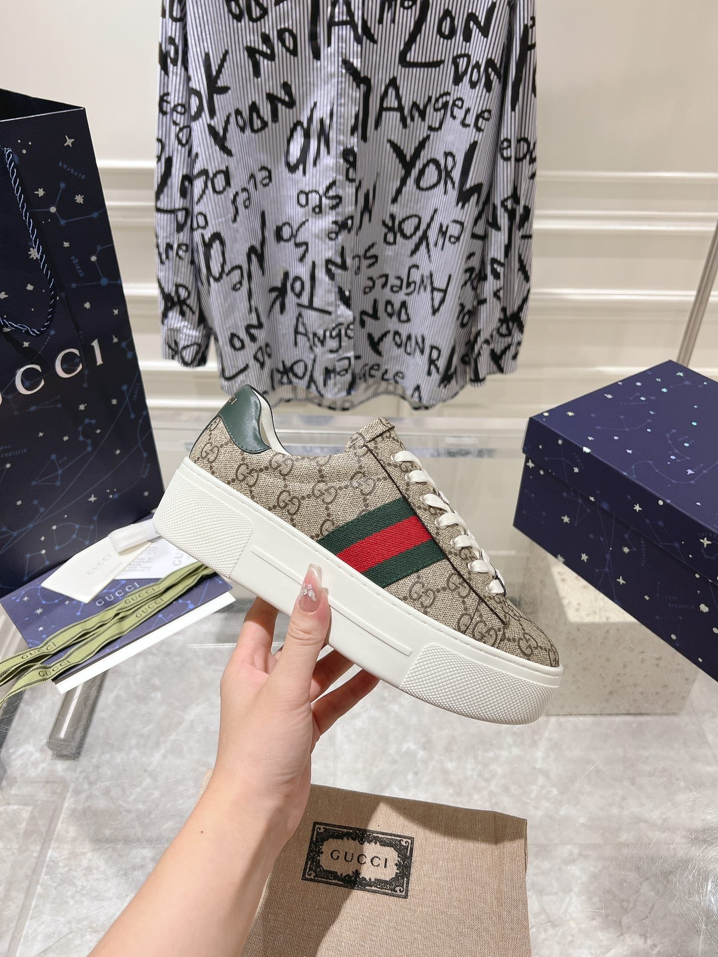 GG RIPPLE TRAINER WHITE LAMBSKIN