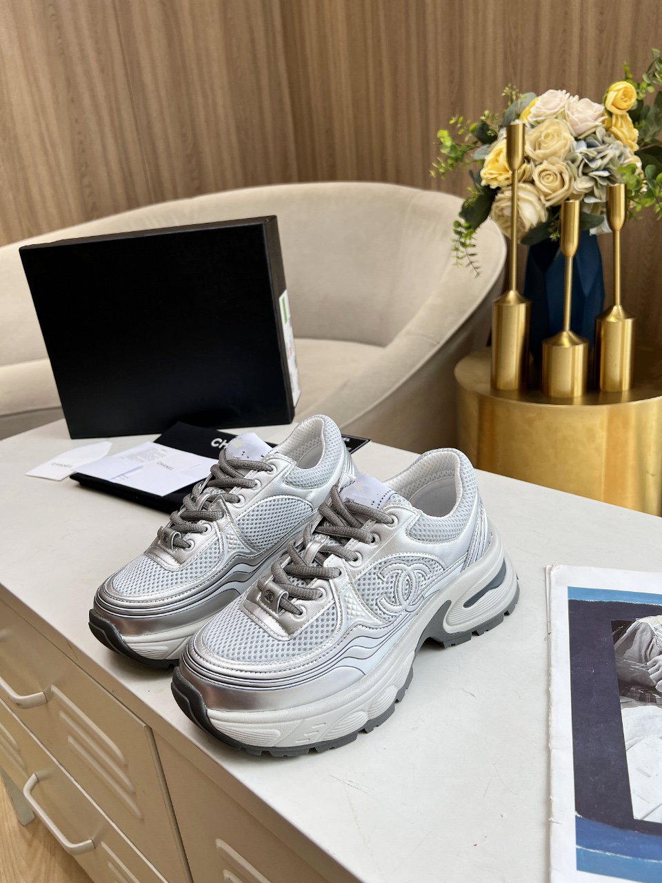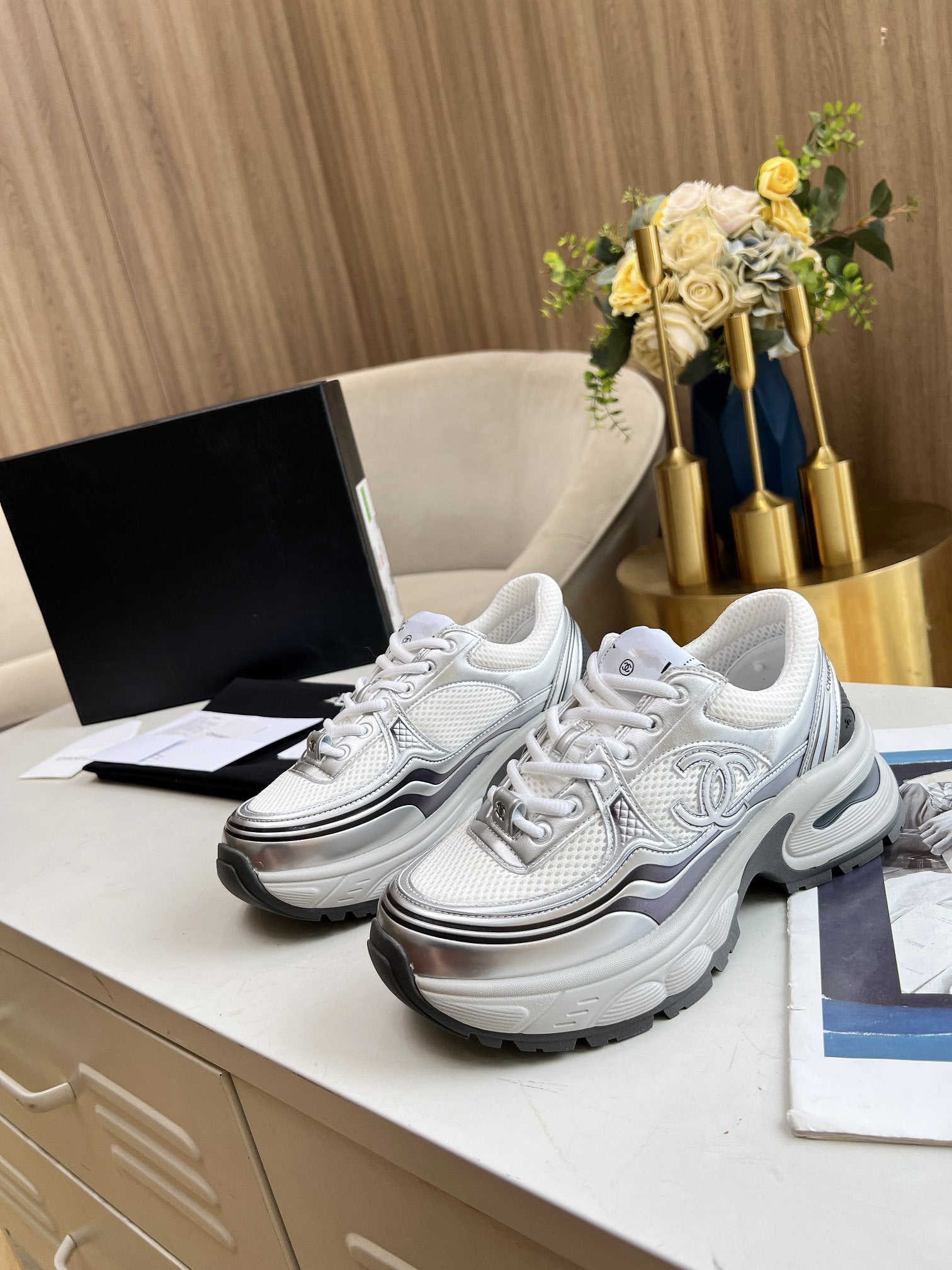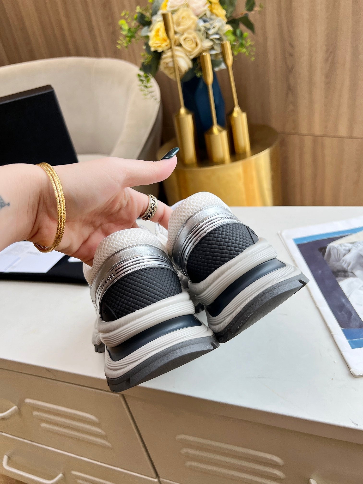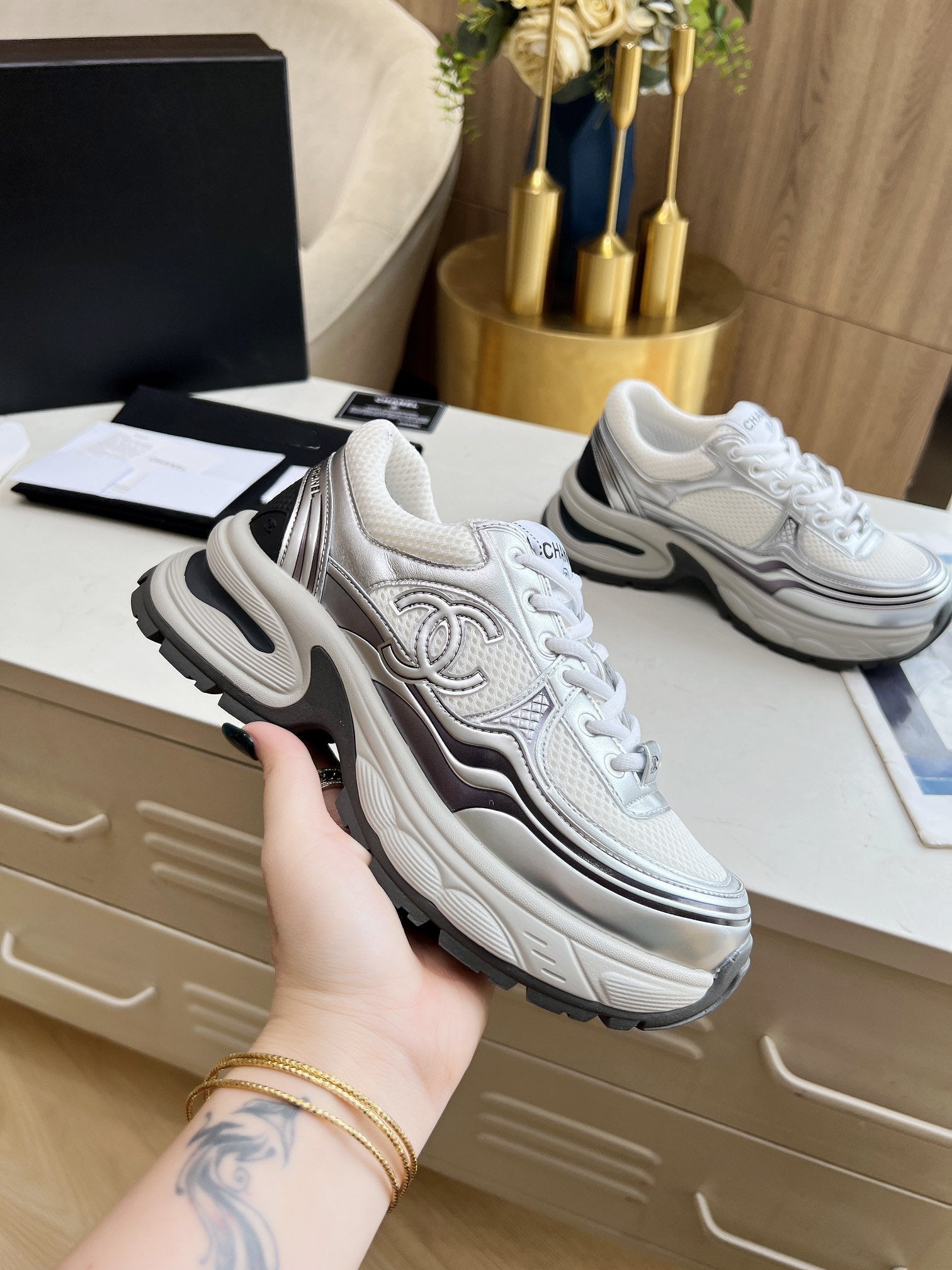 cc sneaker gold metalic calfskin white tpu