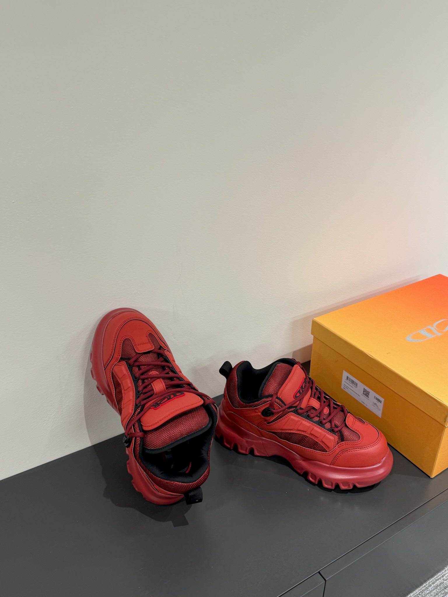 CD Sneaker In Red Mix Burgundy Calfskin And Mesh Fabric 109252