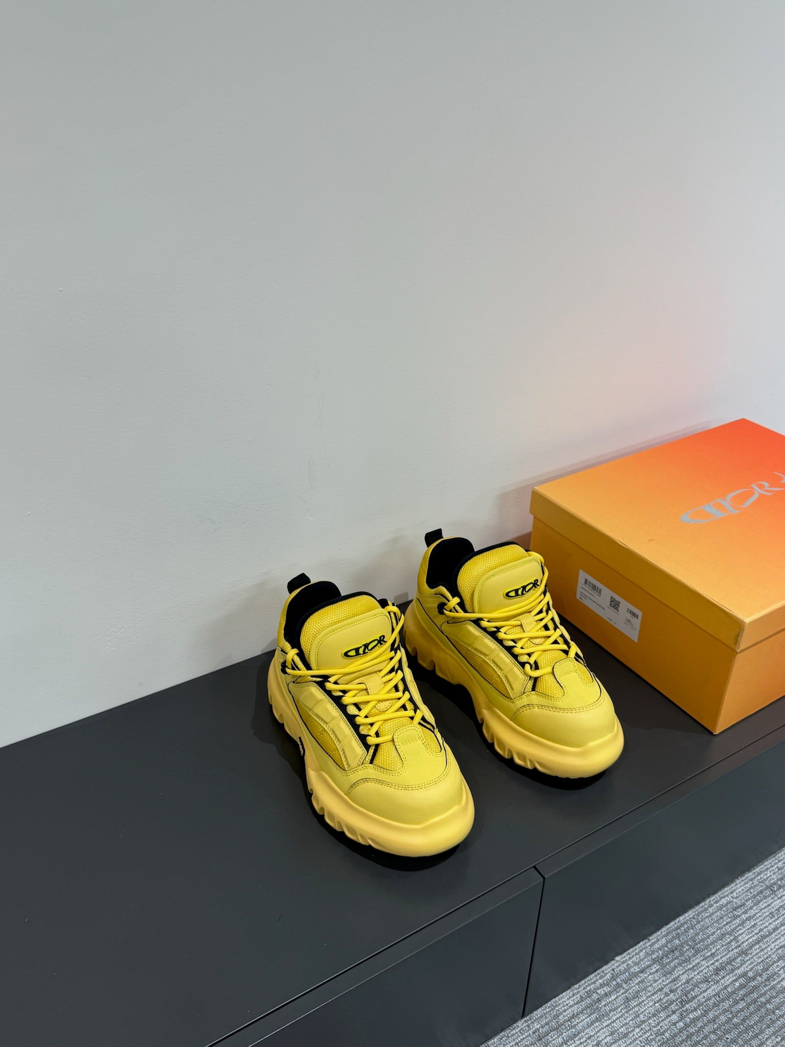 CD Sneaker In Yellow Calfskin And Mesh Fabric 109254