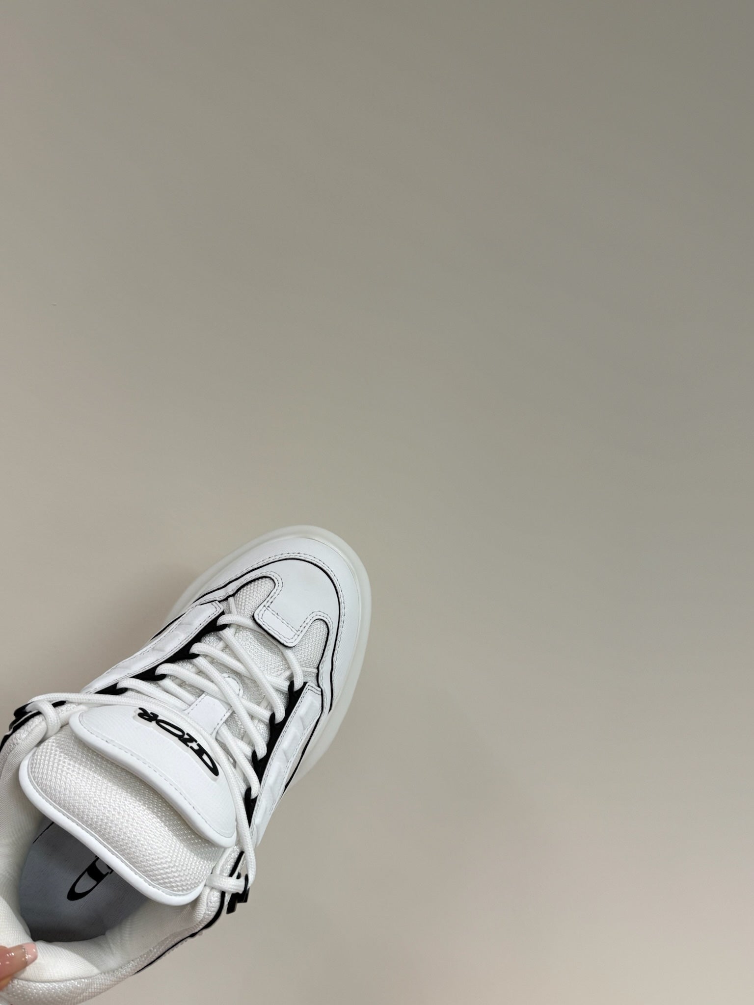 cc trainer beige white fabric