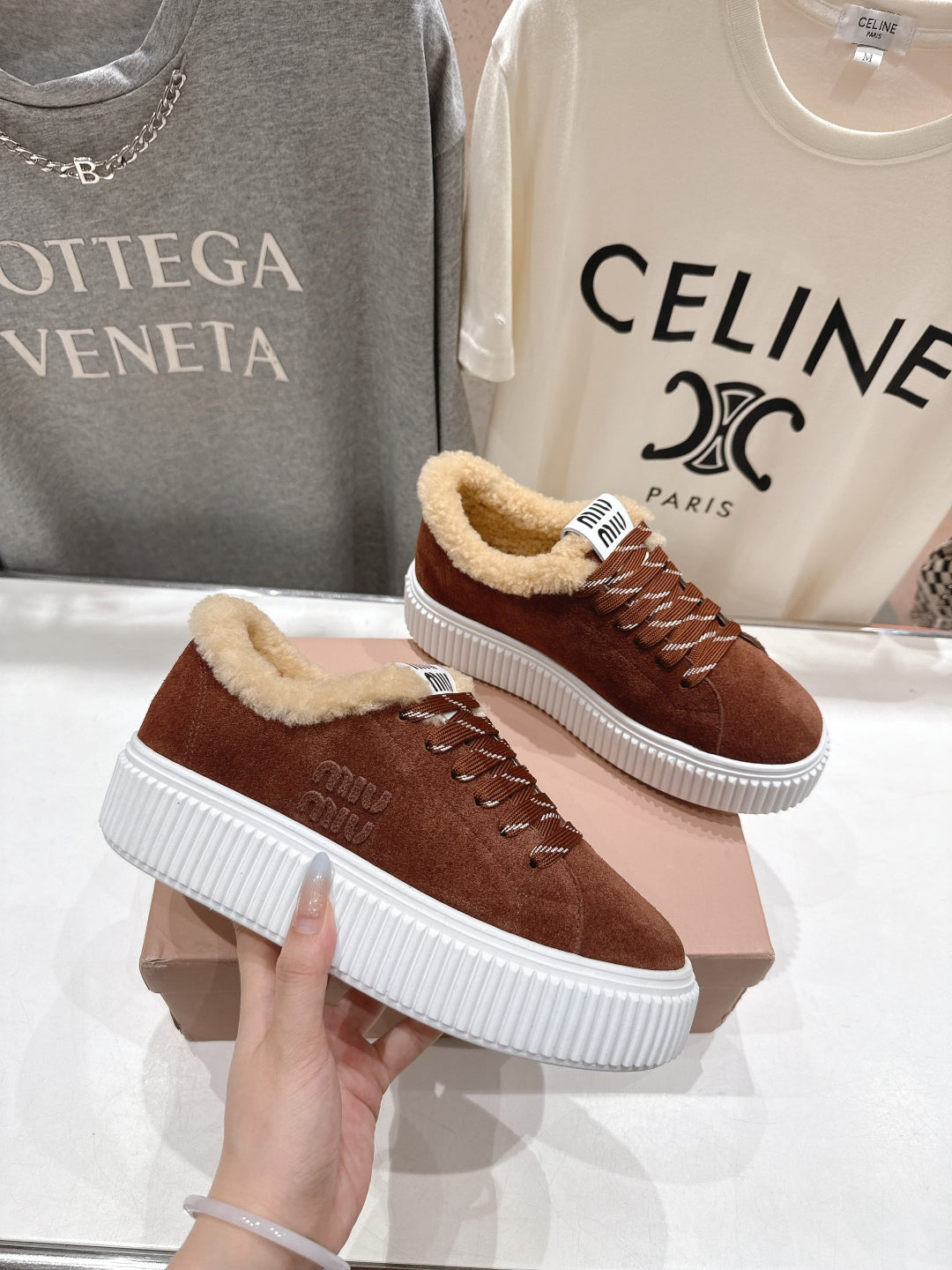 MiuMiu 25 Sneaker Brown Beige Suede Fur 535589