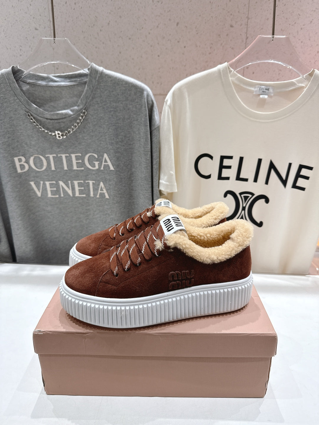 MiuMiu 25 Sneaker Light Brown White Suede Cowhide Fur 535587