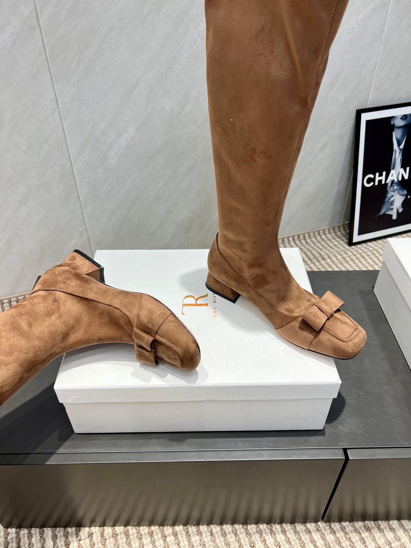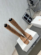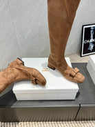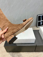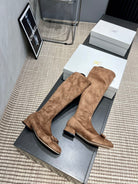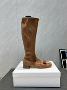 The Row 2025 Square Toe And Bow Accent Long Boot Brown Suede 540515